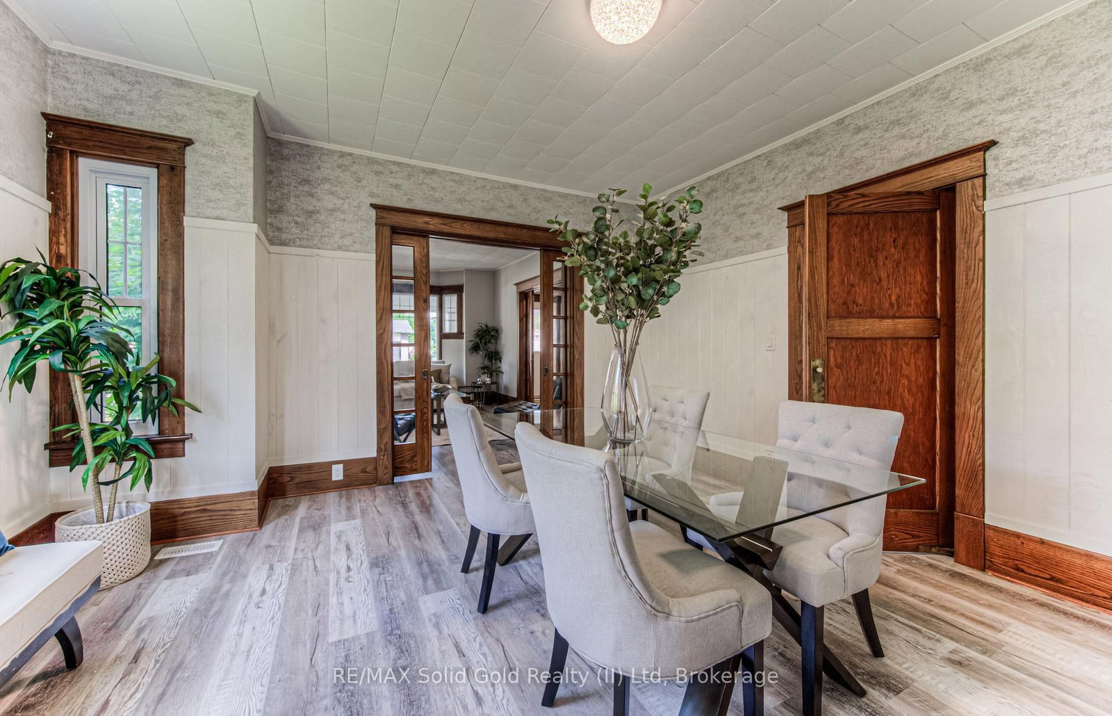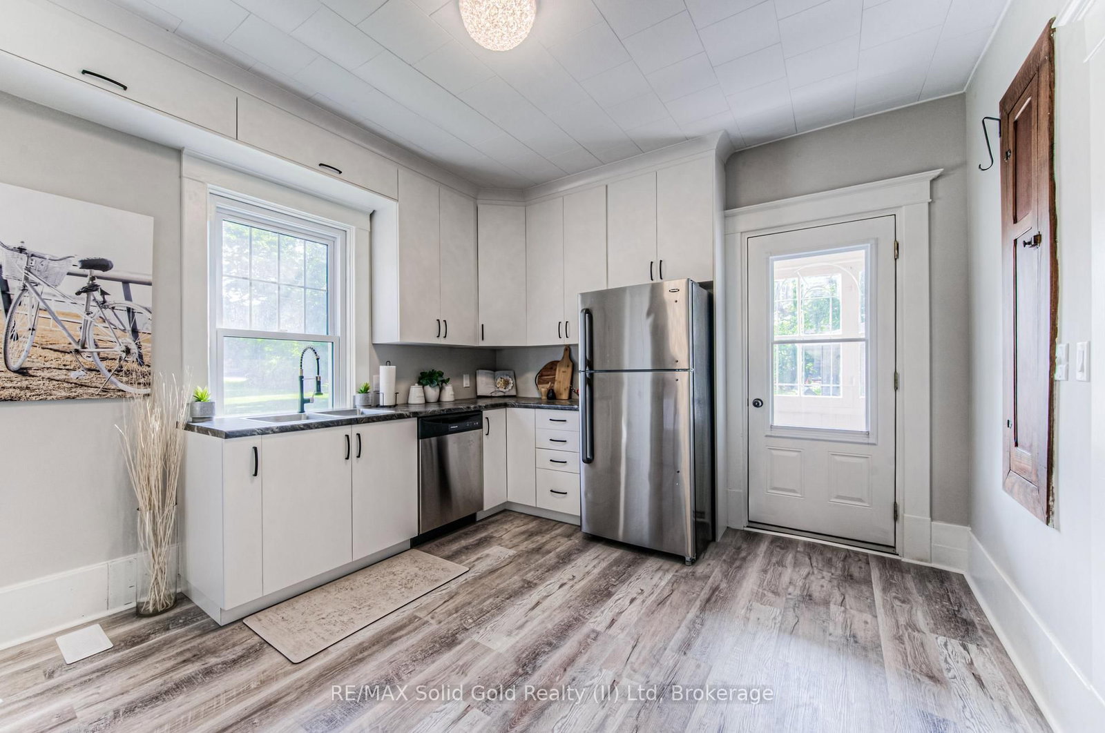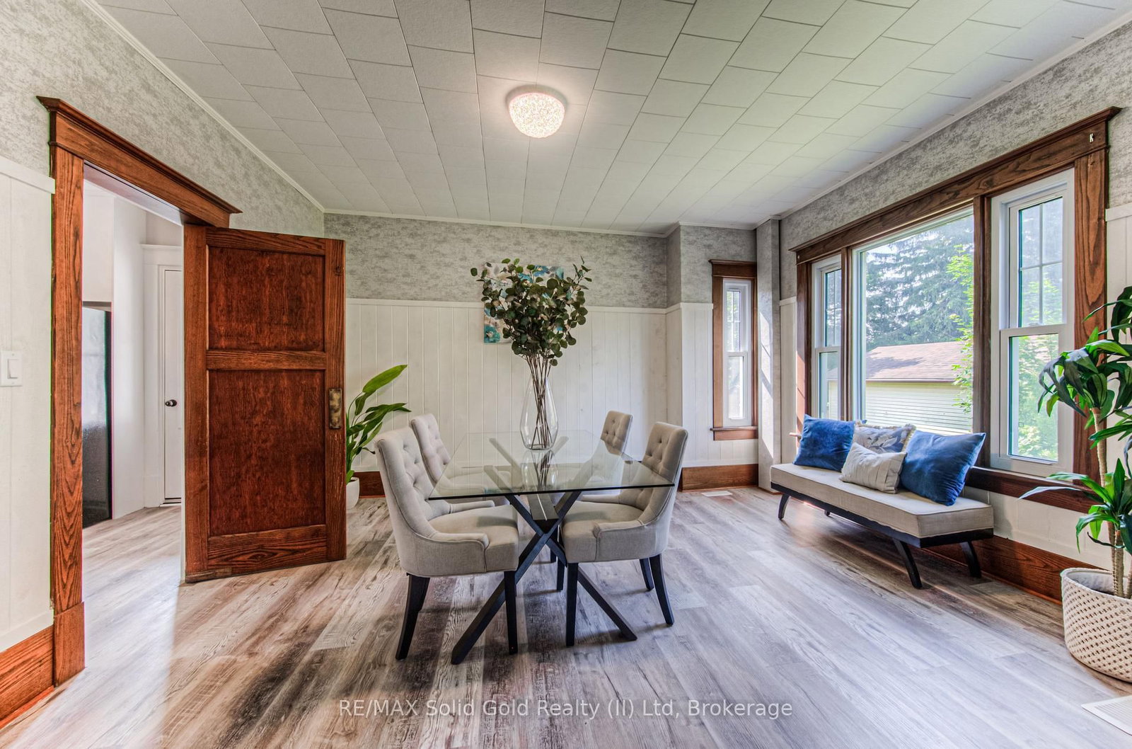 Step into timeless elegance in the charming town of Listowel with this extensively renovated century home. The 2 1/2 Storey on 690 Wallace Avenue N has 3 bedrooms, 2 bathrooms, and is located on a 94 x 66 ft lot in the community of Listowel . Blending historic character with modern updates, this stunning property offers generous living space, including three spacious bedrooms plus a versatile den, a main floor office, a separate dining and living room, and an expansive finished attic-perfect for an extra bedroom, family room, studio, or additional retreat. Step outside to the inviting covered front porch, ideal for sipping your morning coffee or unwinding with a cold drink on a warm summer evening. Recent upgrades ensure comfort and peace of mind, featuring new laminate plank flooring throughout, a new roof (2022), updated electrical (2022), new washer and dryer, and a beautifully redesigned kitchen complete with new stainless steel appliances. While thoughtfully modernized, the home's original charm shines through with preserved trim details and elegant glass pocket doors, creating a warm and inviting modern rustic feel. The large, unspoiled backyard offers endless possibilities for your personal touch, with ample space for creating your dream outdoor living area. Don't miss your chance to own one of Listowel's most distinctive and character-filled homes.