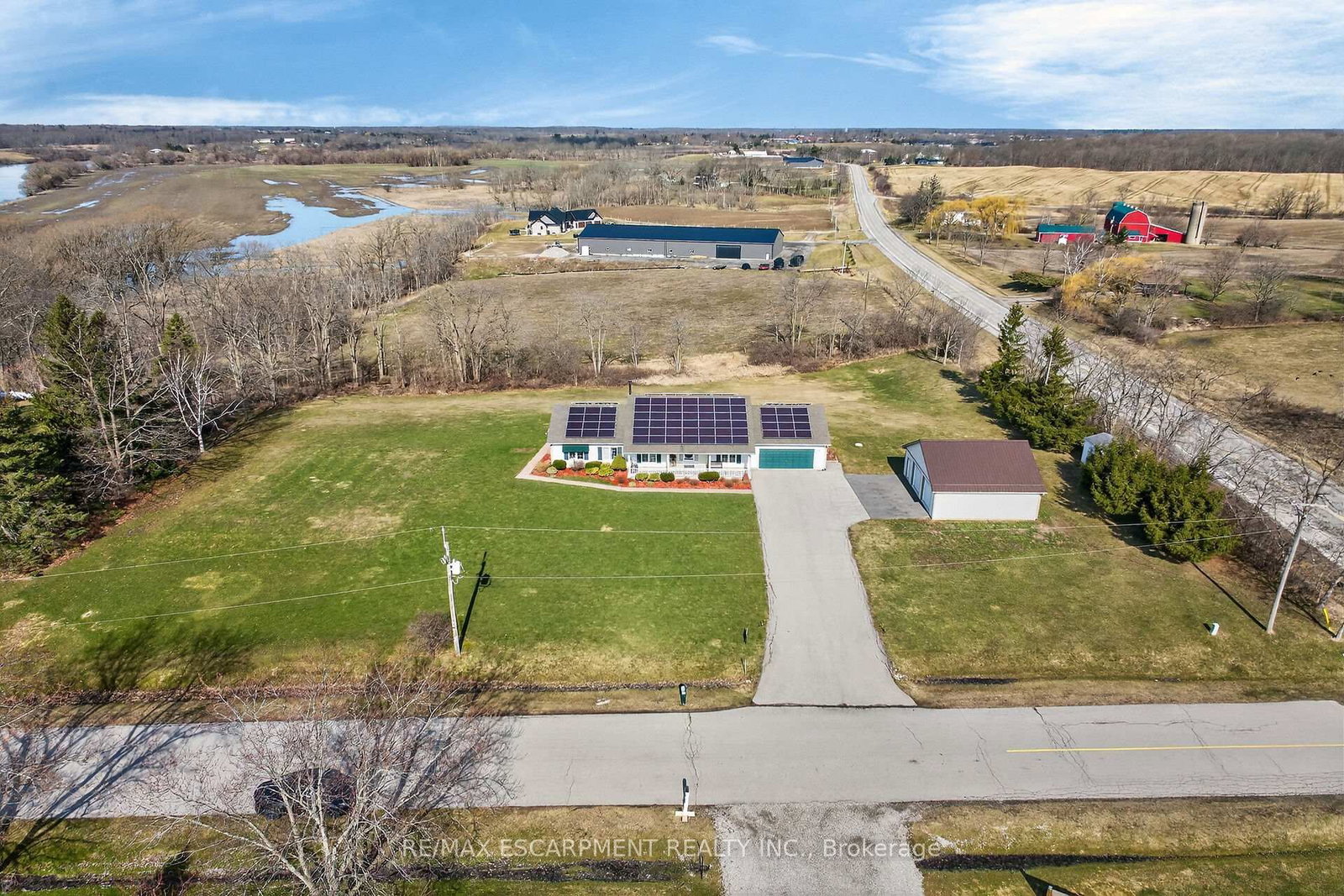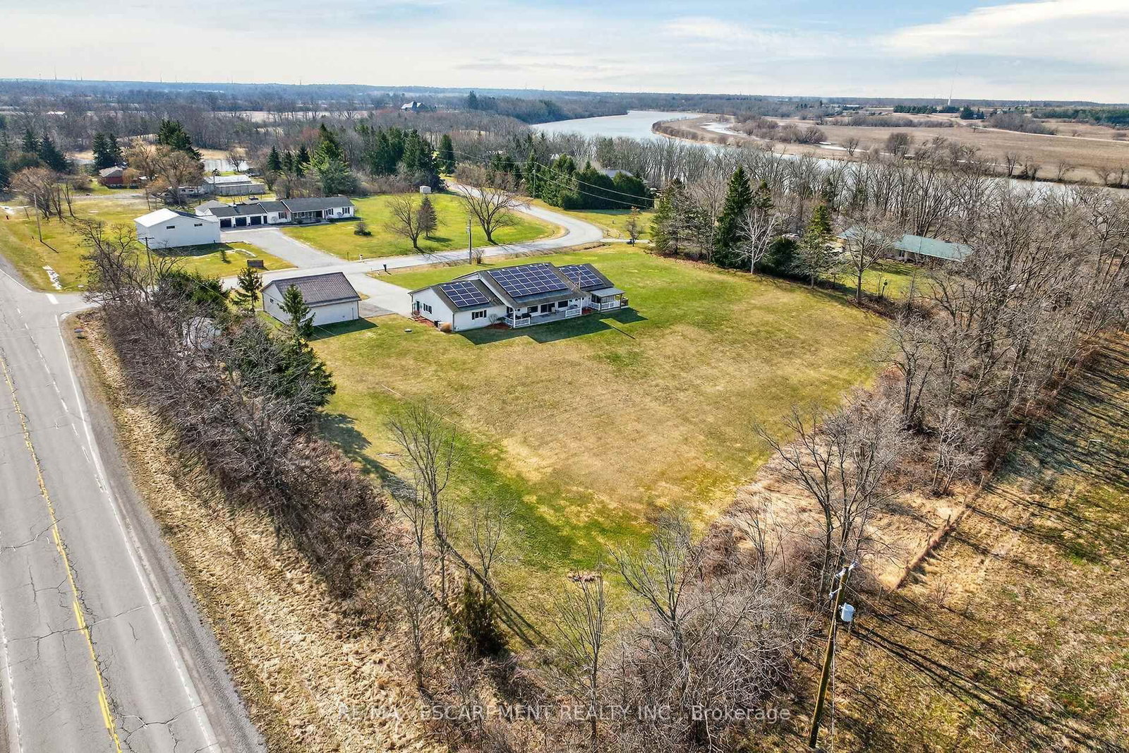 Welcome to 2 Foxlow Crescent! Pride of ownership is evident throughout this original owner, 3 bedroom, 2 bathroom Bungalow situated on picturesque 293' x 280' lot on sought after Foxlow Cresent cul de sac with stunning views of Grand River. The Bungalow on 2 FOXLOW Crescent has 3 bedrooms, 2 bathrooms, and is located on a 280 x 293.98 ft lot in the community of Haldimand . Great curb appeal with attached double garage, detached heated garage, covered front porch, & 2 covered back porches enjoying the calming views. The masterfully designed interior features 1811 sq ft of open concept, beautifully updated living space highlighted by eat in kitchen with peninsula eat at island, bright dining area, large living room with woodstove & patio door walk out to back porch, 3 bedrooms including primary bedroom that is currently set up as an in law suite with kitchenette, ensuite bathroom, & private covered patio (easy to convert back to primary suite), updated 4 pc bathroom, welcoming foyer, laundry room, & office area. Transferrable solar panel contract provides great additional income. Enjoy Cayuga Country Living at its Finest!