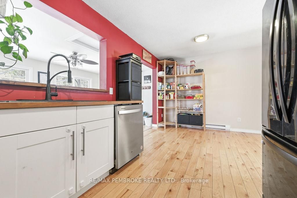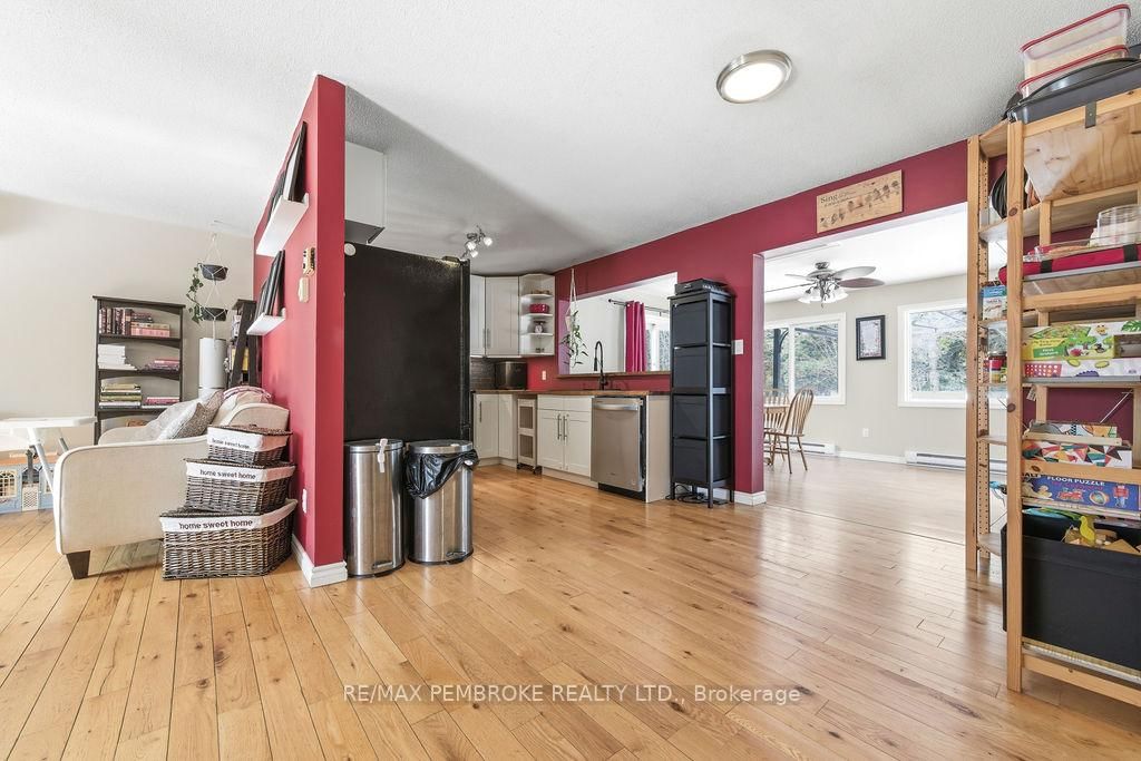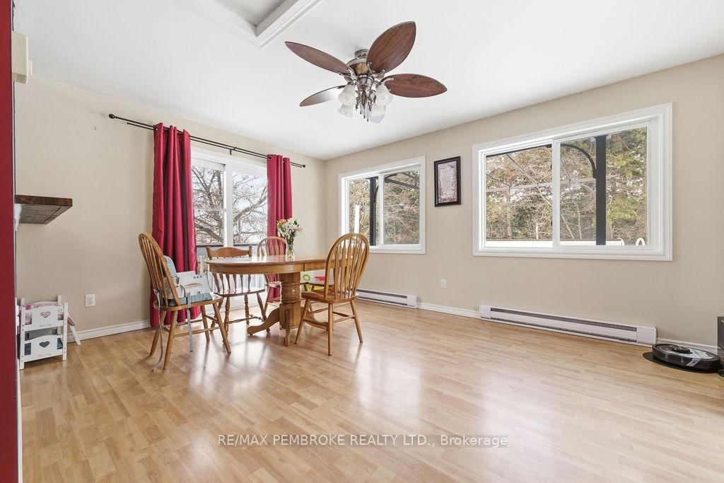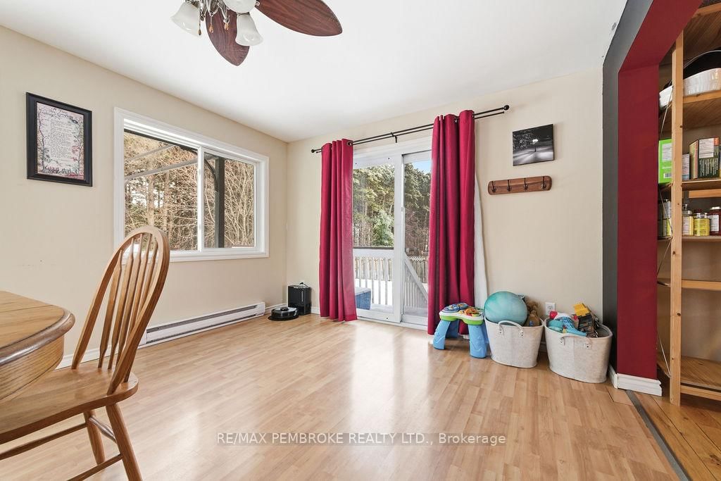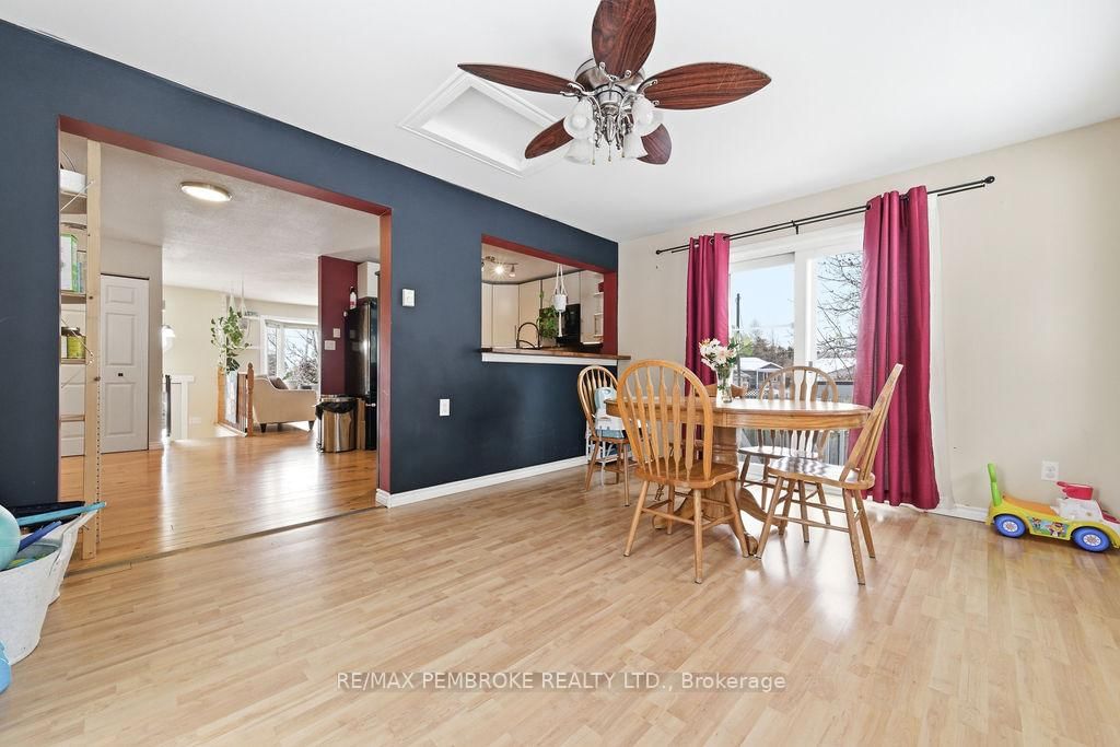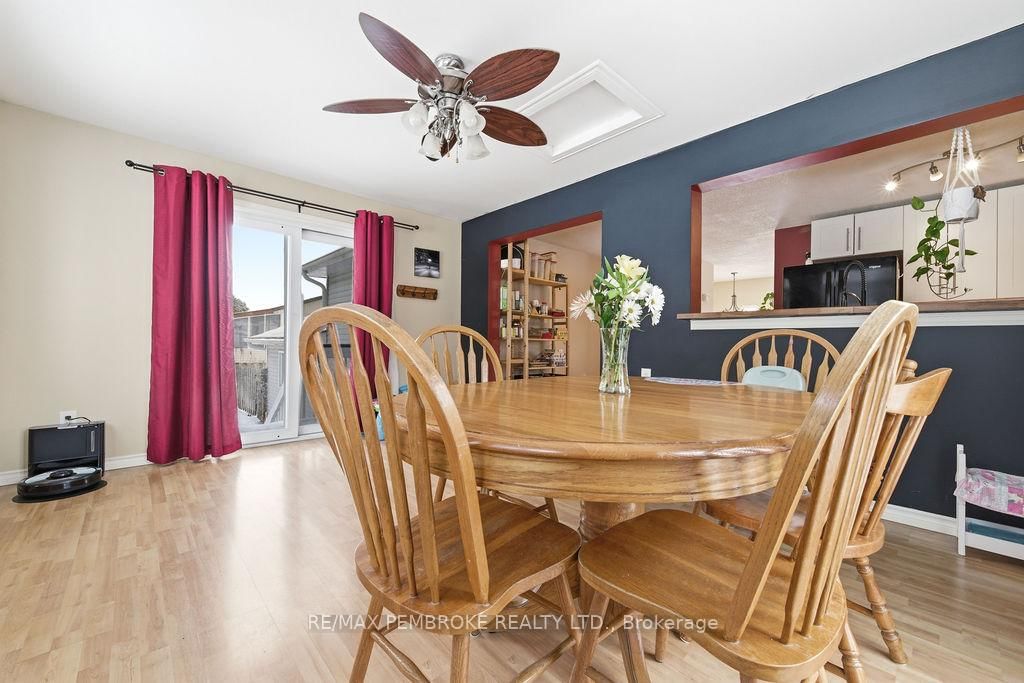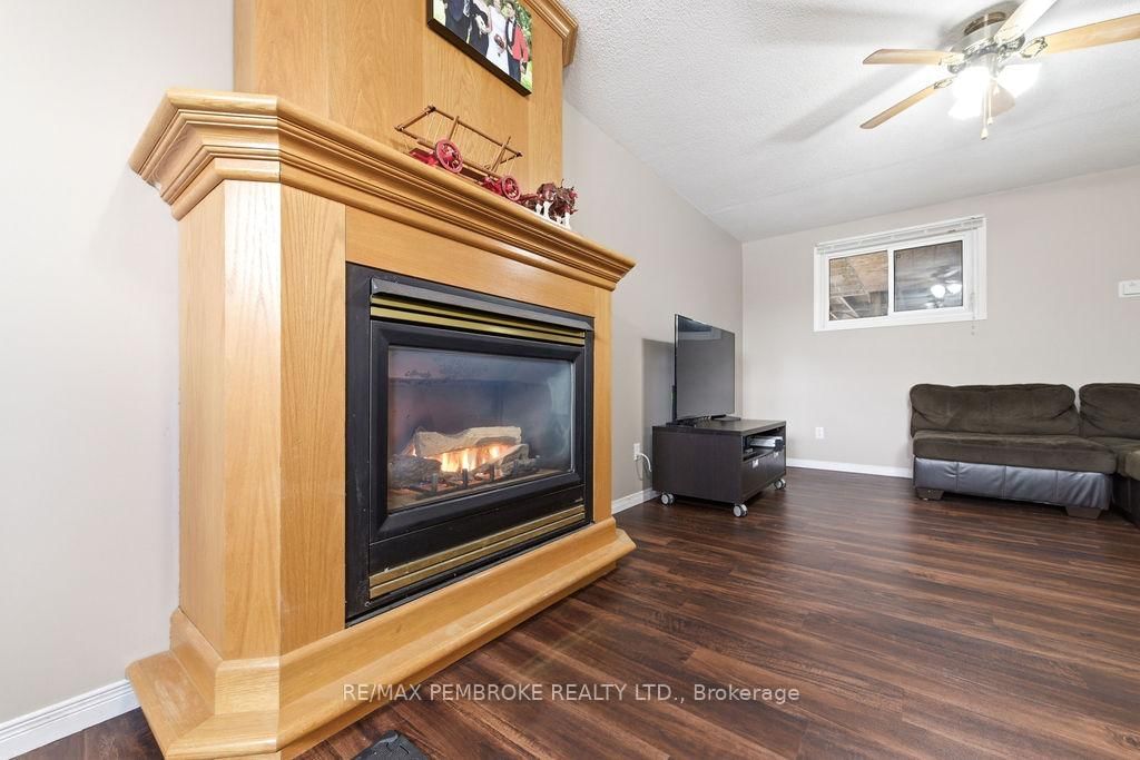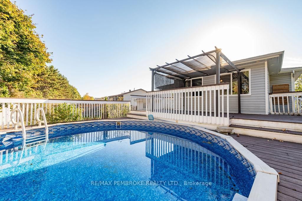 Welcome to this 2+1 bedroom and 2 bathroom home in a quiet neighbourhood that backs onto green space with trails. The Bungalow-Raised on 4 Dutch Drive has 2 bedrooms, 2 bathrooms, and is located on a 110.73 x 55.35 ft lot in the community of Petawawa . Once inside you'll see a large dining room that has been added to the rear of the home. Several large windows bring light into the home and patio doors lead to a deck with pool (liner 2025) in the fully fenced backyard. The lower level features a gas fireplace capable of heating the entire home, high quality flooring (2022) and full bathroom for the extra bedroom. Ductless heat pump (2025) cools and heats the home. The large laundry/boot room has direct access to the garage. The double wide driveway even has a paved section along the side of the garage. Recreation, shopping and amenities within walking distance from home.