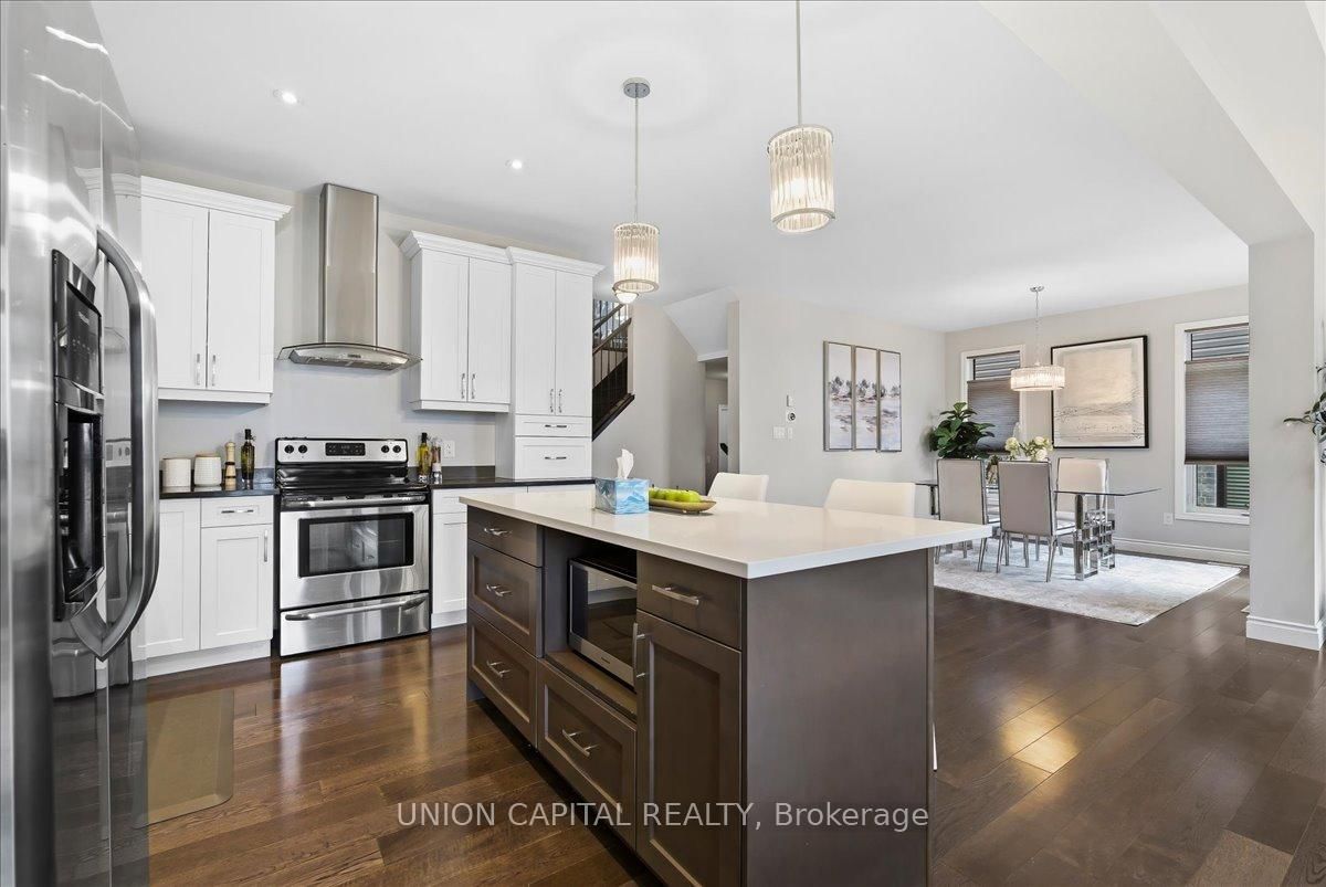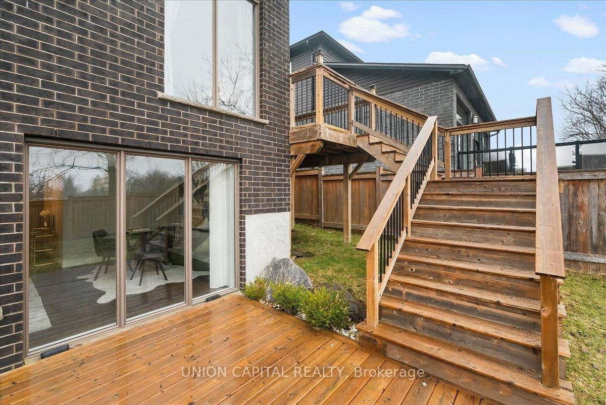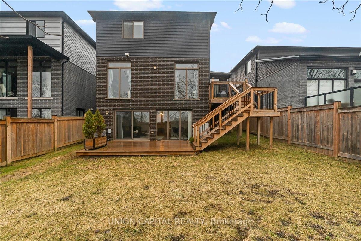 Built by Patrick Hazzard Custom Homes, this beautifully finished 2-storey home with a walkout basement is in Foxfield, one of North London's most desirable family communities. The 2-Storey on 2136 YELLOWBIRCH Place has 4 bedrooms, 4 bathrooms, and is located on a 111.8 x 39.47 ft loton < .50 acres in the community of North S . A bright, open concept main floor features hardwood throughout, a spacious great room with a fireplace, and a chef-inspired kitchen with white and black cabinetry, quartz countertops, crown molding, a chimney-style range hood, and a large island designed for entertaining. The dining area leads to a private raised deck that connects to a lower deck and backyard, creating seamless indoor outdoor living across multiple levels. Upstairs offers three generous bedrooms, a versatile bonus family room, second-floor laundry, and a primary suite with walk in closet and an ensuite with double sinks and glass tiled shower. The fully finished walkout basement adds valuable living space with direct backyard access, ideal for a rec room, home office, or extended family. Quartz counters throughout, ceramic in all wet areas, and solid wood stairs with metal spindles highlight the high level of craftsmanship. Situated minutes from top-rated schools, parks, walking trails, Masonville Mall, Western University, University Hospital, and quick access to Highway 402, this move-in-ready home delivers space, function, and location for today's growing family and is a must-see in Foxfield.