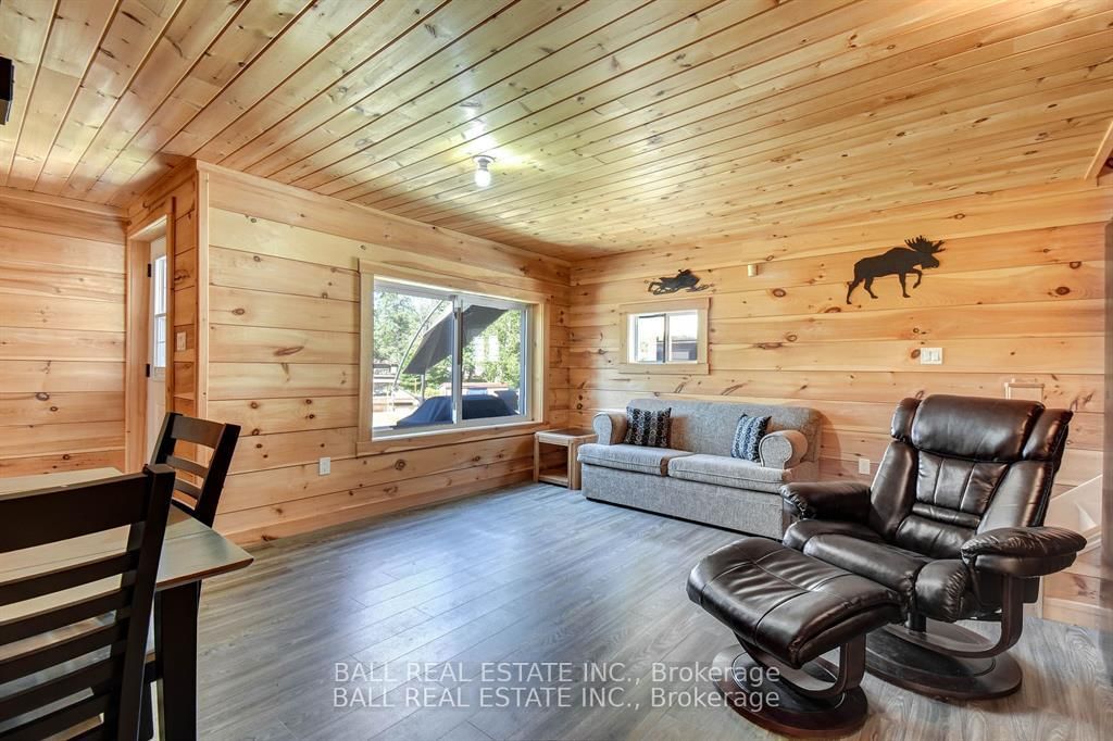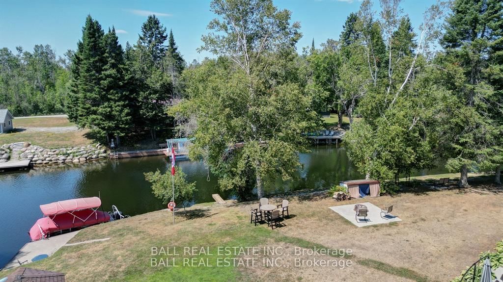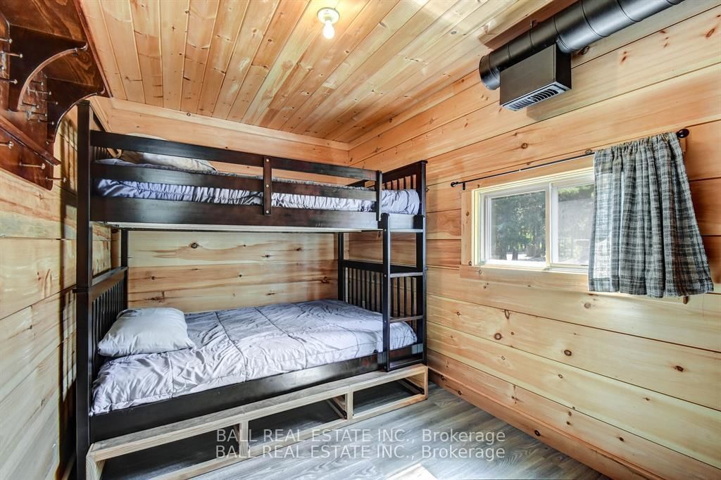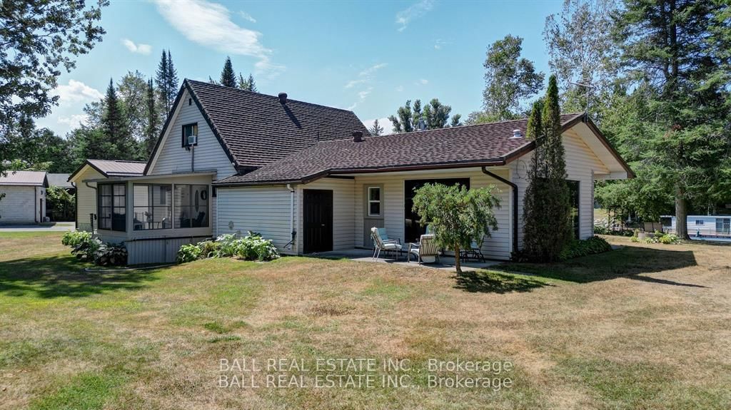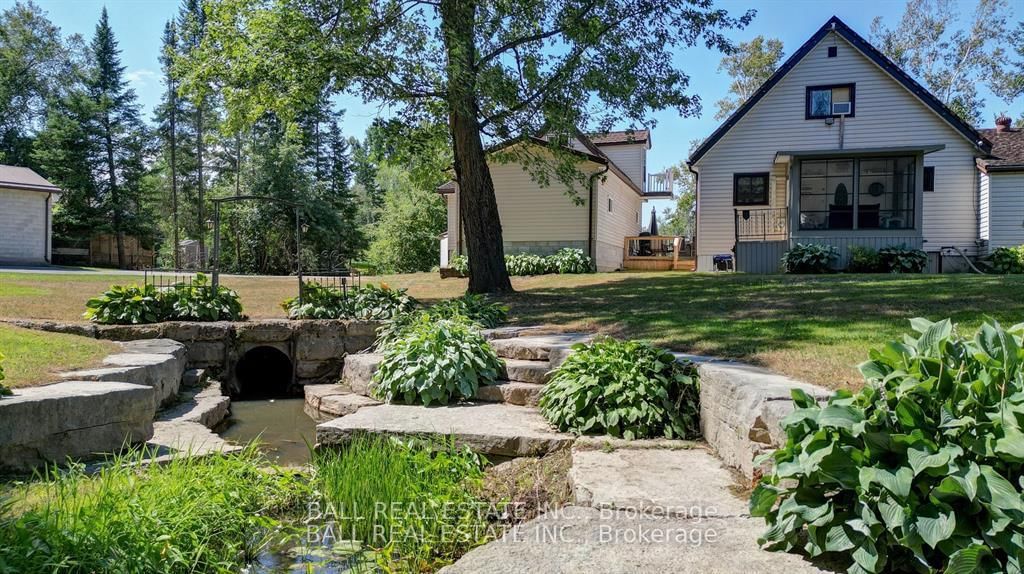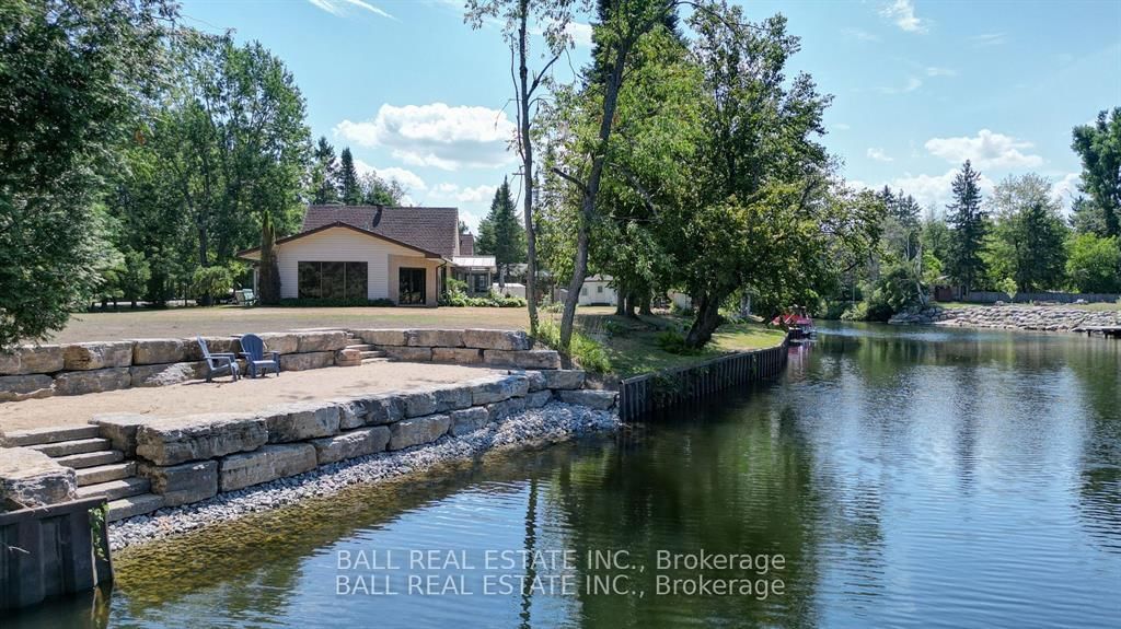 Burnt River home or cottage on a large lot, with a three bedroom secondary residence and a large shop. The Chalet on 45 Brook Road has 3 bedrooms, 2 bathrooms, and is located on a 160 x 300 ft loton .50-1.99 acres in the community of Fenelon Falls .This waterfront home is loaded with character and charm. The main floor is designed for entertaining and family gatherings with a large sunken living room, games room and a dining area with custom furniture designed for the space. The second story is all for the primary bedroom suite with king bed, ensuite bathroom and a nice sitting area with a walk in closet too. Extra guests are no problem here with a three Rooms History bedroom secondary cottage, newly renovated with propane furnace and central air conditioning. If you enjoy your toys, they also have a home in the 25 x 48 shop with mezzanine for extra storage. The property is located on the Burnt River, one hour boat ride to Cameron Lake to the South and an hour of river cruising to the North, where you can enjoy private beaches and great sightseeing. The property is also very close to the snowmobile and rec trail for year round enjoyment. Great location close to Fenelon Falls and Bobcaygeon, minutes by car or take a pontoon boat and enjoy one of the local restaurants or breweries on the water.