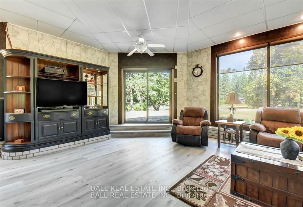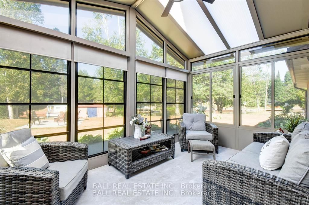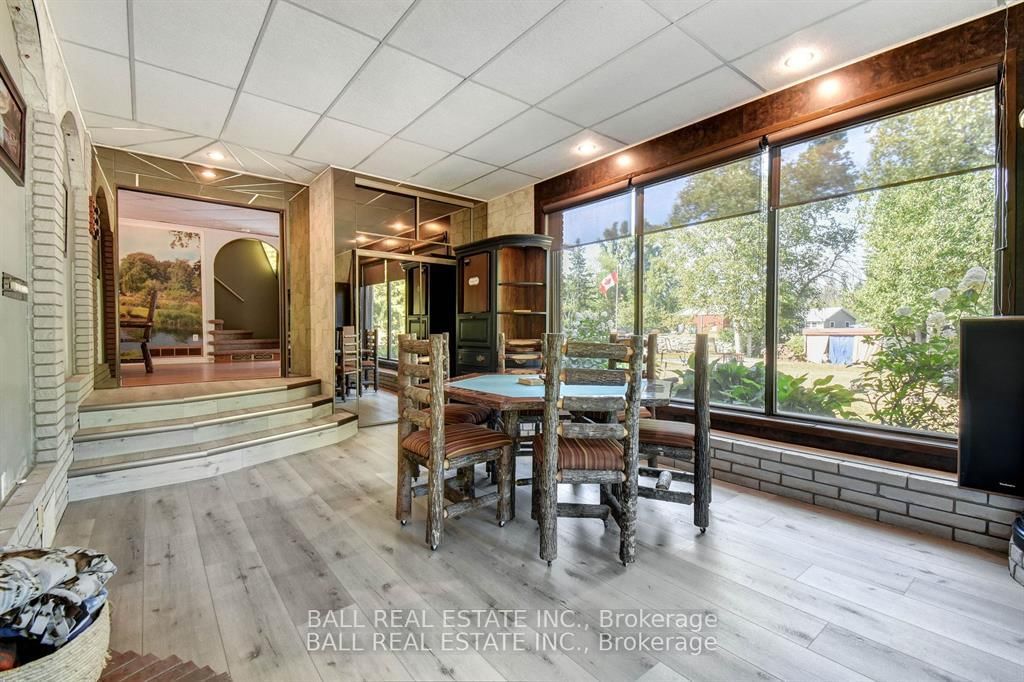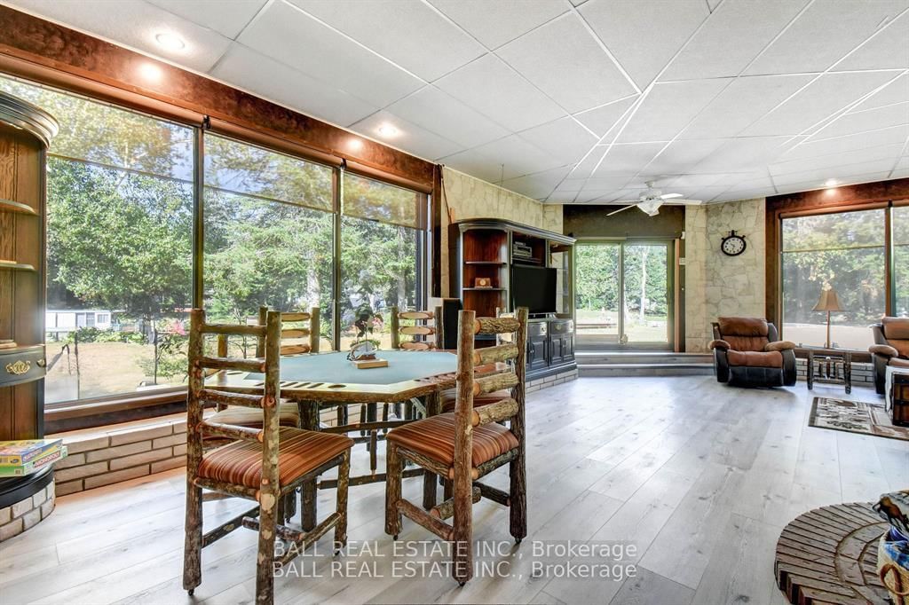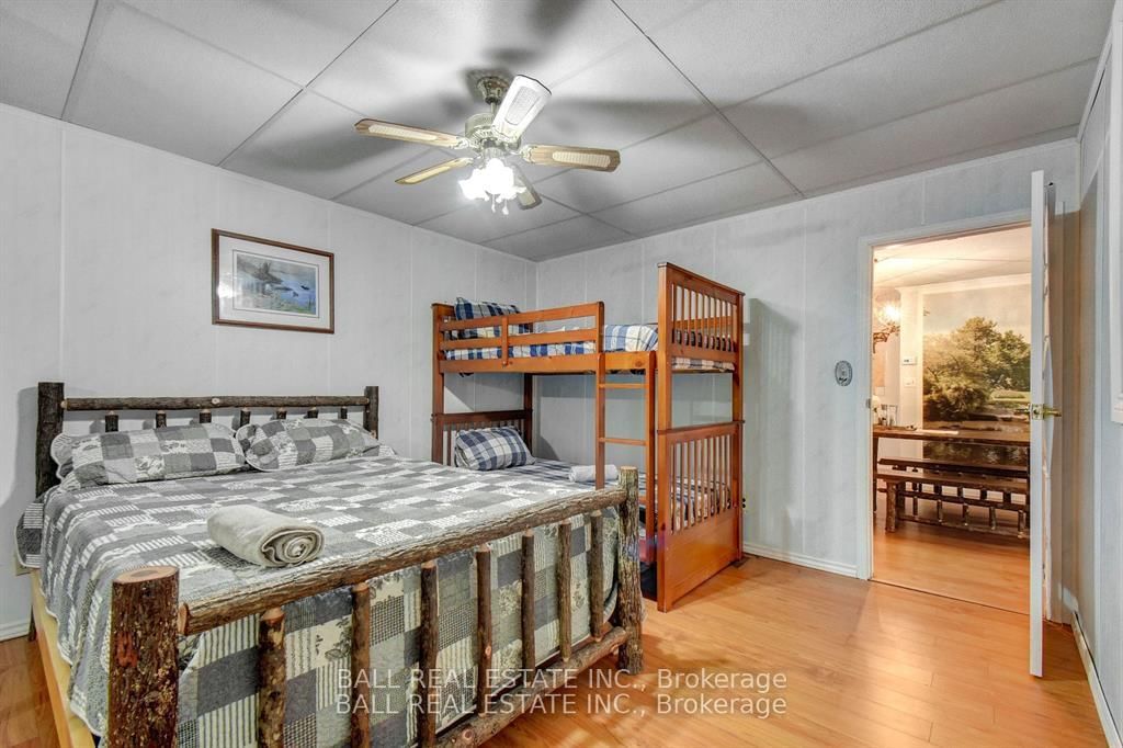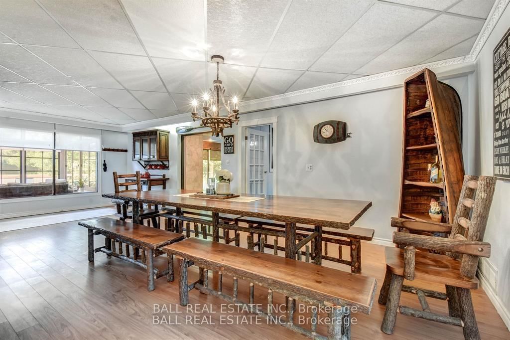Burnt River home or cottage on a large lot, with a three bedroom secondary residence and a large shop. The Chalet on 45 Brook Road has 3 bedrooms, 2 bathrooms, and is located on a 160 x 300 ft loton .50-1.99 acres in the community of Fenelon Falls .This waterfront home is loaded with character and charm. The main floor is designed for entertaining and family gatherings with a large sunken living room, games room and a dining area with custom furniture designed for the space. The second story is all for the primary bedroom suite with king bed, ensuite bathroom and a nice sitting area with a walk in closet too. Extra guests are no problem here with a three Rooms History bedroom secondary cottage, newly renovated with propane furnace and central air conditioning. If you enjoy your toys, they also have a home in the 25 x 48 shop with mezzanine for extra storage. The property is located on the Burnt River, one hour boat ride to Cameron Lake to the South and an hour of river cruising to the North, where you can enjoy private beaches and great sightseeing. The property is also very close to the snowmobile and rec trail for year round enjoyment. Great location close to Fenelon Falls and Bobcaygeon, minutes by car or take a pontoon boat and enjoy one of the local restaurants or breweries on the water.