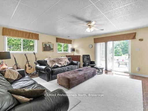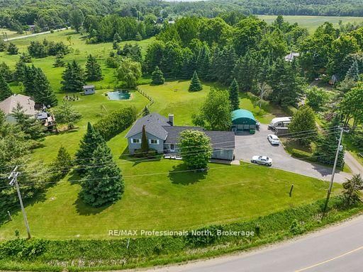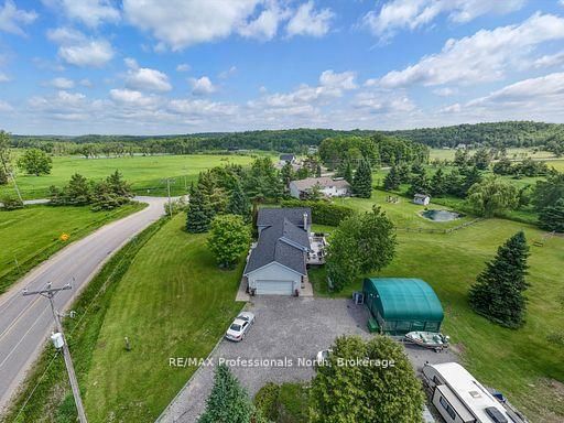 Great Opportunity to own this property ideally and conveniently located in Premier rural area of Bracebridge just steps to Bowyer's Beach and Patterson-Kaye Resort/Seasons Restaurant on Lake Muskoka, 2 min to George Road Public Boat Launch, 3 min to Highlands Golf Club and 5 minute drive to Town and to South Muskoka Golf and Country Club. The Sidesplit 4 on 1287 Golden Beach Road has 3 bedrooms, 2 bathrooms, and is located on a 295.4 x 197.8 ft loton .50-1.99 acres in the community of Monck (Bracebridge) . This very well maintained 3 bedroom/2 bathroom home offers a unique country oasis to behold with almost 2000 sq ft of finished living area (2600 sq ft total). Gentle and beautifully landscaped yard is a show piece and is approximately 1 acre in size and features generous parking and outside storage areas, and plenty of play areas for kids and summer get togethers. Enjoy the long open and forested views to the east, westerly year round sunsets and the abundant wildlife that visit the property. Relax and on your choice of either front or rear (12'X26') cedar decks or the ground level 12'x22' private rear patio, or unwind in the evenings around the cozy wood fire pit. Well maintained and upgraded home features open concept main level kitchen/dining/living room area with walkout to both decks. Lower area features spacious and bright family room with gas fireplace with walk out to rear patio and fire pit area; rec room/office/hobby room and storage rooms. Upper level features Primary Suite with 3 piece ensuite overlooking the rear yard, 2 additional bedrooms and 4 piece bathroom. Upgrades include Roof Shingles (2024), both bathrooms, High Efficiency Furnace and A/C, Scraped Walnut Floors, GenerLink for Power Backup and 6 stainless steel appliances. Other features include 280' drilled well (great water!) attached 22'X23' garage, 20'X20' outbuilding, central vac and recently inspected septic system. Home Inspection report available upon request.