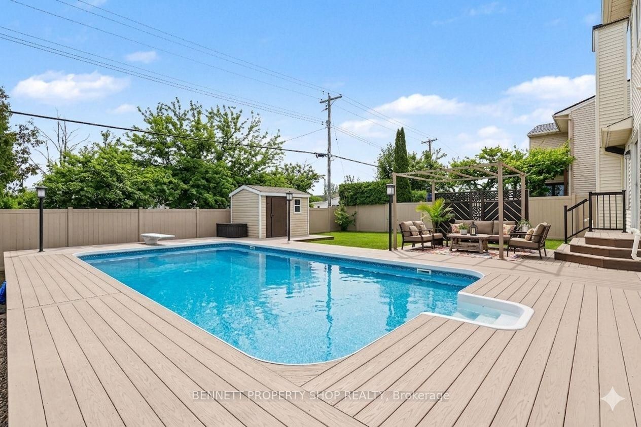 Step into a home where genuine pride of ownership meets modern elegance, perfectly tailored for a growing family that loves to host. The 2-Storey on 1476 Bourcier Drive has 4 bedrooms, 3 bathrooms, and is located on a 107.08 x 60 ft lot in the community of Bilberry Creek/Queenswood Heights . This stunning, move-in-ready residence offers a seamless blend of high-end comfort and sophisticated style, beginning with a grand entrance highlighted by a designer black-and-gold chandelier. Rich hardwood flooring flows throughout the main level and into all three spacious bedrooms, while the heart of the home features a charming barn-door walk-in pantry and modern lighting. The primary suite serves as a private sanctuary, boasting a 2016-renovated ensuite with acrylic double sinks, a stand-alone tub, and a custom mosaic glass shower with a rainwater head, all warmed by an integrated electric fireplace. Your summers will be spent in a private backyard oasis featuring a massive 16' x 32' solar-heated inground pool (liner replaced 2021), a premium composite deck, and a spacious patio surrounded by lush, mature landscaping. With major updates including a new A/C (2024), furnace (2016), and roof (approx. 2016), you can move in with total peace of mind. Families will love the convenience of nearby top-rated schools, vibrant community parks, splash pads, and local recreation centers, all just minutes from grocery stores and easy transit access. This is more than a home; it's the lifestyle your family deserves. Come visit this incredible property today and see the quality for yourself! 24 hours irrevocable on all offers. Some photos are digitally enhanced.
