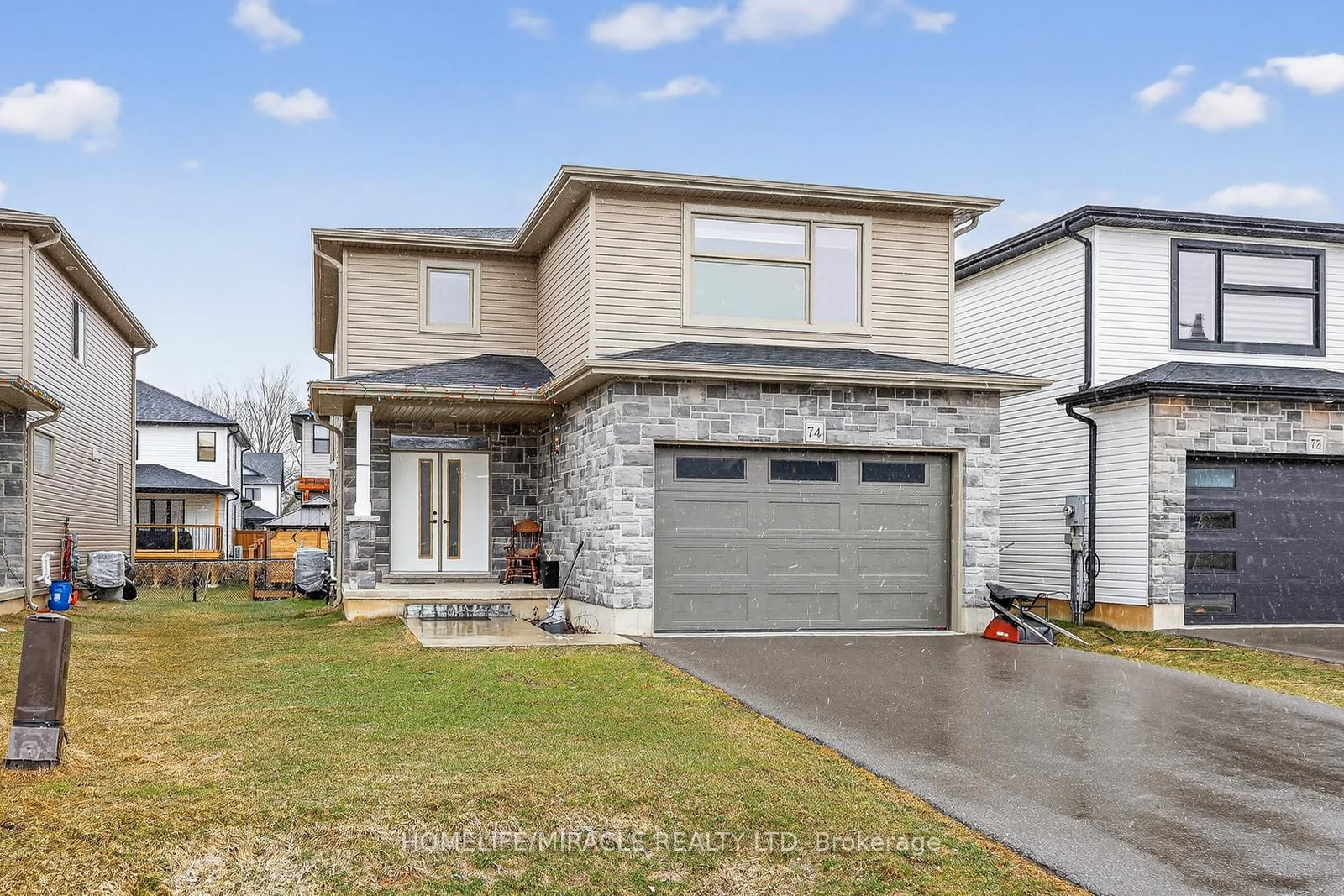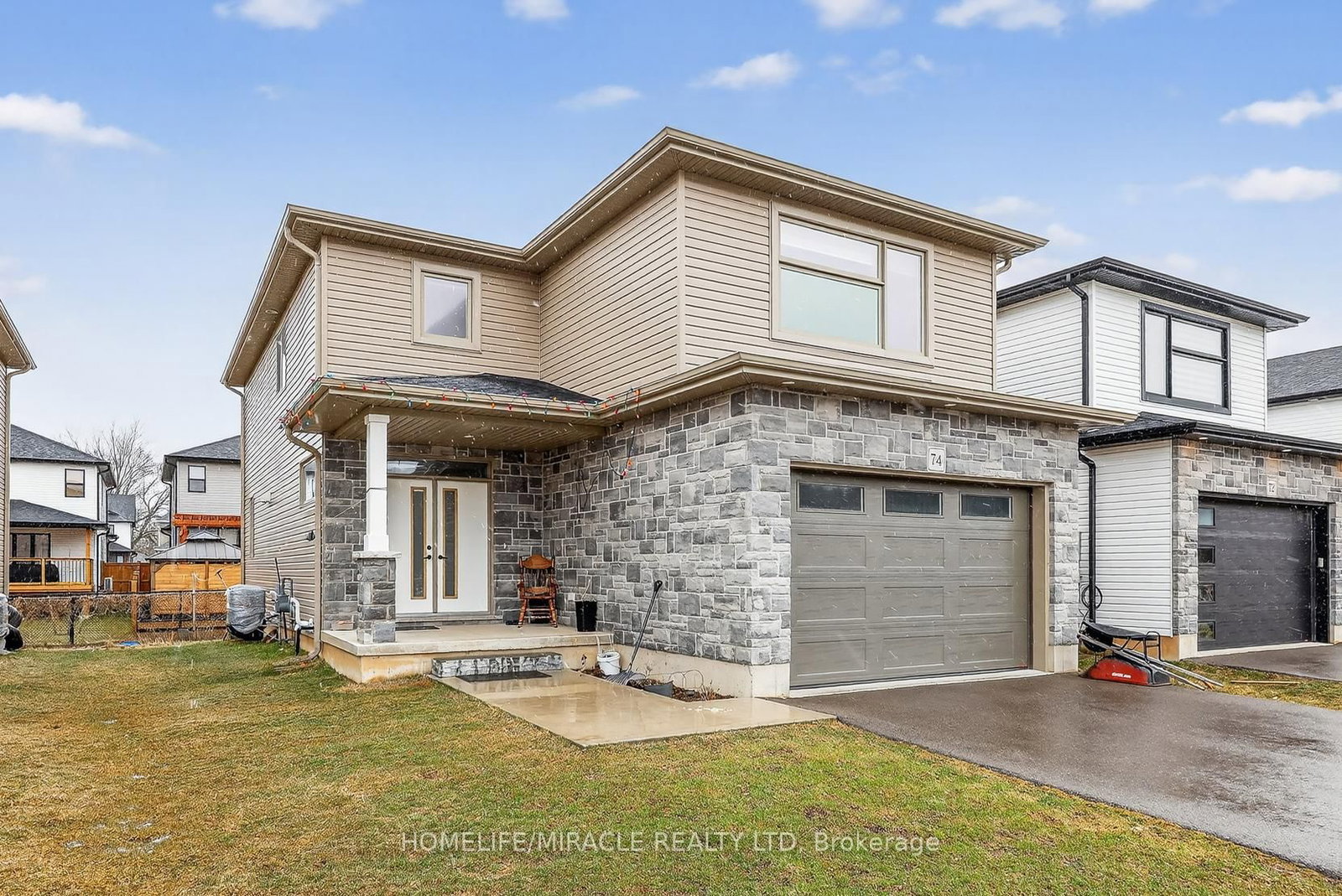 Discover refined living in this stunning modern 2-storey detached home, ideally situated in the desirable South Ingersoll community with convenient access to major highways. The 2-Storey on 74 Cash Crescent has 4 bedrooms, 3 bathrooms, and is located on a 98.67 x 40.09 ft lot in the community of South . Nestled on a premium 40 x 98 ft lot in the sought-after Golf Estates, this home is perfectly positioned adjacent to the picturesque Ingersoll Golf Club. Showcasing exceptional curb appeal with an elegant stone façade, the home welcomes you through a spacious foyer into a beautifully upgraded, family-friendly open-concept main floor. Designed for both comfort and sophistication, the chef-inspired kitchen features quartz countertops with a seamless custom backsplash, extended white cabinetry with a large walk-in pantry. The space is enhanced by pot lights, and a generous breakfast bar-perfect for entertaining. Premium stainless steel appliances include a fridge, Gas cooktop, dishwasher, and integrated wall oven/microwave combination. A striking wood post staircase leads to the upper level, offering four generously sized bedrooms. The primary suite is a private retreat, complete with a luxurious 5-piece ensuite featuring dual vanities, a large soaker tub, and a separate glass shower. Located in a vibrant and growing community, this exceptional home is close to top-rated schools, parks, and everyday amenities-making it an ideal choice for families seeking both style and convenience.