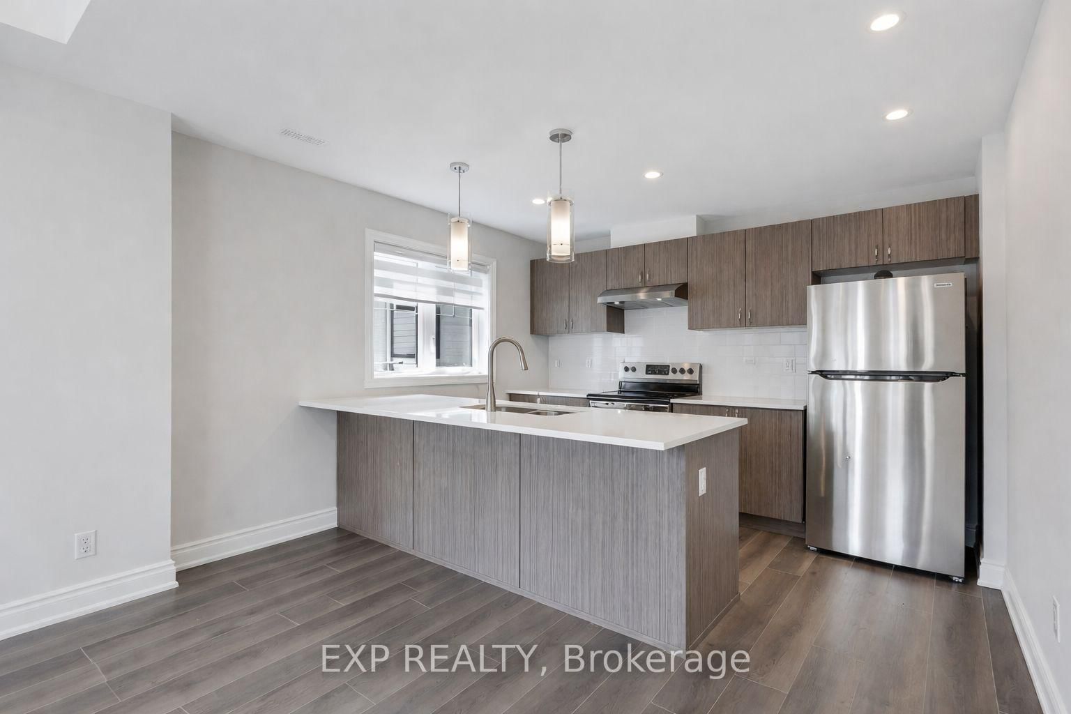 LIKE NEW UPPER LEVEL CORNER UNIT (with over $20,000 in upgrades) offers 1283 sq ft of living space and is the only 3-bedroom model currently available (a rare builder configuration). The 2-Storey on 757 Chromite Private has 3 bedrooms, 2 bathrooms, and is located in the community of Barrhaven - Heritage Park . This bright and sunny end unit features optimal south/west exposure, maximizing natural sunlight throughout the day. As a corner unit, you benefit from additional side windows that flood the space with even more light compared to interior units, along with slightly increased square footage. The upgraded kitchen, featuring quartz countertops and stainless steel appliances, overlooks the open-concept living and dining areas. The main living areas and bedrooms are completely carpet free, and feature upgraded laminate flooring throughout! Enjoy two private balconies - one off the living area and another from the primary bedroom - perfect for relaxing and taking in the sunsets. The laundry is located upstairs near the bedrooms for added convenience. Located in the quiet, family-oriented community of Barrhaven, this prime location offers easy access to parks, walking paths, and is steps from top-rated schools, public transit, shopping, and the Minto Recreation Complex. This exceptional and rarely offered unit won't last long - inquire today to book your showing!