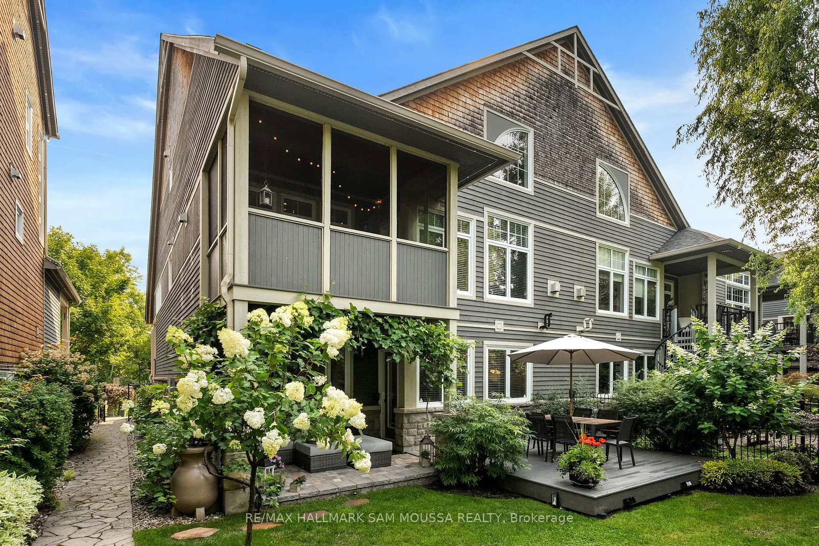 Tucked away in the sought-after enclave of Marshes Village, this beautifully upgraded end-unit townhome offers refined living. The 3-Storey on 25 Marsh Sparrow Private has 3 bedrooms, 4 bathrooms, and is located on a 116.39 x 35.57 ft lot in the community of Morgan's Grant/South March . Thoughtfully maintained and tastefully enhanced. A foyer with Italian tile sets the tone, opening to open-concept living and dining spaces. Soaring ceilings, expansive windows, and a stone fireplace create a warm atmosphere. The kitchen is a standout, granite counters, stainless steel appliances, and generous cabinetry, all designed with beauty and practicality in mind. A dedicated office, renovated powder room, and laundry area enhance the main level. Off the main living area, a screened-in porch with a gas hookup for BBQ overlooks the back garden. The primary suite is a true retreat, with a large custom walk-in closet and a stunning spa-inspired ensuite. Upstairs, a versatile loft with two closets and a full bath provides flexible living space, ideal for a guest suite or reading nook. Oak hardwood flooring runs throughout, including all three staircases. The finished walk-out lower level offers even more flexibility with a second family room, a spacious bedroom overlooking the garden, a walk-through closet, and a beautifully renovated full bath. This level also features floating oak flooring, adding to the comfort throughout. Outside, professional landscaping enhances the front and rear gardens, a large cedar deck and elegant stone patio provide the perfect backdrop for outdoor entertaining. Recent upgrades include new roof tiles and new wooden front steps. Situated next to the prestigious Marshes Golf Course and just minutes from Kanata Norths high-tech hub, the Brookstreet Hotel, DND, the 417, local shops and restaurants, the Richcraft Rec Complex, and nearby pickleball courts, this home offers a luxurious lifestyle in one of the city's most exclusive communities. Marshes Village Homeowners Association fee is $196/month covers road snow removal, landscaping, general maintenance, audit and insurance with a reserve fund for future needs.