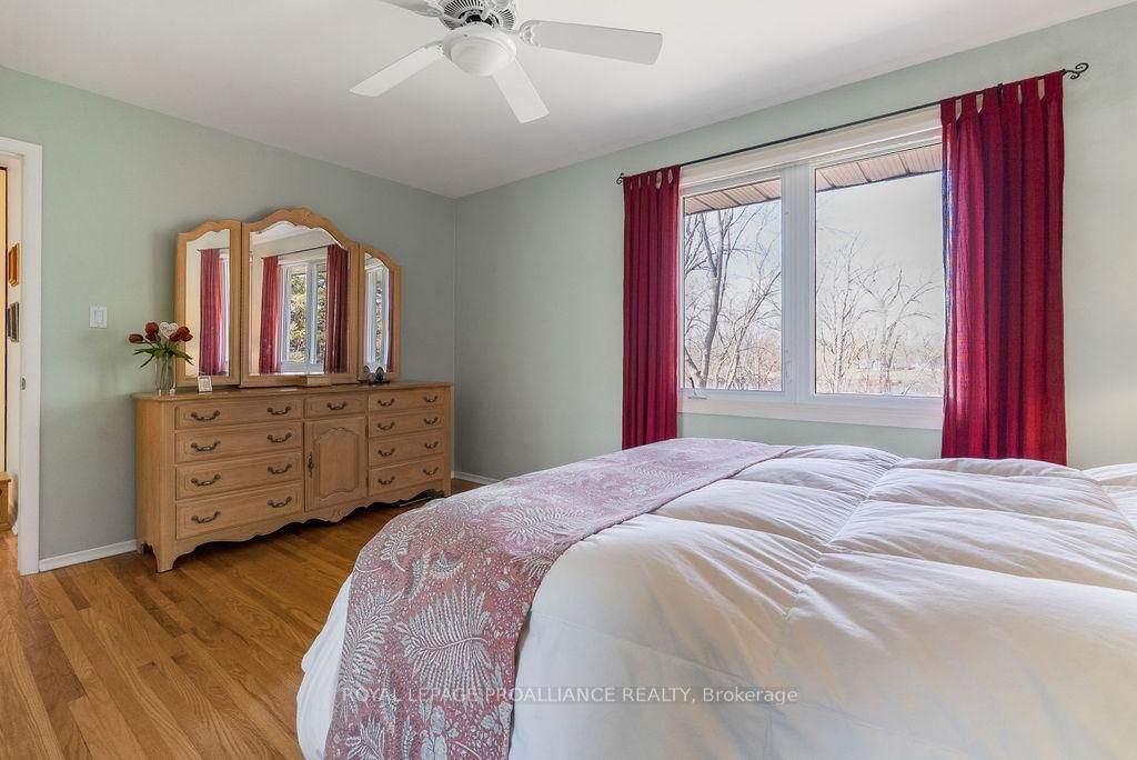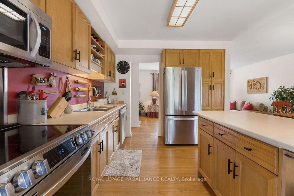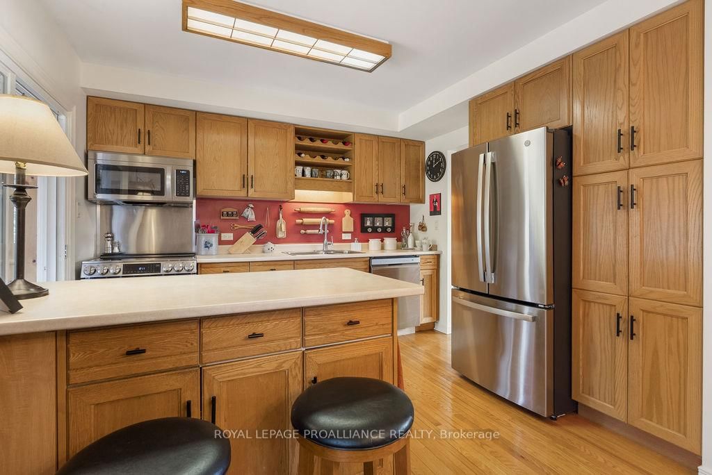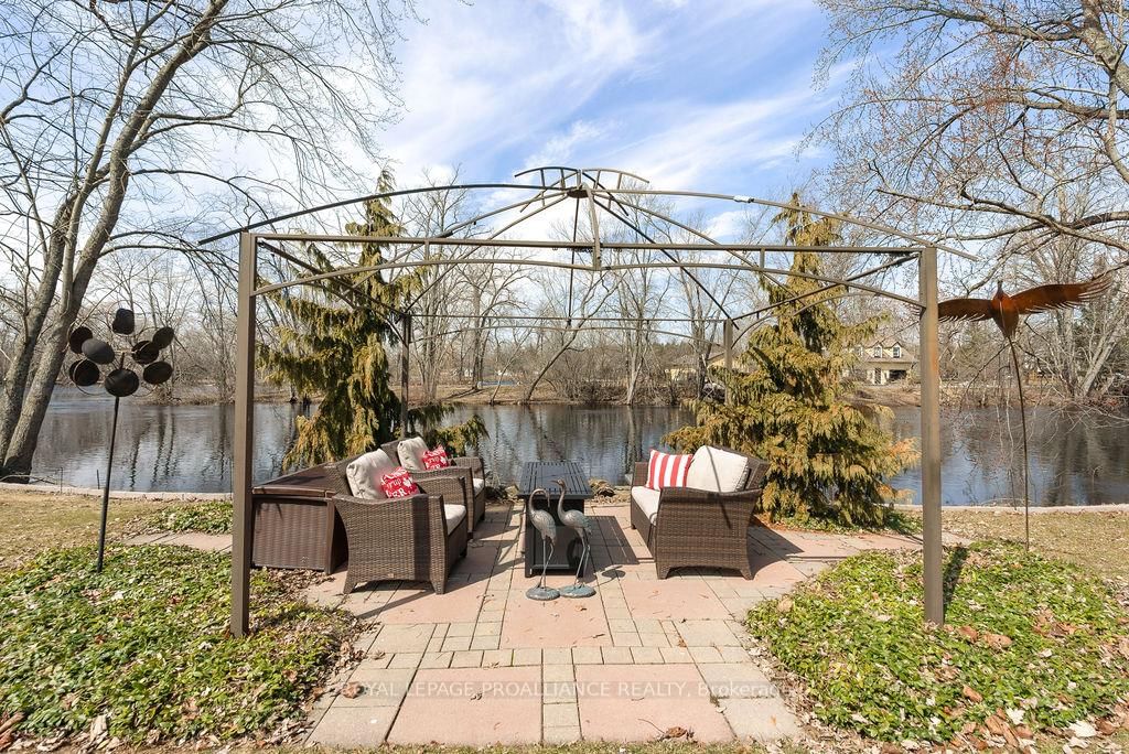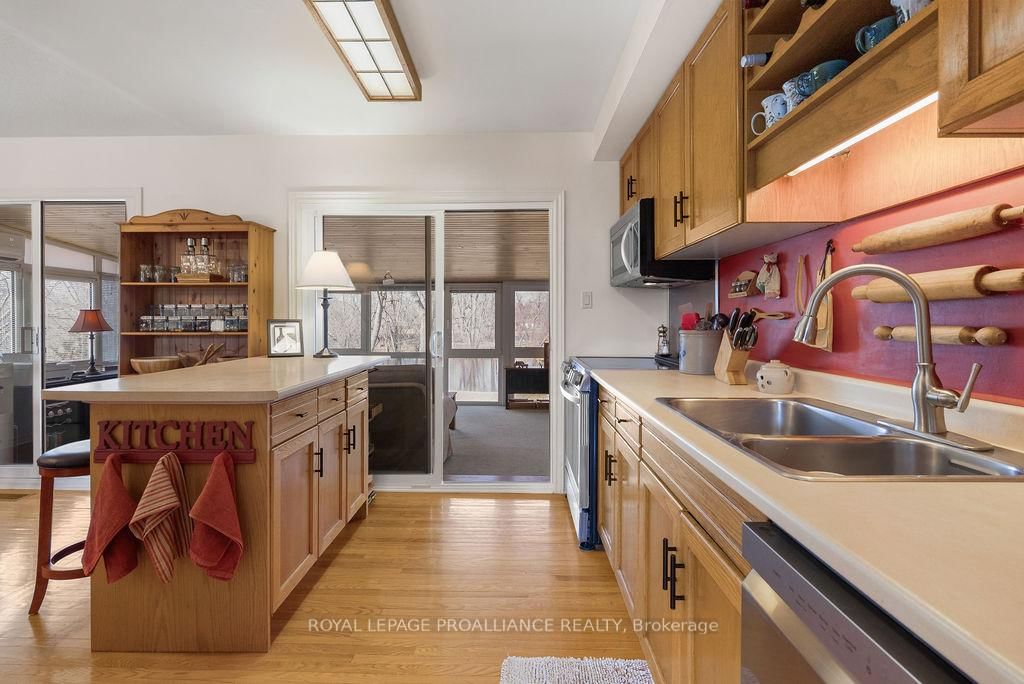 Welcome to 38 Greenfield Park, where peaceful waterfront living meets everyday comfort in one of Belleville's most desirable neighbourhoods. The Backsplit 3 on 38 Greenfield Park has 3 bedrooms, 2 bathrooms, and is located on a 136.64 x 110 ft loton < .50 acres in the community of Thurlow Ward . Tucked away on a quiet cul-de-sac with minimal traffic, this beautifully maintained home offers a rare chance to unwind along the scenic Moira River. Step inside to a spacious front landing with a convenient 3-piece bathroom and direct access to the attached two-car garage, complete with a workbench and ample cabinetry, perfect for DIY projects or hobbyists. The main level welcomes you with a bright, sun-filled living room, where a large bay window creates a warm and inviting space to gather. It flows effortlessly into the country-style kitchen, featuring classic oak cabinetry, plenty of storage, and a dining area made for easy, everyday living. Just off the kitchen, the insulated sun-room is a space you'll never want to leave, complete with a new glass door and heat pump for year-round comfort, all while overlooking the backyard and tranquil river beyond. Upstairs, you'll find three comfortable bedrooms and a 4-piece bath. Beautifully preserved original hardwood runs throughout both the main and upper levels, adding timeless character and warmth to the home. The fully finished lower level offers a cozy retreat with a gas fireplace, perfect for movie nights or quiet evenings with a book. Outside is where this home truly comes to life. Mature landscaping with perennial gardens and hard wood trees, provide a polished and mature look to the property A multi-tiered deck with hot tub invites you to relax, while the patio and gazebo by the water's edge set the scene for peaceful mornings and unforgettable summer evenings. A solid cement dock makes it easy to enjoy everything waterfront living has to offer, and mature trees create a private, natural escape in the warmer months. Just minutes to Belleville, great golf, and Harmony Public School, this is more than a home, it's a lifestyle you'll look forward to every single day.