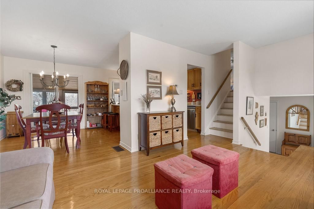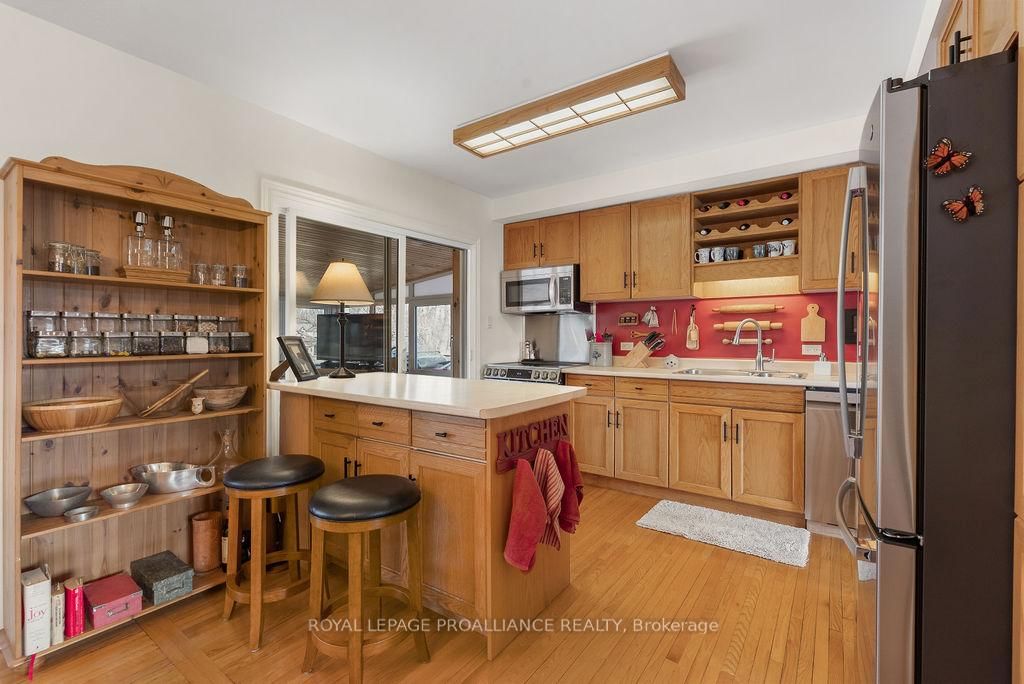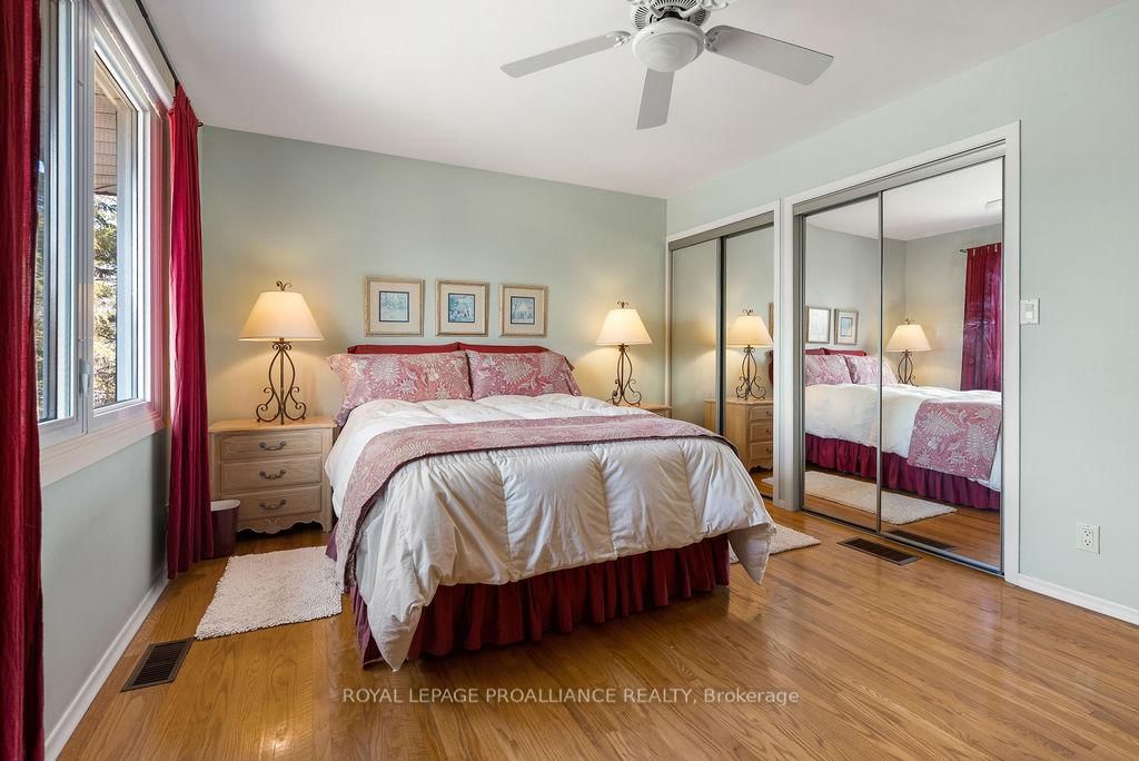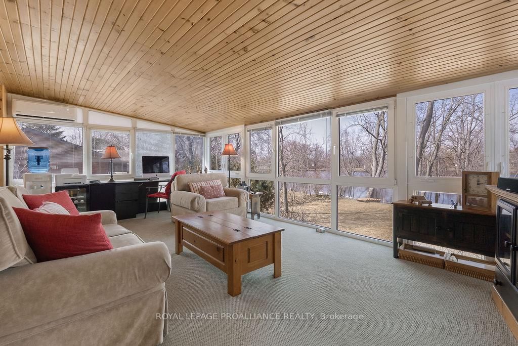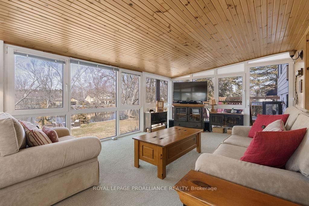 Welcome to 38 Greenfield Park, where peaceful waterfront living meets everyday comfort in one of Belleville's most desirable neighbourhoods. The Backsplit 3 on 38 Greenfield Park has 3 bedrooms, 2 bathrooms, and is located on a 136.64 x 110 ft loton < .50 acres in the community of Thurlow Ward . Tucked away on a quiet cul-de-sac with minimal traffic, this beautifully maintained home offers a rare chance to unwind along the scenic Moira River. Step inside to a spacious front landing with a convenient 3-piece bathroom and direct access to the attached two-car garage, complete with a workbench and ample cabinetry, perfect for DIY projects or hobbyists. The main level welcomes you with a bright, sun-filled living room, where a large bay window creates a warm and inviting space to gather. It flows effortlessly into the country-style kitchen, featuring classic oak cabinetry, plenty of storage, and a dining area made for easy, everyday living. Just off the kitchen, the insulated sun-room is a space you'll never want to leave, complete with a new glass door and heat pump for year-round comfort, all while overlooking the backyard and tranquil river beyond. Upstairs, you'll find three comfortable bedrooms and a 4-piece bath. Beautifully preserved original hardwood runs throughout both the main and upper levels, adding timeless character and warmth to the home. The fully finished lower level offers a cozy retreat with a gas fireplace, perfect for movie nights or quiet evenings with a book. Outside is where this home truly comes to life. Mature landscaping with perennial gardens and hard wood trees, provide a polished and mature look to the property A multi-tiered deck with hot tub invites you to relax, while the patio and gazebo by the water's edge set the scene for peaceful mornings and unforgettable summer evenings. A solid cement dock makes it easy to enjoy everything waterfront living has to offer, and mature trees create a private, natural escape in the warmer months. Just minutes to Belleville, great golf, and Harmony Public School, this is more than a home, it's a lifestyle you'll look forward to every single day.