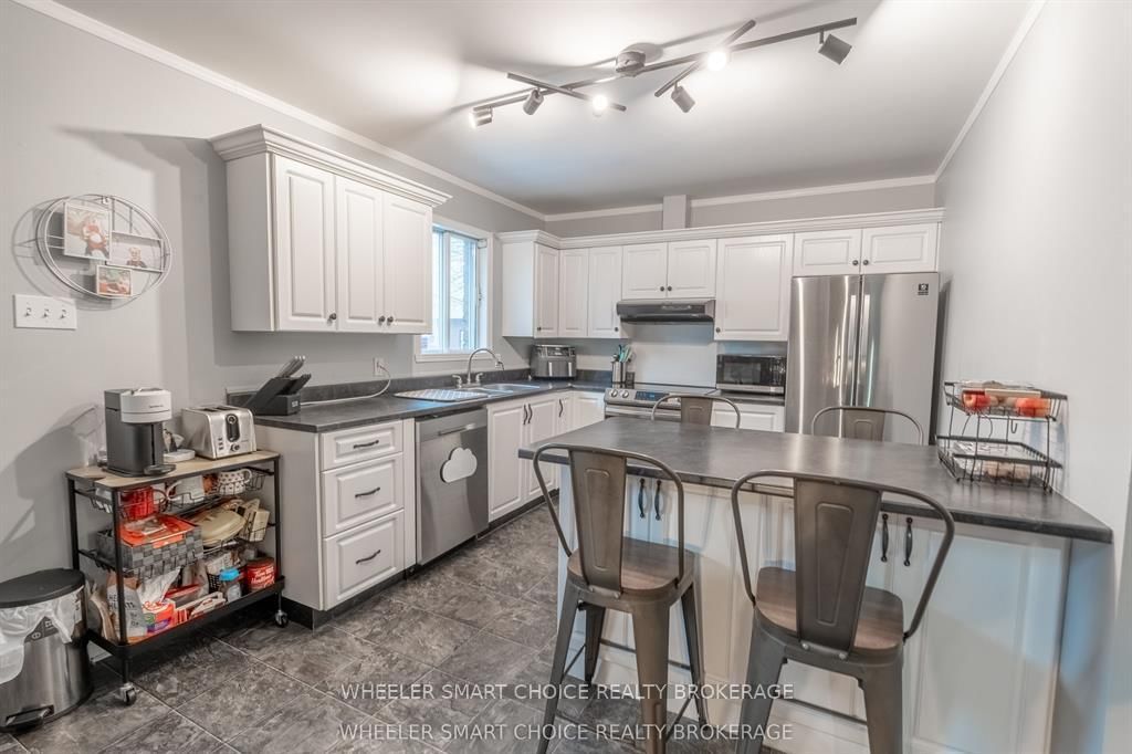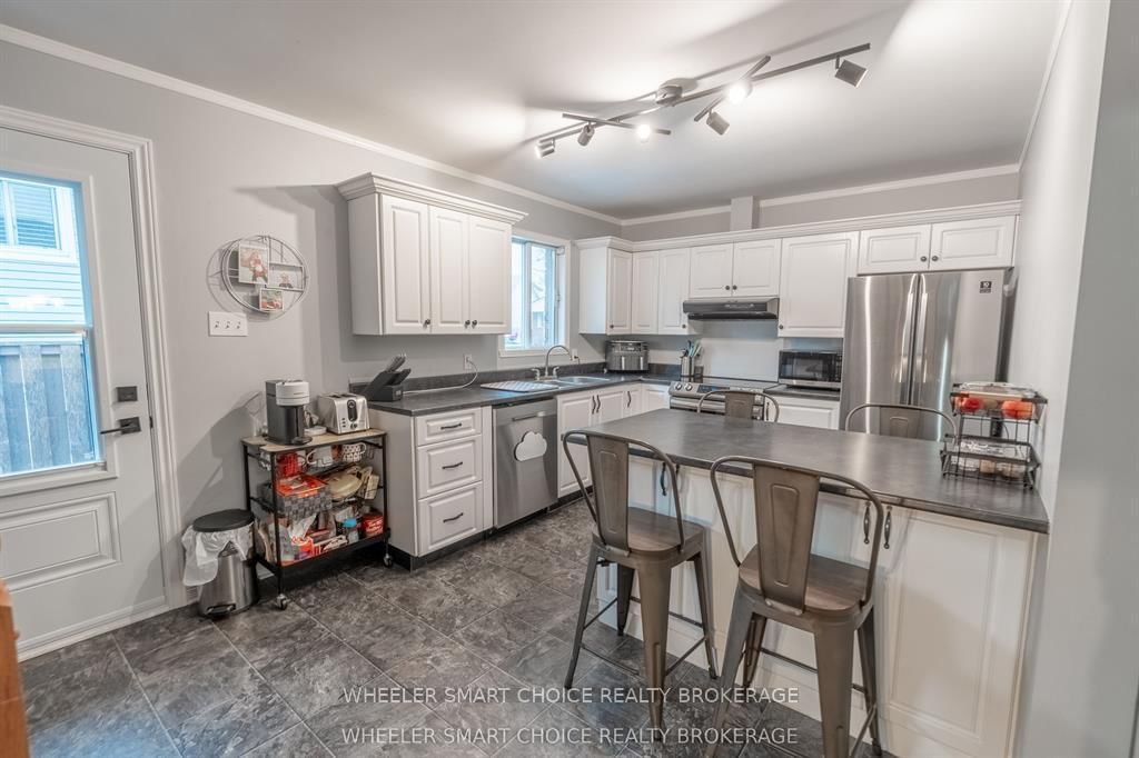 Welcome to your families next home. The Sidesplit on 402 Cline Avenue has 3 bedrooms, 2 bathrooms, and is located on a 101.97 x 61.02 ft lot in the community of Cornwall . This well-maintained property offers a bright and functional main floor featuring an updated kitchen with abundant cabinetry and workspace. This home has a spacious living/dining area highlighted by hardwood flooring and crown moldings. Upstairs, you'll find three generous bedrooms and a 4-piece bathroom with a relaxing soaker tub. The primary bedroom includes patio door access to the backyard-perfect for morning coffee or quiet evenings. The finished basement adds valuable living space with a large rec room, a combined 2-piece bath/laundry room, and a convenient crawl space offering extensive storage. Recent updates include new patio door and side door, Gas Furnace and Shingles (2016).Step outside to a fully fenced backyard complete with a screened-in gazebo, a good-sized patio, and interlocking walkways-ideal for entertaining or relaxing with family. This home is truly move-in ready and waiting for its next family to enjoy!