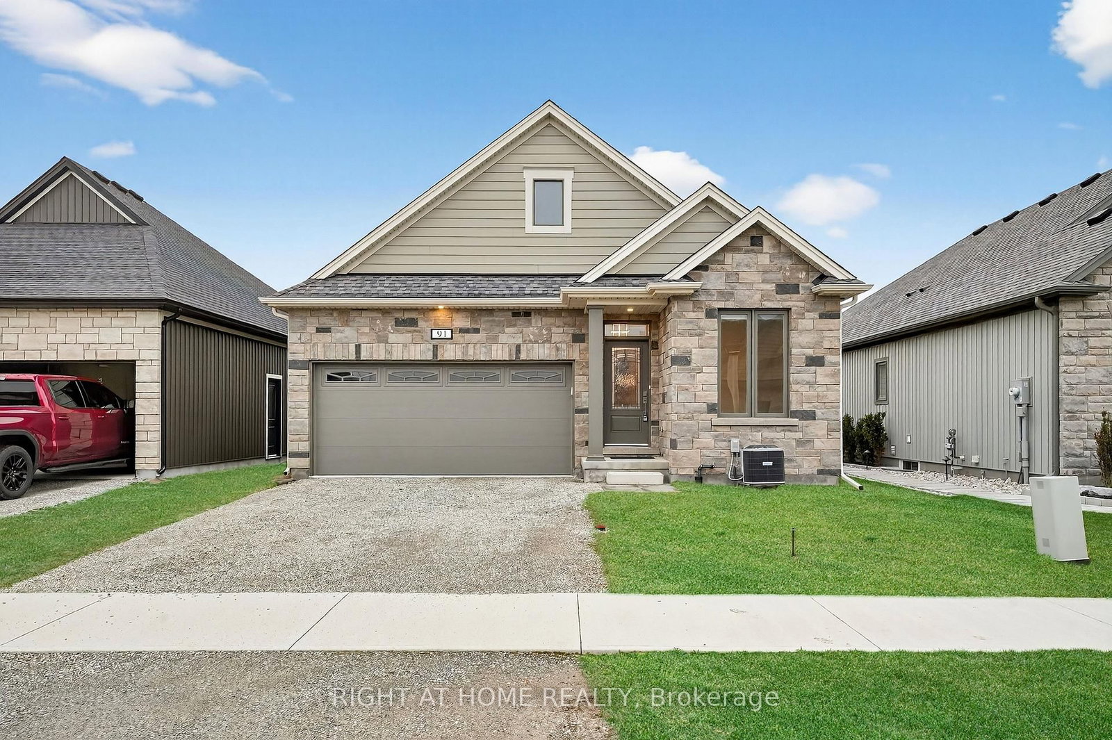 Welcome to 91 Homestead Drive, a beautifully crafted, newly built bungalow nestled in the heart of Virgil, one of Niagara-on-the-Lake's most charming communities. The Bungalow on 91 Homestead Drive has 2 bedrooms, 3 bathrooms, and is located on a 105 x 41.9 ft lot in the community of Virgil . This new builder's home has had approximately $100k in builder upgrades. Ideally situated just minutes from renowned wineries, exceptional dining, golf courses, and boutique shopping. Designed for seamless living, the open-concept main floor welcomes you with a large great room with fireplace and bright and modern kitchen complete with large island and contemporary light fixtures. There is also a spacious primary suite complete with a walk-in closet and private ensuite, a second bedroom with a full bath nearby, and a bright front-facing den-perfect for a home office. Engineered hardwood flooring flows throughout and convenient main-floor laundry. The basement extends the living space with a third bedroom, full bathroom, a cozy family room with another gas fireplace, and lots of storage. Step outside to a beautifully finished composite deck-ideal for relaxing or entertaining. An attached two-car garage and private double driveway complete this exceptional property. This home is a perfect blend of modern finishes, functional design, and an unbeatable location-ready to welcome you home!