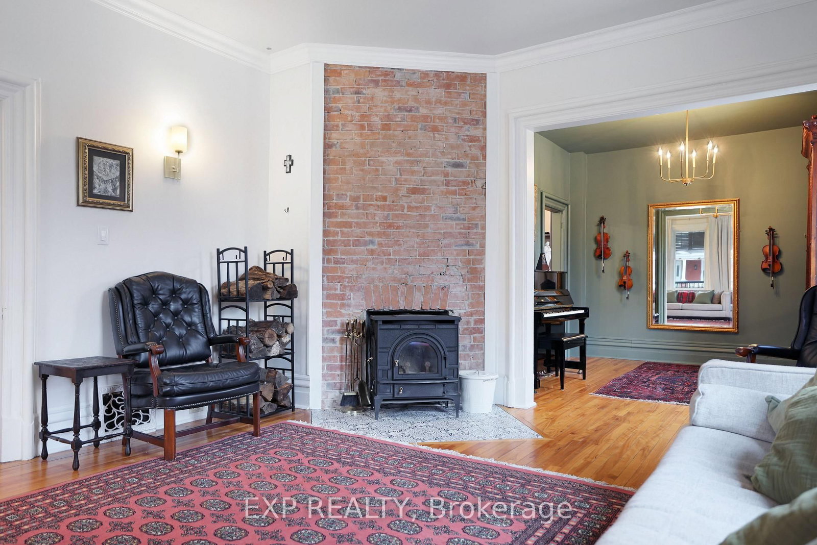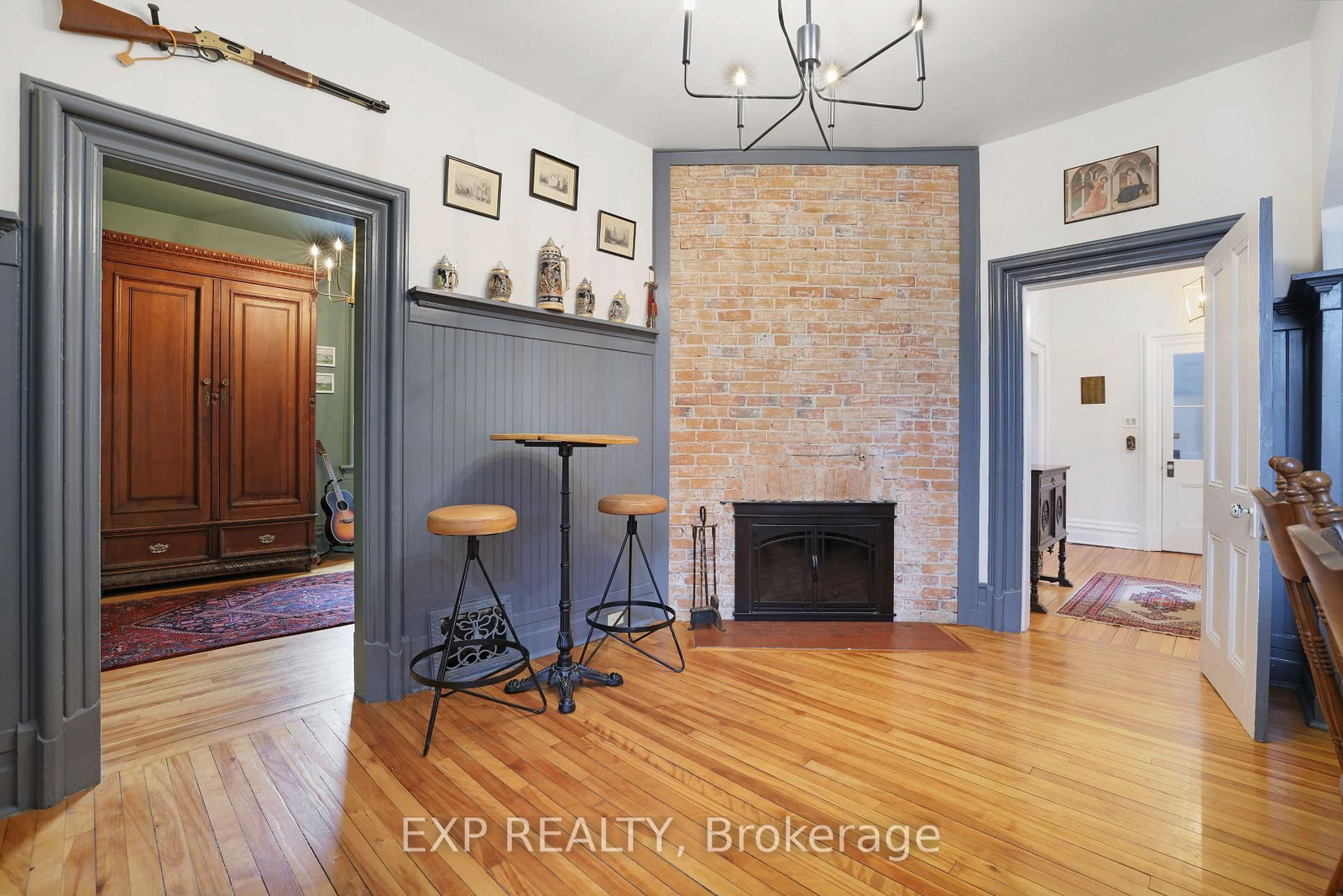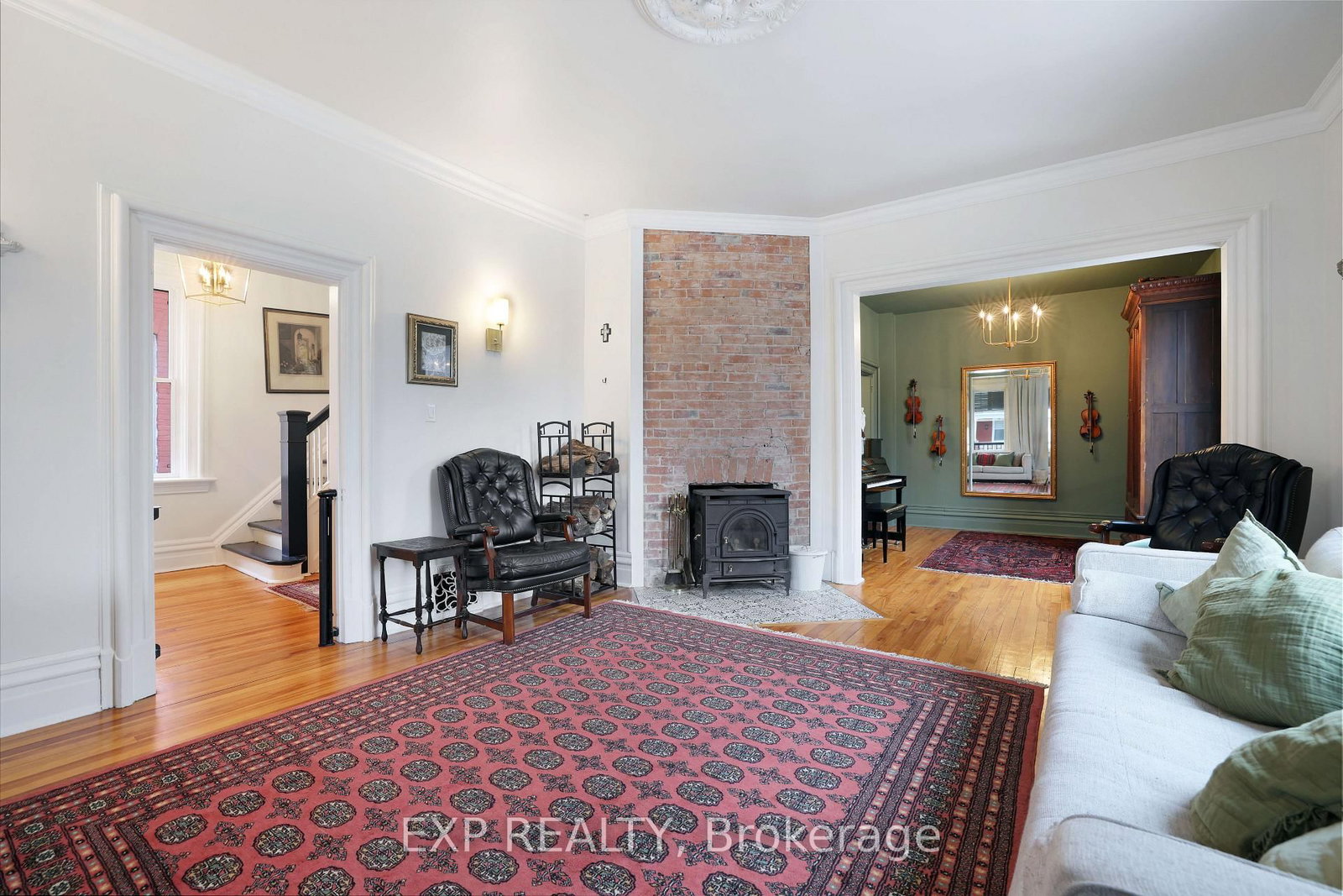 Step into timeless character and thoughtful design in this beautifully updated century home, ideally located in the heart of Renfrew - just a short walk to shops, restaurants, cafés, and local amenities. The 2-Storey on 128 RENFREW Avenue E has 4 bedrooms, 2 bathrooms, and is located on a 183 x 132 ft lot in the community of Renfrew . From the moment you arrive, the inviting front veranda and charming curb appeal set the tone. Inside, a welcoming vestibule leads to a classic foyer with rich hardwood floors and a graceful staircase. The main level unfolds with warmth and distinction - featuring a beautifully appointed living room with soaring ceilings, exposed brick, and a cozy wood-burning airtight stove, complemented by an inviting den or music room just beyond. At the centre of the home, the dining room offers its own exposed brick feature wall and traditional wood-burning fireplace, creating an atmosphere reminiscent of old-world European charm. The fully renovated kitchen has been thoughtfully reimagined with custom cabinetry, stainless steel appliances, and an oversized gas range, filled with natural light from the west-facing glass door-perfectly blending function with style. Upstairs, you'll find a peaceful reading nook, multiple well-appointed bedrooms, and a truly unique library-style media room complete with floor-to-ceiling shelving and ladder-an unforgettable space often referred to as the "Harry Potter room." The primary suite features a beautifully renovated 3-piece ensuite with Italian-style shower, while the main bath offers a spacious 5-piece layout. Elegant brass fixtures throughout the home provide a cohesive and refined finish.The backyard is equally inviting, with a private deck, attractive storage shed, and extended driveway offering parking for two at the rear. A rare opportunity to own a home where historic charm meets modern comfort-crafted with care, styled with intention, and located in one of Renfrew's most walkable neighbourhoods.