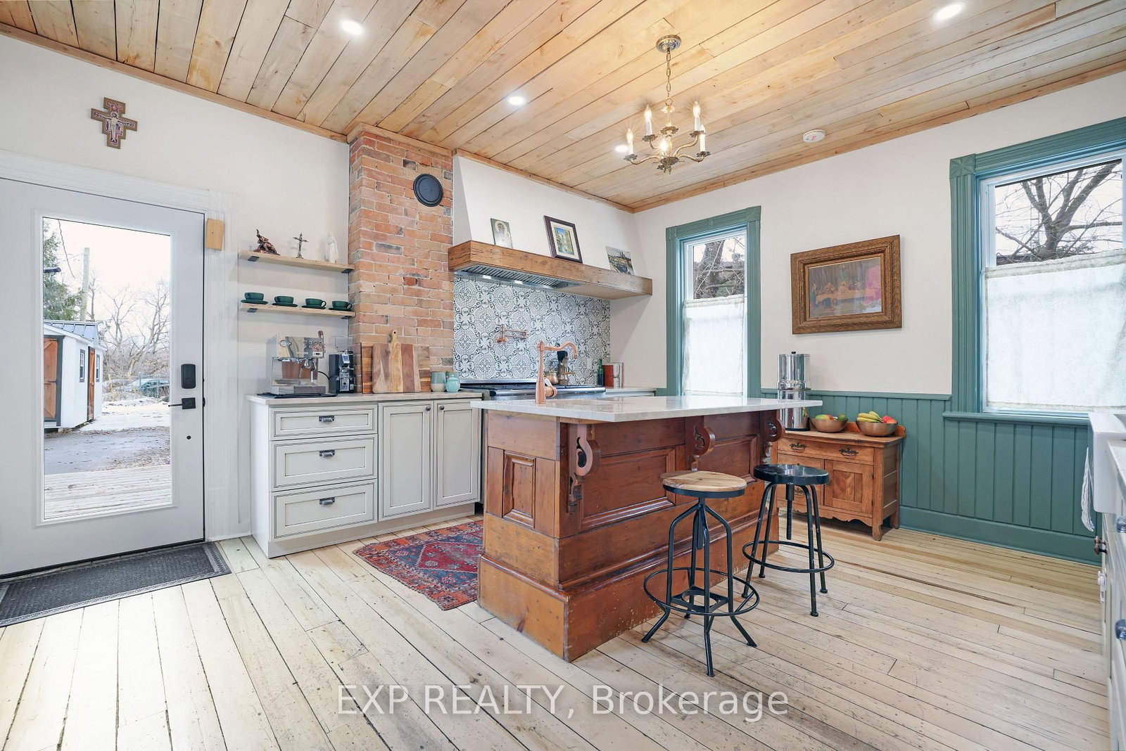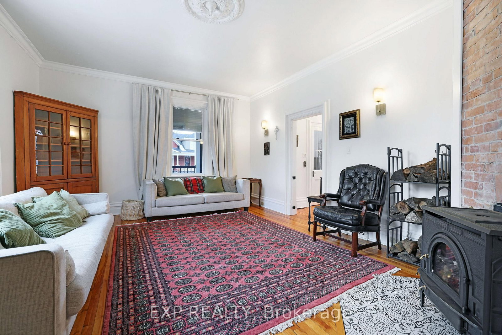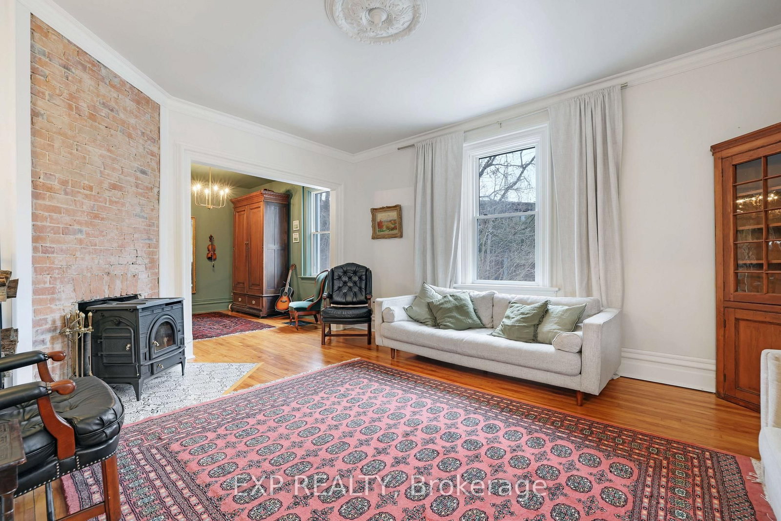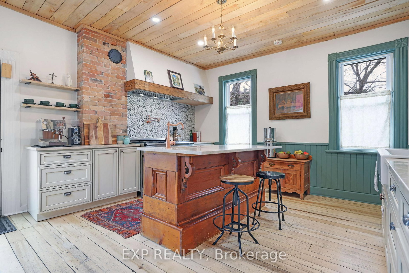 Step into timeless character and thoughtful design in this beautifully updated century home, ideally located in the heart of Renfrew - just a short walk to shops, restaurants, cafés, and local amenities. The 2-Storey on 128 RENFREW Avenue E has 4 bedrooms, 2 bathrooms, and is located on a 183 x 132 ft lot in the community of Renfrew . From the moment you arrive, the inviting front veranda and charming curb appeal set the tone. Inside, a welcoming vestibule leads to a classic foyer with rich hardwood floors and a graceful staircase. The main level unfolds with warmth and distinction - featuring a beautifully appointed living room with soaring ceilings, exposed brick, and a cozy wood-burning airtight stove, complemented by an inviting den or music room just beyond. At the centre of the home, the dining room offers its own exposed brick feature wall and traditional wood-burning fireplace, creating an atmosphere reminiscent of old-world European charm. The fully renovated kitchen has been thoughtfully reimagined with custom cabinetry, stainless steel appliances, and an oversized gas range, filled with natural light from the west-facing glass door-perfectly blending function with style. Upstairs, you'll find a peaceful reading nook, multiple well-appointed bedrooms, and a truly unique library-style media room complete with floor-to-ceiling shelving and ladder-an unforgettable space often referred to as the "Harry Potter room." The primary suite features a beautifully renovated 3-piece ensuite with Italian-style shower, while the main bath offers a spacious 5-piece layout. Elegant brass fixtures throughout the home provide a cohesive and refined finish.The backyard is equally inviting, with a private deck, attractive storage shed, and extended driveway offering parking for two at the rear. A rare opportunity to own a home where historic charm meets modern comfort-crafted with care, styled with intention, and located in one of Renfrew's most walkable neighbourhoods.