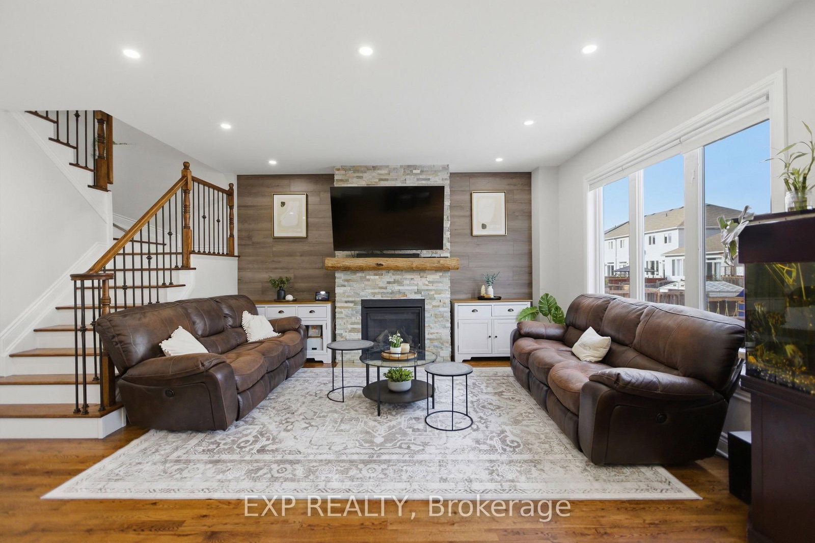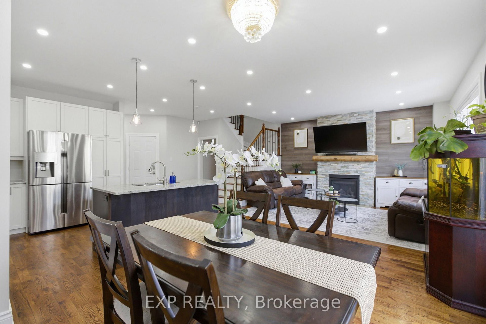 Beautifully maintained two-storey home in the desirable Village Creek community, just minutes to Highway 417 and the town of Arnprior along the Ottawa River. The 2-Storey on 162 Bert Hall Street has 4 bedrooms, 3 bathrooms, and is located on a 111.71 x 35.99 ft lot in the community of Arnprior . This upgraded 4-bedroom residence features a welcoming interlock patio leading to a bright foyer with ceramic flooring and an open-concept main level. The kitchen offers stainless steel appliances, a functional island with seating, and flows seamlessly into the dining area with patio doors to a 12' x 6' rear deck. The living room is highlighted by a stunning stone-faced gas fireplace with wood accents. Hardwood flooring extends throughout the main and second levels, including the staircase with elegant iron railings. Upstairs, you'll find three spacious secondary bedrooms, a full bathroom, convenient laundry, and a generous primary suite complete with ensuite bath. The finished lower level boasts a large recreation room with ample space for both relaxation and exercise. Located in a sought-after family-friendly neighbourhood close to schools, parks, churches, hospital, library, community centre, shopping, skiing, golf, and nearby lakes.