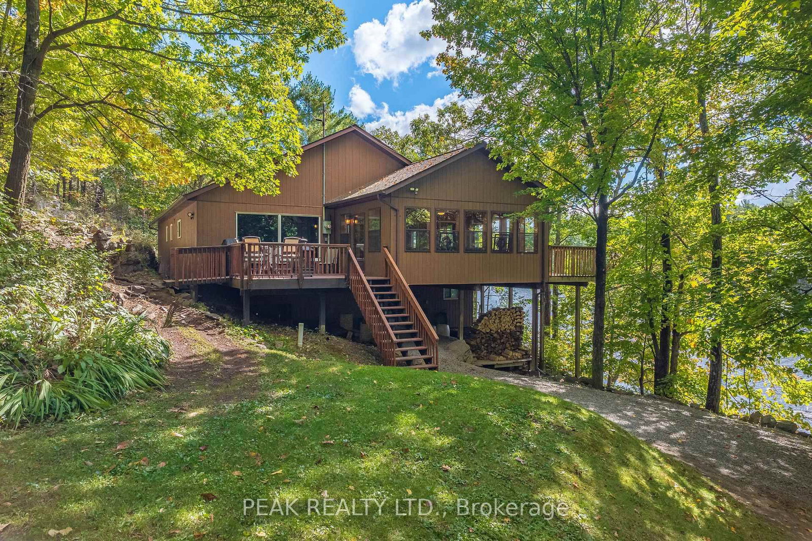 Boat Access - Nestled along the Severn River sits this stunning 1,712 sq ft of above grade finished area, 3-bedroom + loft, 2-bathroom all season cottage. The Bungalow on 49 Severn River SR 405 null has 3 bedrooms, 2 bathrooms, and is located on a 263 x 220 ft loton .50-1.99 acres in the community of Wood (Muskoka Lakes) . Just minutes by boat from Severn Falls, with a modern septic system, year round electricity and water supply. The property features 220ft of waterfront including a large dock with deep-water swimming, and a sandy beach area ideal for those warm summer days. Enjoy the attached raised deck or 3 season room, where you can relax and take in elevated panoramic views of the river or watch the sunset over the water. The generous lot, spanning over an acre with Crown Land beyond, offers plenty of space for hiking, gardening, and outdoor activities with snowmobile trails for winter access. Inside, the cottage features an open-concept design with cathedral ceilings, stunning hardwood floors, natural wood finishes, stone countertops, expansive windows and wall-to-wall sliding glass doors. The primary bedroom features a convenient ensuite, and a walkout to the raised deck with stunning river views. The expansive bonus loft offers additional space for a fourth bedroom, hobby room, or creative escape. The 1,400 sq ft, lower level serves as a workshop, storage area, and garage for your ATVs and tools, providing all the space you need for your outdoor pursuits. This is a large cottage with a fit and finish that you can be proud to entertain your family and friends in. Whether you're enjoying the riverfront or unwinding indoors, this cottage is the perfect place to create lasting memories.