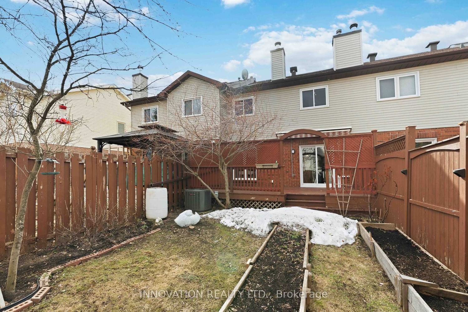 Welcome to 5 Harrington Court - a beautifully maintained 3-bedroom, 3-bathroom townhouse nestled on a quiet cul-de-sac in the highly desirable Kanata Lakes community. The 2-Storey on 5 Harrington Court has 3 bedrooms, 3 bathrooms, and is located on a 106.23 x 20.01 ft lot in the community of Kanata - Kanata Lakes/Heritage Hills . Surrounded by mature trees, this home offers a rare combination of privacy, comfort, and convenience. Step inside to a bright, open-concept living and dining area featuring hardwood floors and a cozy wood-burning fireplace - the perfect space to unwind or entertain. The crisp white kitchen provides ample cabinetry and direct access to a private backyard, ideal for summer gatherings or a peaceful morning coffee. A tastefully renovated powder room (2026) completes the main level. Freshly painted throughout in 2026, the home feels clean, modern, and move-in ready. Updates include new tile at the entrance (2026) and new carpeting on the stairs (2026). Upstairs, the spacious primary bedroom features its own private ensuite, complemented by two additional bedrooms and a full family bathroom. The finished basement expands your living space with a large recreation room featuring new laminate flooring (2026), along with laundry and generous storage. Outside, enjoy a fully fenced backyard with a large deck perfect for entertaining or simply relaxing outdoors. Located just steps from top-rated schools, parks, shopping, and transit, this is an exceptional opportunity for first-time buyers, downsizers, or investors.
