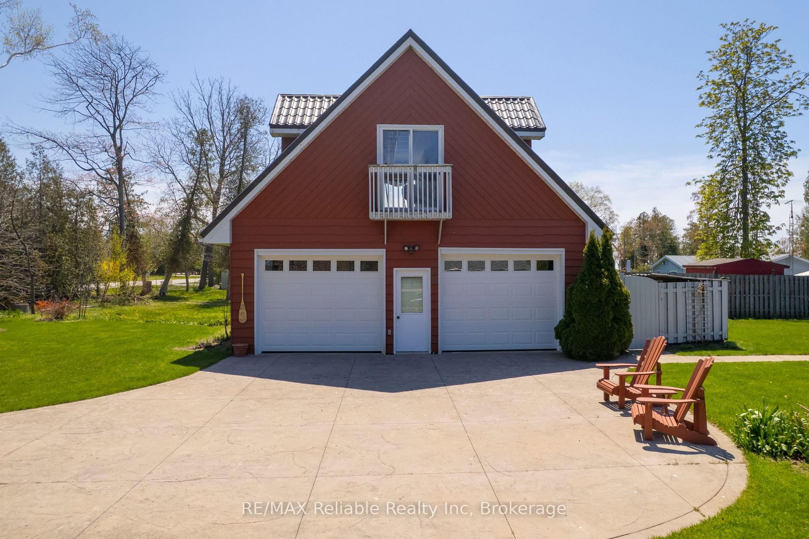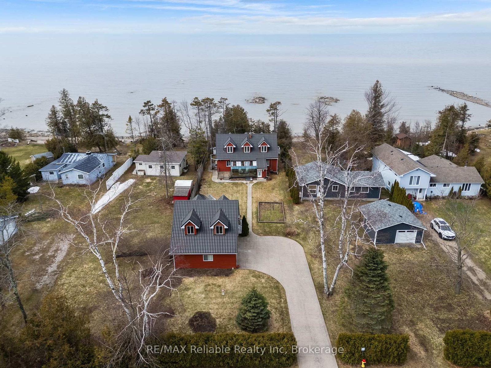 Experience Lake Huron living with a canvas of sunset views daily, and beach strolls just steps from your door. The 1 1/2 Storey on 185 Huron Road has 2 bedrooms, 2 bathrooms, and is located on a 193.59 x 58.06 ft lot in the community of Huron-Kinloss . This waterfront home in Point Clark features 2 bedrooms, a sunroom, and a host of additional amenities. The upper level offers a main suite, with a primary bedroom, bathroom, bar area, and a sitting room with dormer windows and two lakefront Juliette balconies-with amazing views. The main floor offers convenience with, a separate formal dining room, and sunroom. The open concept kitchen and living room overlook Lake Huron. Peace of mind is ensured with a durable steel roof and a full Generac Generator. The property also includes a detached two-car garage with a separate workshop space, plus stairs leading to a spacious upper-level living area, ideal for a studio or guest quarters. Located just moments south of the iconic Point Clark Historic Lighthouse, your dream home is ready for you. This is a great investment to offer a beautiful lakeside lifestyle!