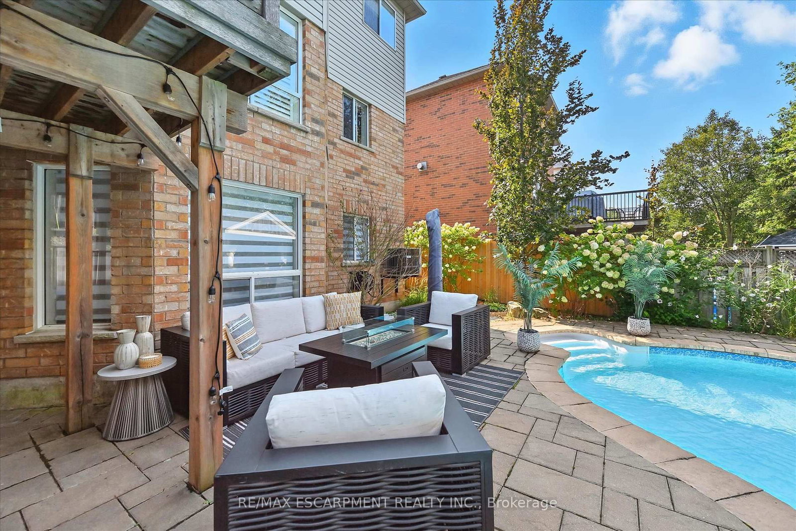 Welcome to 17 Fenwick Place, located in the highly desirable West Waterdown neighbourhood, close to parks, shopping, transit, and major commuter routes. The 2-Storey on 17 Fenwick Place has 4 bedrooms, 4 bathrooms, and is located on a 121.83 x 45.01 ft lot in the community of Waterdown . These gorgeous "site lines" enhance this beautifully updated home. Offering 2817 sq ft. 4+1 bedrooms and 2+2 bathrooms, combining style, comfort, and functionality throughout. Freshly painted and tastefully finished, the home features a stunning designer kitchen with Neolith Mont Blanc countertops and backsplash, complemented by custom black and walnut cabinetry. Elegant white oak hardwood flooring flows through the main and upper levels, while the finished basement features durable Pergo vinyl flooring. The home also offers modern, spa-inspired bathrooms, multiple walk-in closets, and a convenient laundry/mudroom. Additional highlights include dual shade window coverings, California shutters on the main and lower levels, and thoughtfully designed custom built-ins throughout. The bright, fully finished basement extends the living space with a cozy gas fireplace and a walkout to the backyard. Step outside to a private, fully fenced yard, an entertainer's dream featuring a heated saltwater pool and plenty of space to relax and unwind.