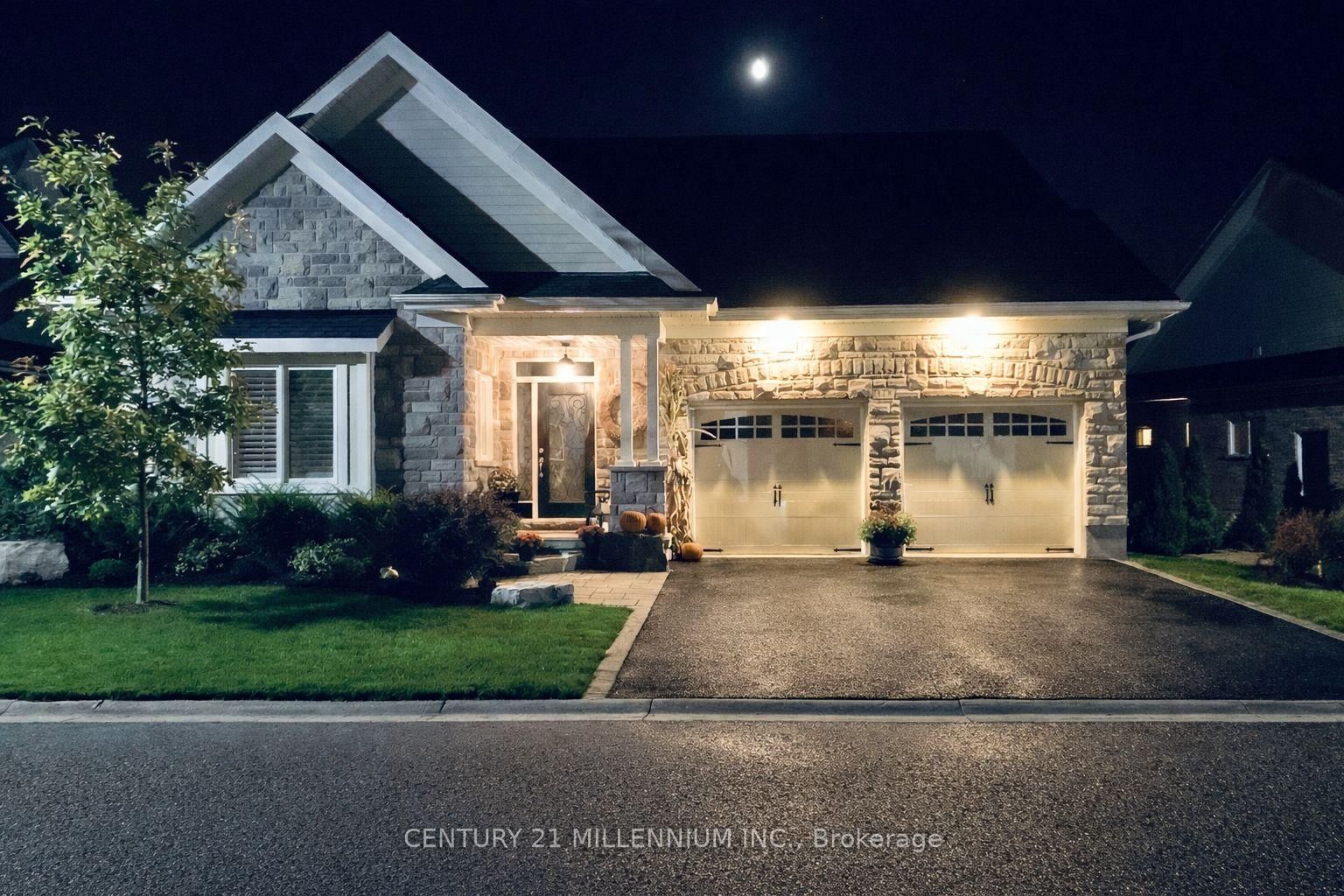 Welcome to this beautifully maintained 2+2 bedroom Strathmore Model bungalow located in the highly sought-after Watermark Adult Lifestyle Community in Mono and set on a premium ravine lot with breathtaking views over Monora Park. The Bungalow on 123-200 Kingfisher Drive has 2 bedrooms, 3 bathrooms, and is located in the community of Rural Mono . Offering approx. 1,983 sq ft on the main level plus a builder-finished walkout basement, this home delivers nearly 3,200 sq ft of finished living space. The main floor features 9-ft ceilings, wide-plank white oak engineered hardwood (2023), and elegant living and dining spaces with crown moulding and upgraded finishes. The stunning great room boasts vaulted ceilings, floor-to-ceiling windows with transoms, and a striking custom chandelier, creating a warm, resort-inspired feel. Two custom floor-to-ceiling gas fireplaces add both style and comfort. The upgraded kitchen offers oak cabinetry, granite counters, custom backsplash, and a functional layout. The primary suite features scenic park views and a spa-like 5-piece ensuite, while a second bedroom/office and 3-piece bath complete the main level. The bright walkout basement includes two additional bedrooms, a full bath, and a spacious open-concept living area with direct backyard access. Professionally landscaped grounds, featured in Living Spaces magazine, showcase a private backyard oasis with a water feature, stonework, and an extended deck with glass railing and retractable awning overlooking the ravine. Residents enjoy access to a private community centre with fitness, theatre, party room, and more, all steps to trails and just minutes to Orangeville amenities, Hockley Valley Resort, and Island Lake Conservation Area.