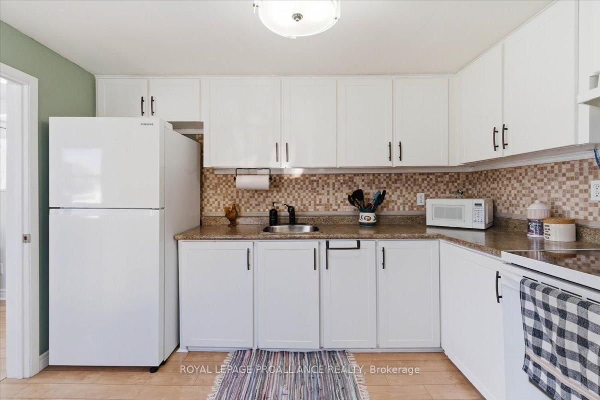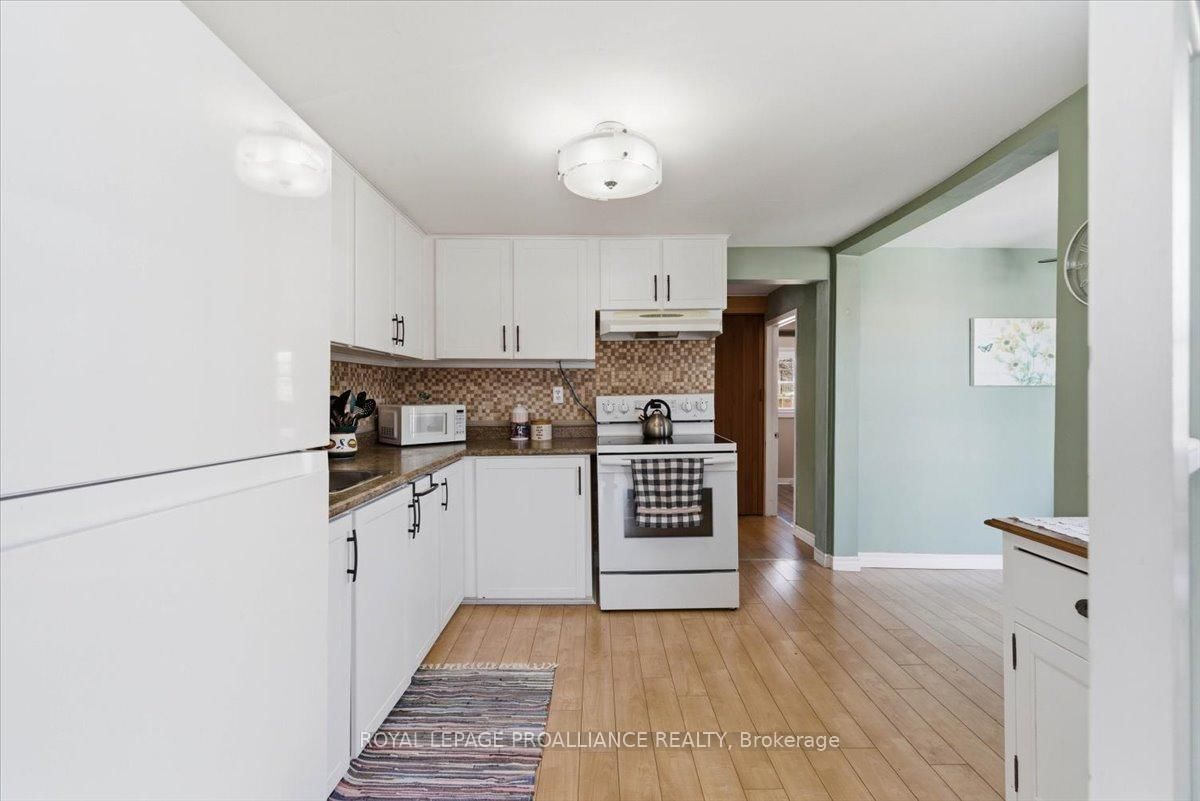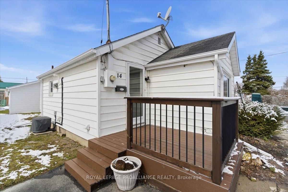 Lovely well cared for home located in a quiet neighbourhood. The Bungalow on 14 Ramsay Avenue has 2 bedrooms, 1 bathrooms, and is located on a 109.17 x 40 ft loton < .50 acres in the community of Trenton Ward . This is the perfect property for simple main floor living. Large living room with an abundance of light. Spacious kitchen with ample cupboards and storage. Cozy dining area with walk out to the private deck. Spacious bedrooms and updated 4 pc bath. Carpet free home, newer windows. Composite front porch. Detached shed has hydro and offers great storage, previously was a garage and door is under the siding if wished to be converted back. Great location, minutes from all amenities, dead end street, close to 401 and CFB Trenton. This charming move in ready home is the perfect starter home. Do not miss taking a peak at this one!