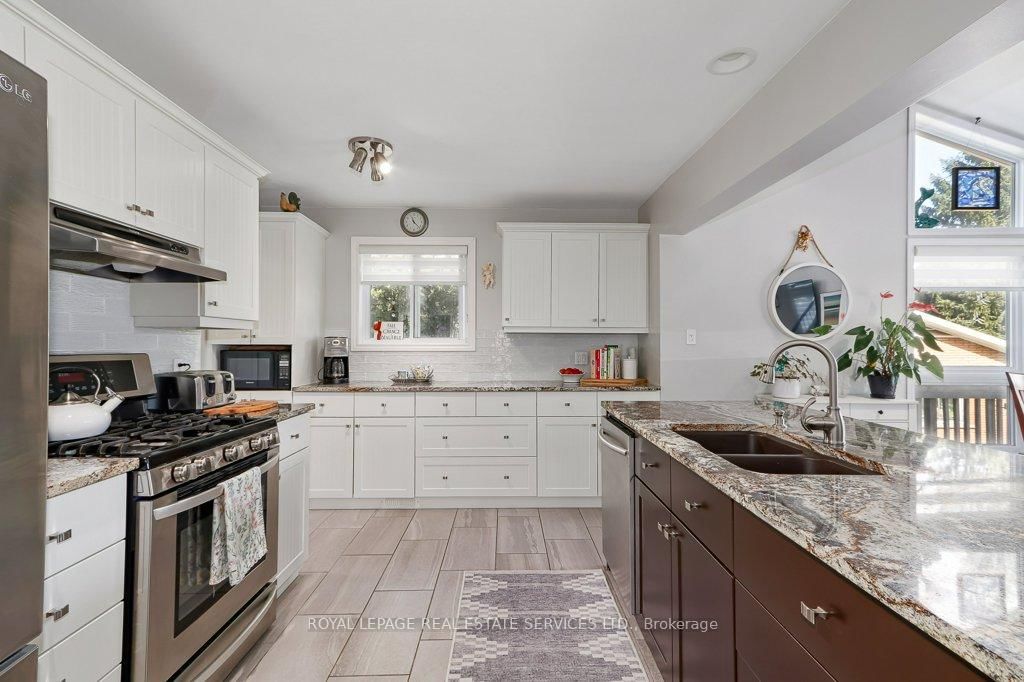 Meticulously Maintained & Fully Upgraded Gem Steps from Georgian Bay. The 2-Storey on 142 Lakeshore Road S has 3 bedrooms, 2 bathrooms, and is located on a 262 x 70.01 ft lot in the community of Meaford . Welcome to this beautifully updated 3-bedroom, 2-bathroom home situated on an oversized lot directly across from the stunning shores of Georgian Bay. Every inch of this home showcases quality workmanship and thoughtful upgrades, offering both comfort and functionality in a truly picturesque setting. Step inside to find a bright and inviting interior with an abundance of natural light, fresh paint, and new hardwood flooring throughout the main level and fresh carpet on the second floor. The updated kitchen is both stylish and practical, ideal for entertaining or quiet family meals and comes complete with updated cabinetry, granite countertops, and stainless steel appliances. Both fully renovated bathrooms reflect modern design and convenience. The home also features a fully finished basement, providing additional living space with in floor heating to ensure warmth and comfort in the winter months. Outdoors, enjoy the front deck complete with a new glass railing, peace of mind of the steel roof, mature perennial gardens, a thriving vegetable garden, and plenty of storage with three sheds and a detached two-car garage. With front and rear access to the property, the pull-through garage is a dream come true for anyone with a boat or trailer. Whether you're looking for a year-round residence or a weekend retreat, this home combines peaceful living with proximity to nature and the unbeatable views of Georgian Bay.Don't miss your opportunity to own this exceptional property where pride of ownership shines inside and out.