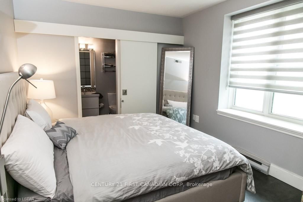 Executive Boutique Condo in the heart of London is now available for lease. The 1 Storey/Apt on 101-440 Wellington Street has 2 bedrooms, 1 bathrooms, and is located in the community of East F . This fully furnished, 2 bedroom suite with cheater en-suite, open concept living room/dining room and kitchen with Caesar stone countertops. Conveniently located within walking distance to everything you could need. Steps fromVictoria Park, Bud Gardens, Canada Life, restaurants, shopping and more. Easily accessible on transit and close to Victoria Hospital, University Hospital, Western University and Fanshawe College. This sought after unit is professionally renovated with modern influences. Large primary bedroom, stainless steel appliances, in unit laundry and heated bathroom floor bring this unit to the next level. Landscaped common area makes for a perfect place to relax at the end of the day. Secured entry and one surface parking spot are included with this unit. If you are an A+++ tenant looking for an all furnished lease don't pass this one by! Move in and enjoy!