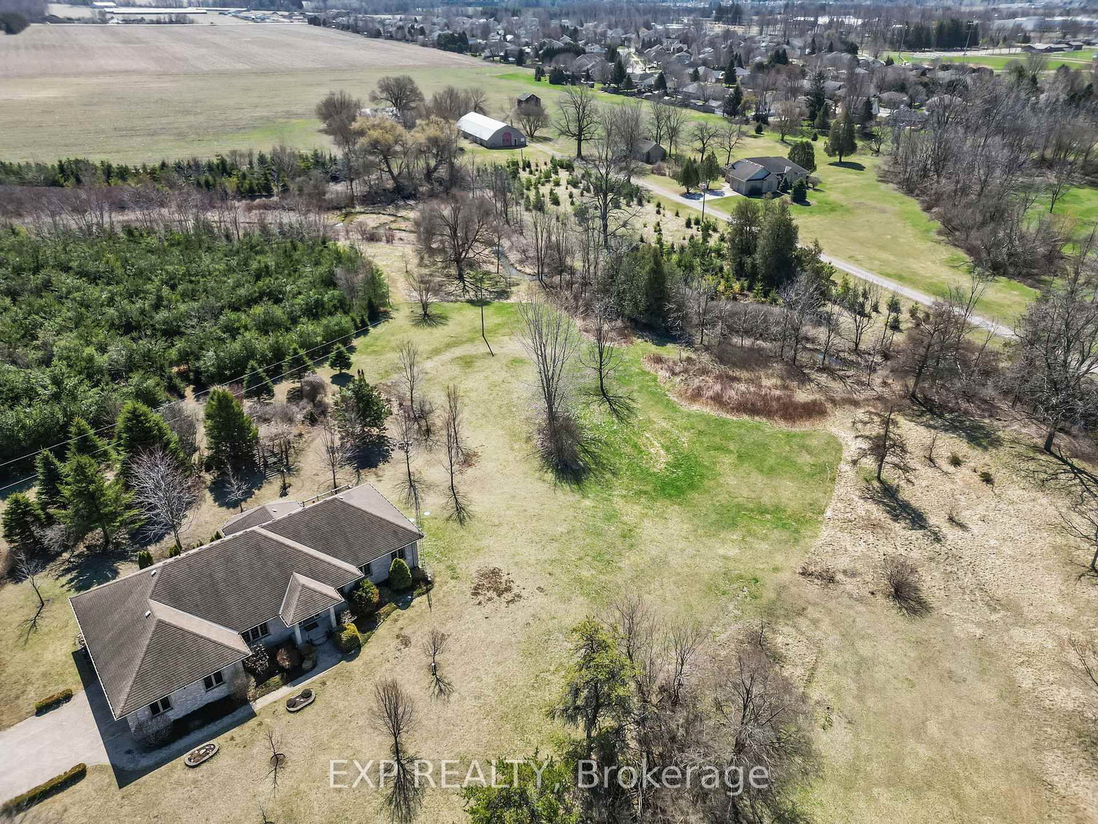 8371 Hickory Drive W, Strathroy-Caradoc offers a rare opportunity to own a peaceful country property with approximately 21. The Bungalow on 8371 Hickory Drive has 2 bedrooms, 3 bathrooms, and is located on a 908.63 x 936.87 ft loton 10-24.99 acres in the community of Rural Strathroy-Caradoc .645 acres of natural beauty, privacy, and lifestyle appeal, all just minutes to amenities and Highway 402. Set in Rural Strathroy-Caradoc, this all brick bungalow offers a sprawling main floor with a fully finished walk-out basement, and a warm, light-filled layout suited to both everyday living and family gatherings. What truly sets this property apart is the setting. Loved by the same family for years, it was chosen for its privacy, the stream running through the land, and the ability to enjoy country living without sacrificing convenience. Over 7,000 trees were thoughtfully planted across approximately 16.5 acres, including pine, spruce, maple, oak, walnut, sycamore, hickory, elm, cherry, and cedar, creating a beautiful naturalized backdrop with rolling land, wildlife, and long-term environmental value. A looping walking trail through much of the property offered a peaceful escape for recreation and reflection. Inside, the home is filled with natural light, with the upstairs living room standing out as a favourite space for reading, quiet conversation, and holiday traditions. Outdoor areas include a shaded walk-out patio, upper deck, gardens, and expansive grounds that have hosted family gatherings, campfires, and years of lasting memories. Updates include kitchen backsplash, flooring in the kitchen and adjoining room, rebuilt deck and rails, roof with 40-year shingles in 2010, updated upstairs powder room, wood flooring in the second bedroom, some newer windows, new entry light, and LED lighting in the upper hallway. Eligible for the Ontario Managed Forest Tax Incentive Program, offering potential tax savings for future owners who re-apply. Peaceful country living just 1 minute to Highway 402, 10-15 minutes to Mount Brydges, and 15-20 minutes to London.