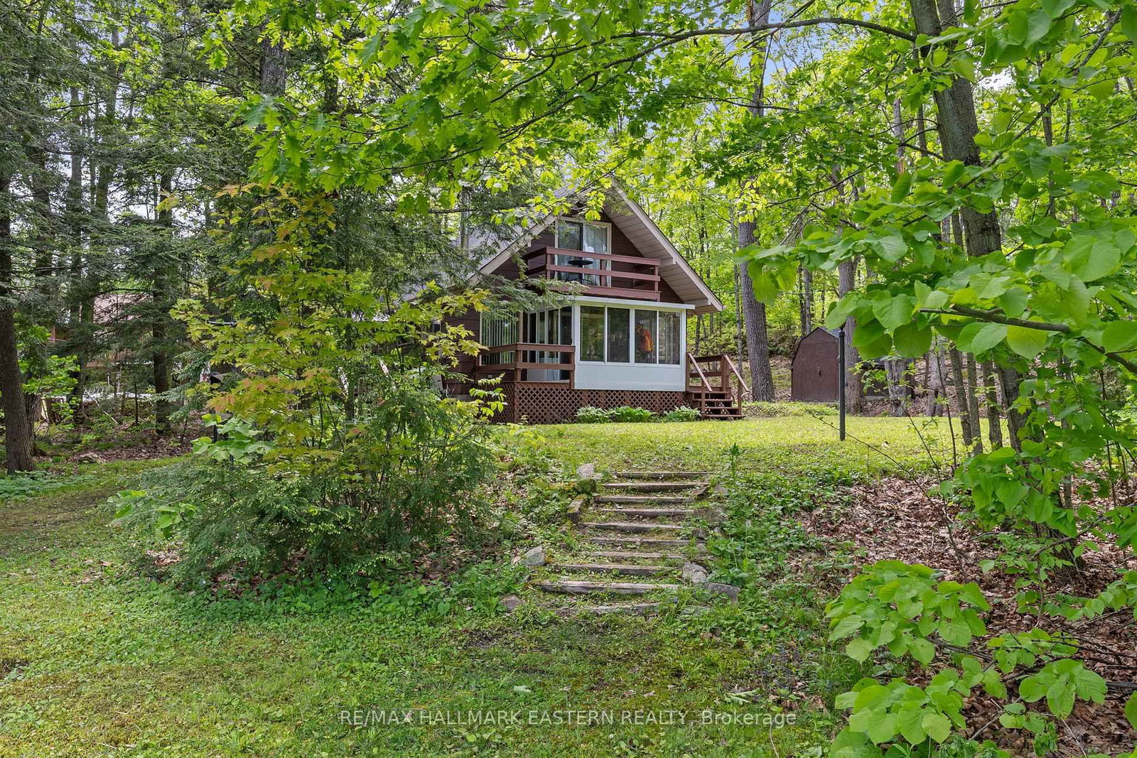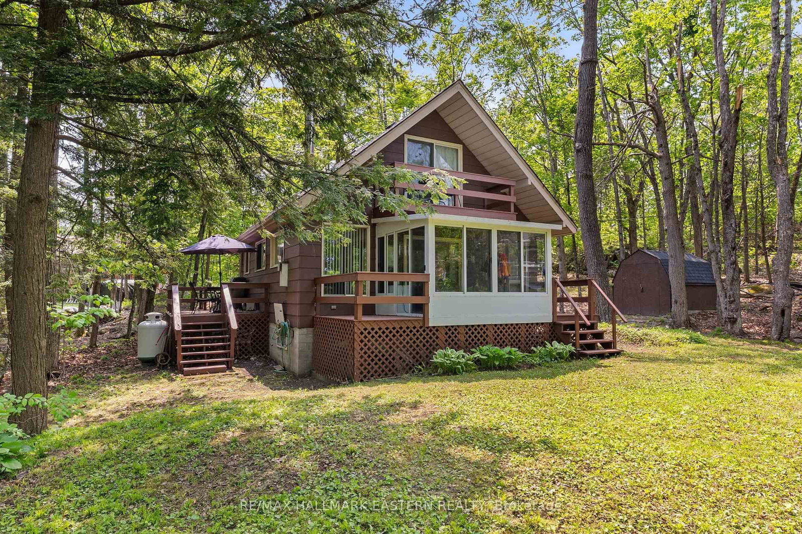 Welcome to a private lakeside escape on Big Bald Lake, part of the sought-after Trent-Severn Waterway, offering access to five lakes without the need for locking. The 1 1/2 Storey on 68 Irwin Drive has 3 bedrooms, 1 bathrooms, and is located on a 313 x 150 ft loton .50-1.99 acres in the community of Trent Lakes . Nestled on a beautifully treed lot with 150' of shoreline, this four-season chalet-style cottage delivers exceptional privacy and a gentle, level approach to the water's edge. Inside, you'll find a warm and inviting open-concept layout with 3 bedrooms and a full 4-piece bath. The kitchen, dining and living areas are accented with rich wood finishes and anchored by a cozy propane fireplace, perfect for year-round enjoyment. A bright glass sunroom captures peaceful lake views, while the spacious deck and dock invite effortless outdoor living. The lakeside primary bedroom features its own walkout balcony, an ideal spot to start your day with coffee overlooking the water. Thoughtful updates include a new water pump and UV system (2024) and a newly reshingled roof (2025), offering added peace of mind. Directly across the lake, 283 acres of privately owned managed forest provide a serene, untouched backdrop. For those seeking a bit of adventure, a nearby jumping rock awaits, while the crystal-clear turquoise waters of Sandy Lake Beach are just minutes away for exceptional swimming and paddling.