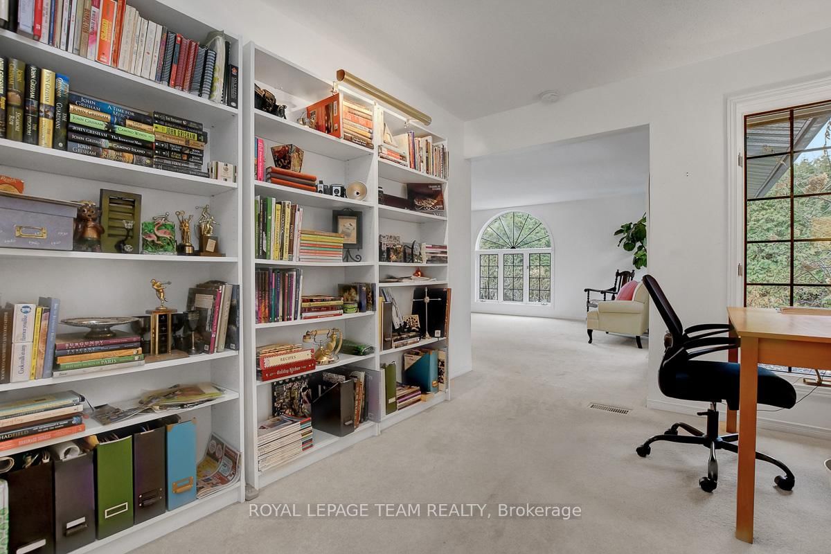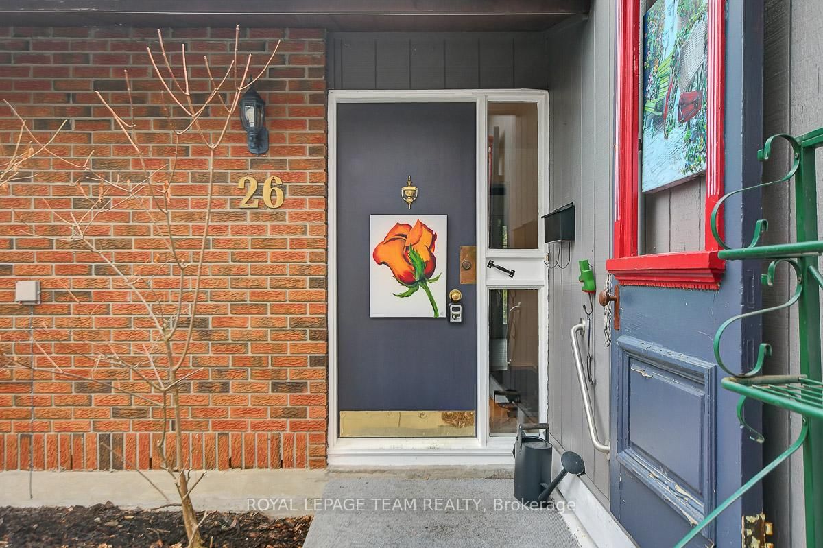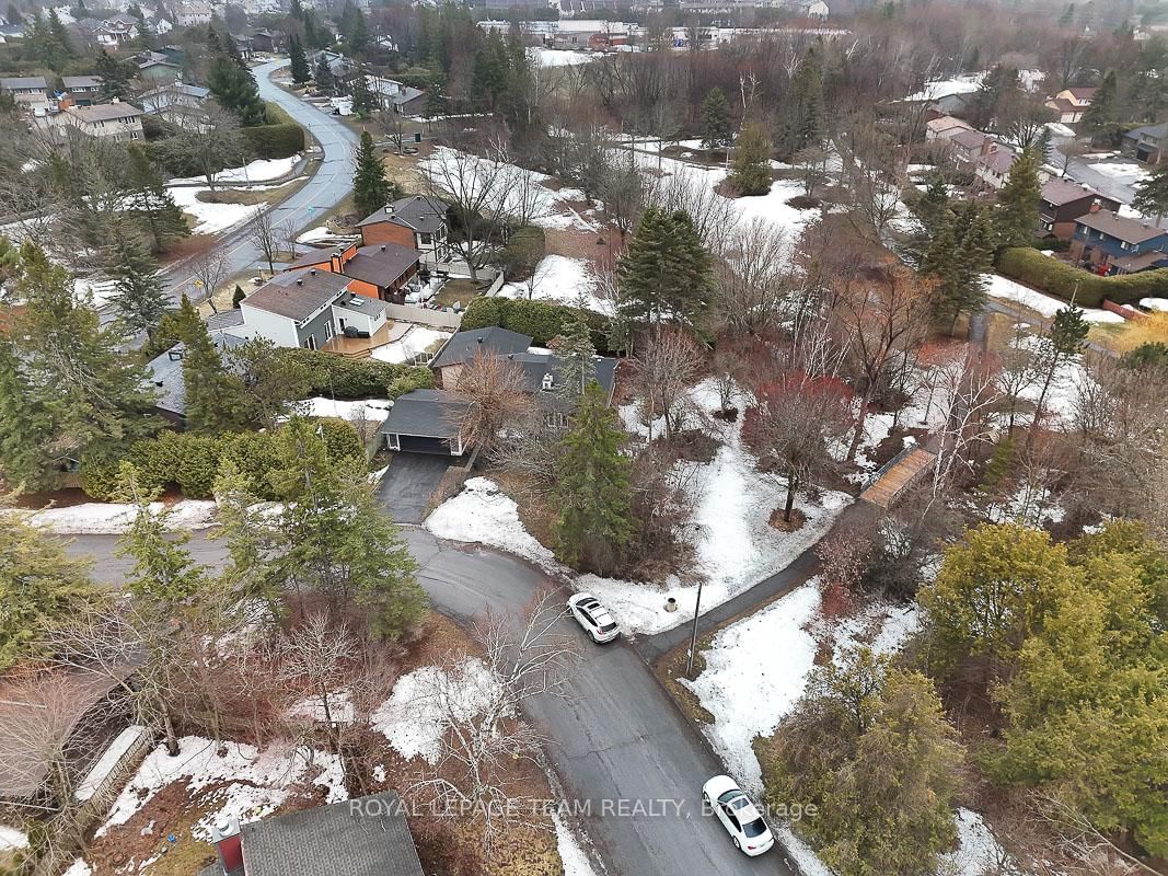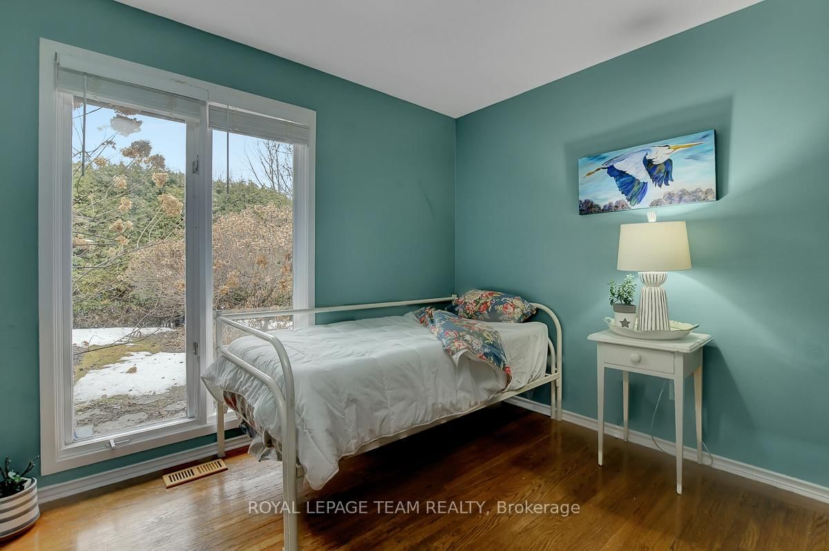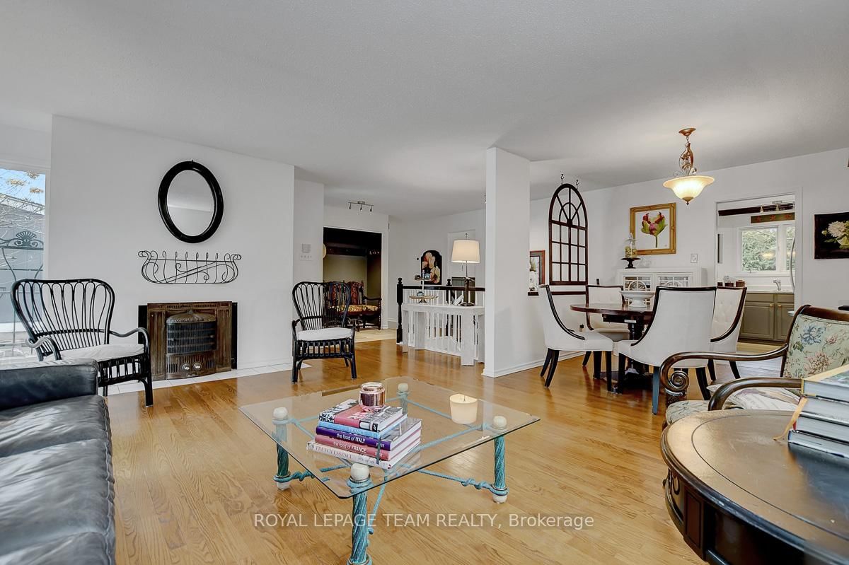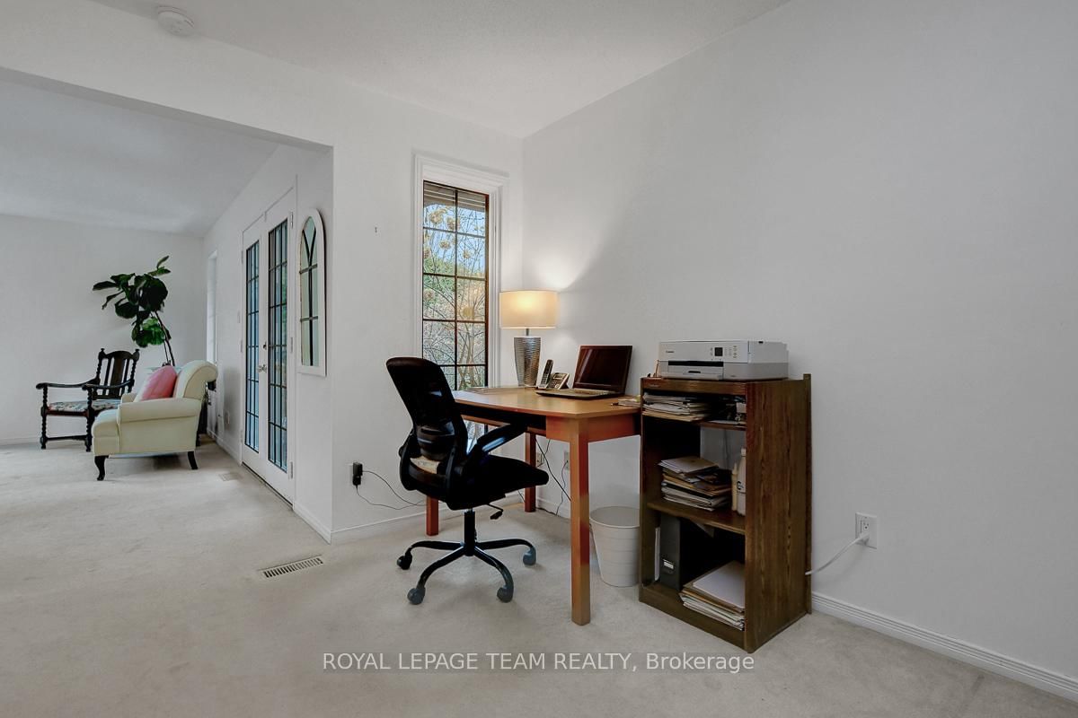 Rarely offered and quietly tucked within a canopy of mature trees, this Campeau-built bungalow sits on a private oversized pie shaped lot in a peaceful, nature-filled setting. The Bungalow on 26 Amundsen Crescent has 3 bedrooms, 2 bathrooms, and is located on a 110 x 52.98 ft lot in the community of Kanata - Katimavik . Classic red brick exterior framed by established gardens a tall foliage, creating strong curb appeal + double-car garage adds everyday convenience. Lovingly maintained inside and out, the home features a warm, organic feel that blends seamlessly with the surrounding landscape. Bright foyer with closet space opens into a sun-filled main living area. Large windows bring in abundant natural light, while a wood-burning fireplace creates a warm focal point. Formal dining area connects to the kitchen, allowing for easy flow when hosting. Kitchen offers great counter space & storage, with character-rich finishes - crown moulding millwork details, upgraded appliances and brand new flooring create a space that feels both functional and inviting. Generous eat-in area sits beside French patio doors leading to the backyard. Versatile den provides flexibility as a home office or secondary living space. Spacious primary suite, added as a custom expansion to the home, room is notably large, easily accommodating a California king bed a seating area, direct access to backyard plus an ensuite bath & large walk-in closet. Two additional bedrooms and a full bathroom complete the main level. Finished basement with flexible open layout suitable for recreation, hobbies or added living space. Backyard is a standout feature, offering exceptional privacy with mature trees, extensive plantings & patio area. A small creek runs behind the property, enhancing the peaceful atmosphere, while direct access beside the home leads to a network of walking paths & nearby park. Located in the established neighbourhood of Katimavik, home offers easy access to parks, schools and recreation. Mins from shopping, dining & services at Kanata Centrum, along with nearby trails, transit options, and convenient access to Hwy 417.