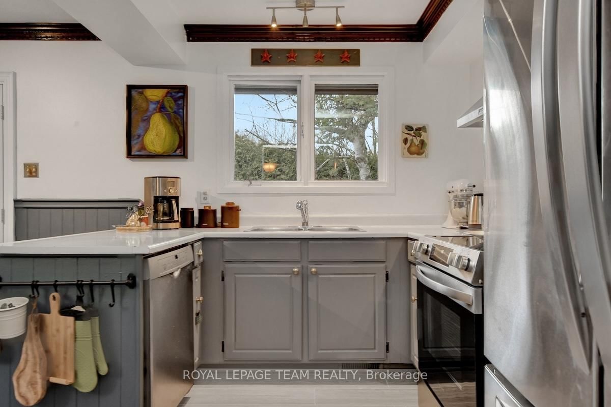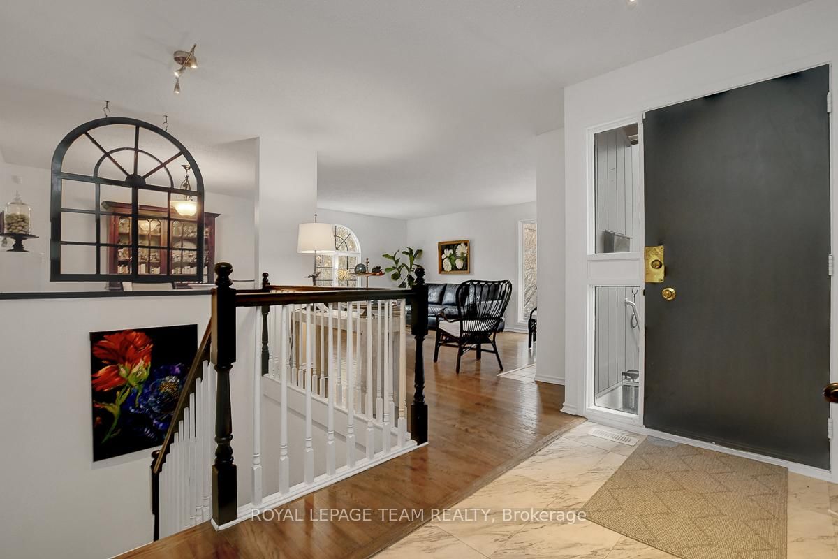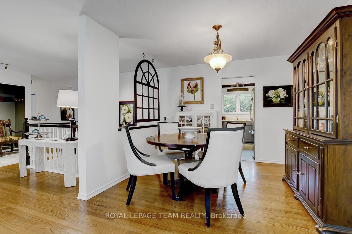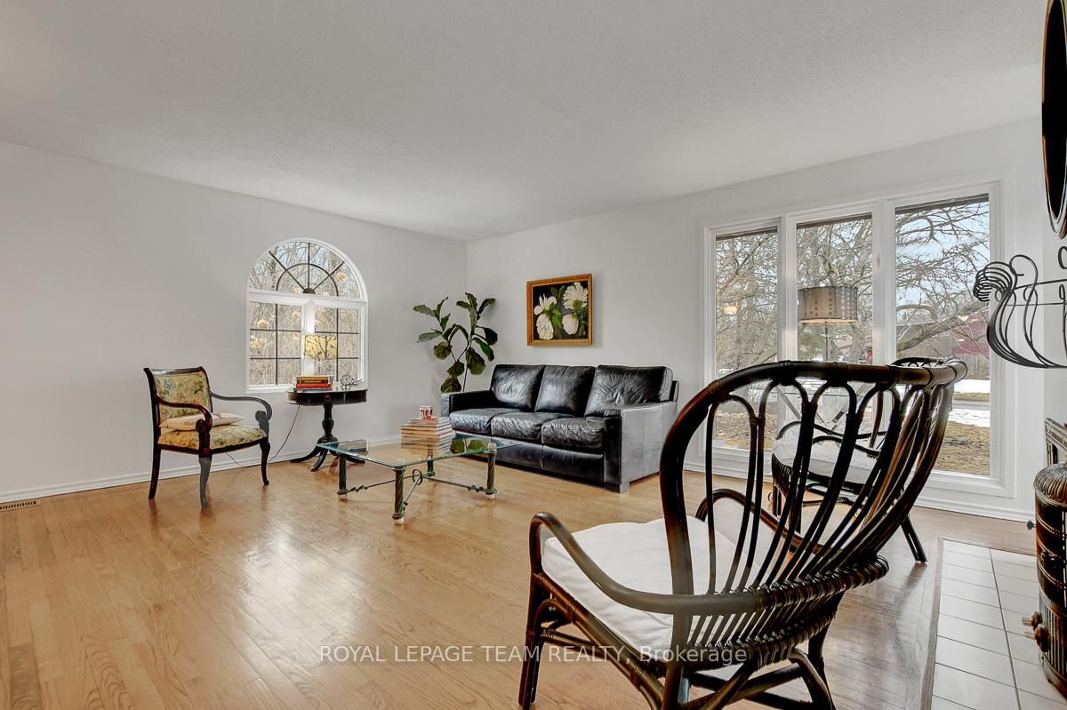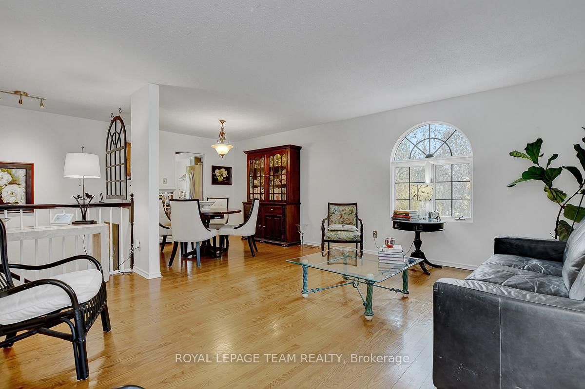 Rarely offered and quietly tucked within a canopy of mature trees, this Campeau-built bungalow sits on a private oversized pie shaped lot in a peaceful, nature-filled setting. The Bungalow on 26 Amundsen Crescent has 3 bedrooms, 2 bathrooms, and is located on a 110 x 52.98 ft lot in the community of Kanata - Katimavik . Classic red brick exterior framed by established gardens a tall foliage, creating strong curb appeal + double-car garage adds everyday convenience. Lovingly maintained inside and out, the home features a warm, organic feel that blends seamlessly with the surrounding landscape. Bright foyer with closet space opens into a sun-filled main living area. Large windows bring in abundant natural light, while a wood-burning fireplace creates a warm focal point. Formal dining area connects to the kitchen, allowing for easy flow when hosting. Kitchen offers great counter space & storage, with character-rich finishes - crown moulding millwork details, upgraded appliances and brand new flooring create a space that feels both functional and inviting. Generous eat-in area sits beside French patio doors leading to the backyard. Versatile den provides flexibility as a home office or secondary living space. Spacious primary suite, added as a custom expansion to the home, room is notably large, easily accommodating a California king bed a seating area, direct access to backyard plus an ensuite bath & large walk-in closet. Two additional bedrooms and a full bathroom complete the main level. Finished basement with flexible open layout suitable for recreation, hobbies or added living space. Backyard is a standout feature, offering exceptional privacy with mature trees, extensive plantings & patio area. A small creek runs behind the property, enhancing the peaceful atmosphere, while direct access beside the home leads to a network of walking paths & nearby park. Located in the established neighbourhood of Katimavik, home offers easy access to parks, schools and recreation. Mins from shopping, dining & services at Kanata Centrum, along with nearby trails, transit options, and convenient access to Hwy 417.