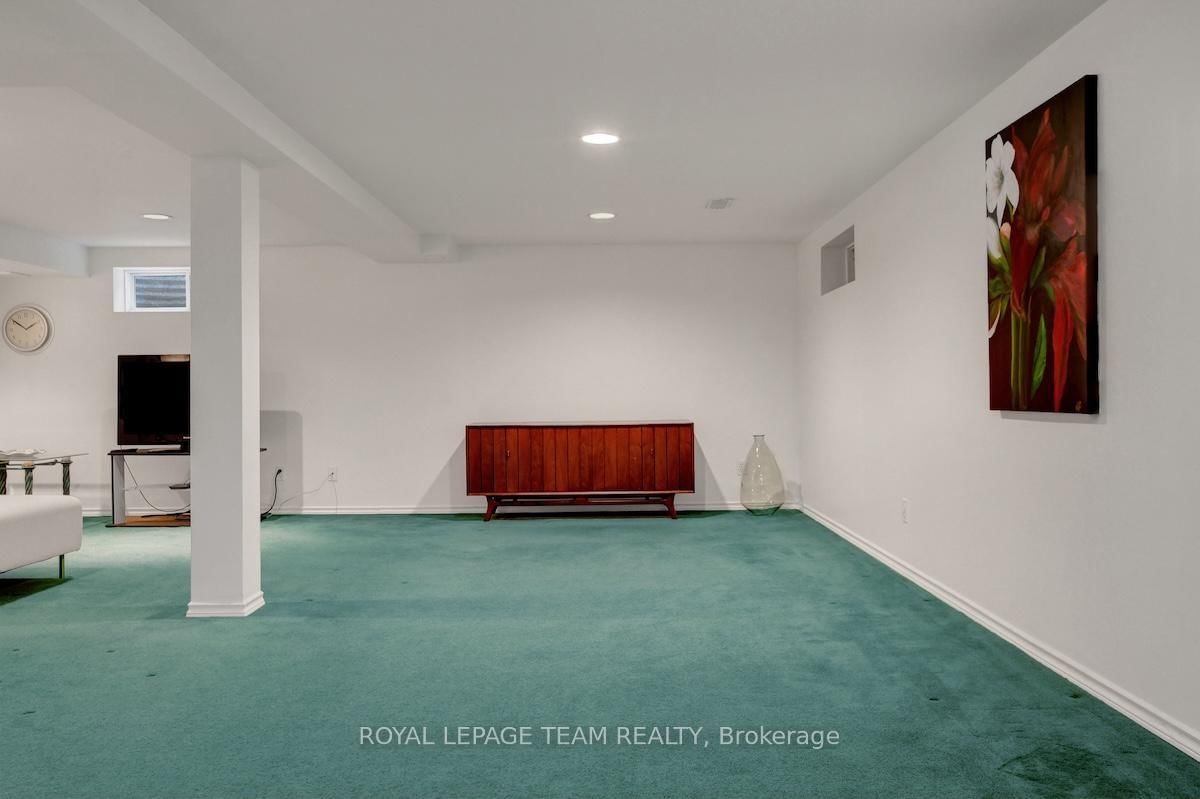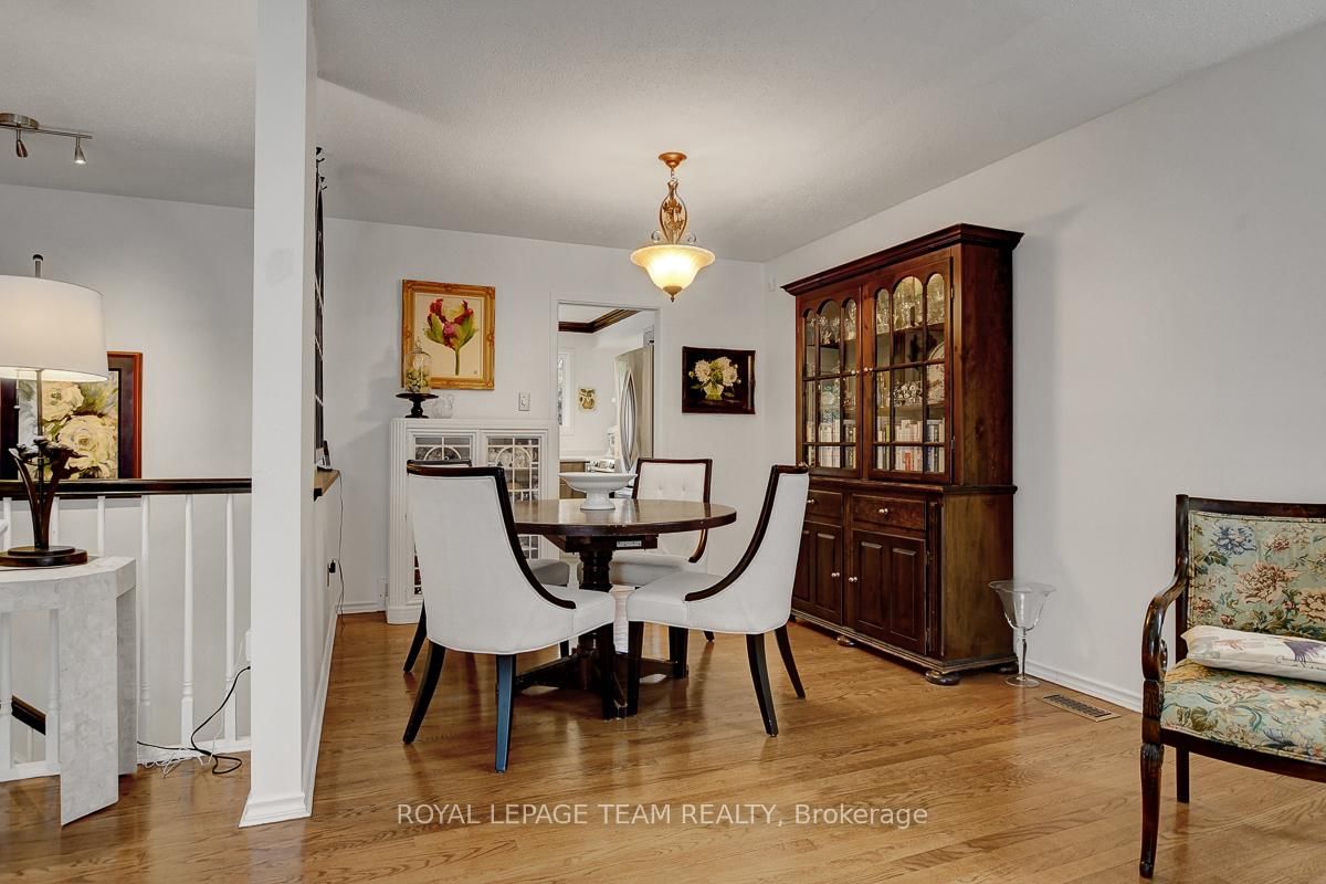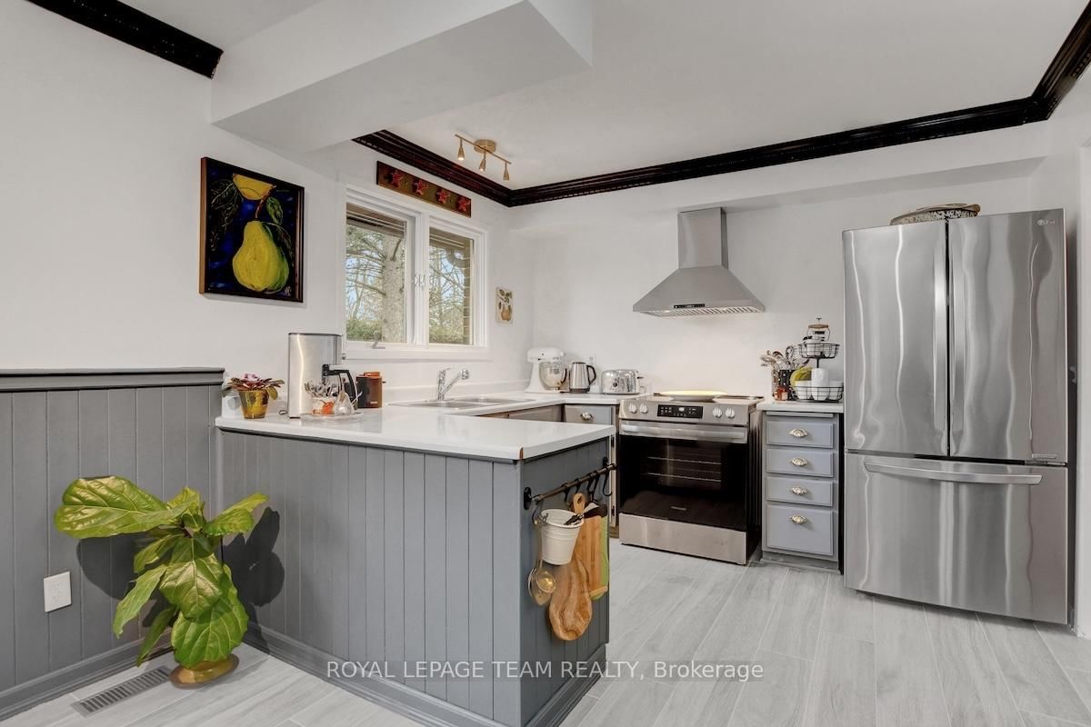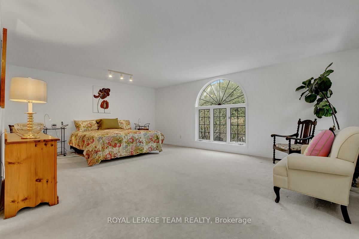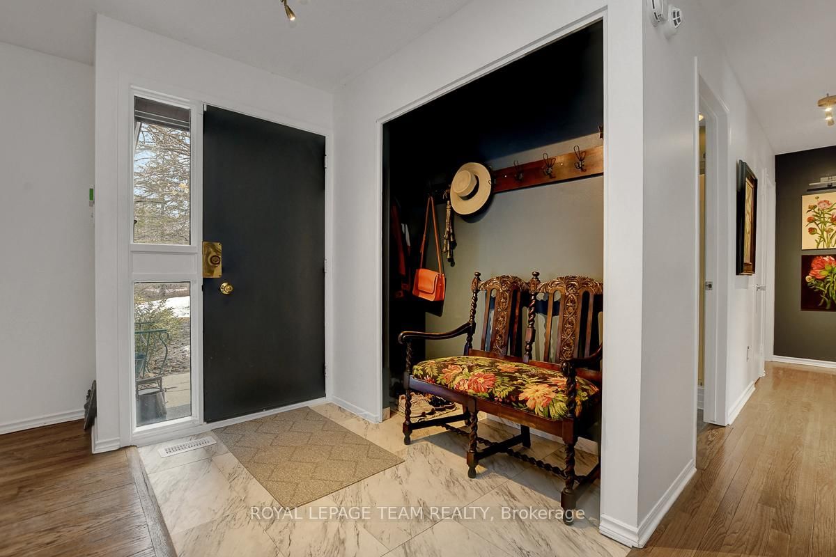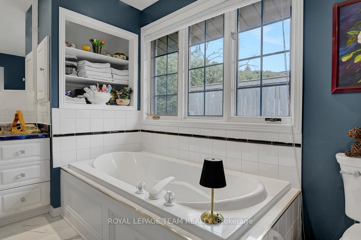 Rarely offered and quietly tucked within a canopy of mature trees, this Campeau-built bungalow sits on a private oversized pie shaped lot in a peaceful, nature-filled setting. The Bungalow on 26 Amundsen Crescent has 3 bedrooms, 2 bathrooms, and is located on a 110 x 52.98 ft lot in the community of Kanata - Katimavik . Classic red brick exterior framed by established gardens a tall foliage, creating strong curb appeal + double-car garage adds everyday convenience. Lovingly maintained inside and out, the home features a warm, organic feel that blends seamlessly with the surrounding landscape. Bright foyer with closet space opens into a sun-filled main living area. Large windows bring in abundant natural light, while a wood-burning fireplace creates a warm focal point. Formal dining area connects to the kitchen, allowing for easy flow when hosting. Kitchen offers great counter space & storage, with character-rich finishes - crown moulding millwork details, upgraded appliances and brand new flooring create a space that feels both functional and inviting. Generous eat-in area sits beside French patio doors leading to the backyard. Versatile den provides flexibility as a home office or secondary living space. Spacious primary suite, added as a custom expansion to the home, room is notably large, easily accommodating a California king bed a seating area, direct access to backyard plus an ensuite bath & large walk-in closet. Two additional bedrooms and a full bathroom complete the main level. Finished basement with flexible open layout suitable for recreation, hobbies or added living space. Backyard is a standout feature, offering exceptional privacy with mature trees, extensive plantings & patio area. A small creek runs behind the property, enhancing the peaceful atmosphere, while direct access beside the home leads to a network of walking paths & nearby park. Located in the established neighbourhood of Katimavik, home offers easy access to parks, schools and recreation. Mins from shopping, dining & services at Kanata Centrum, along with nearby trails, transit options, and convenient access to Hwy 417.