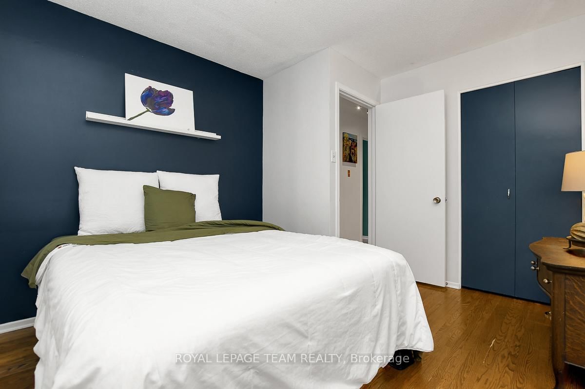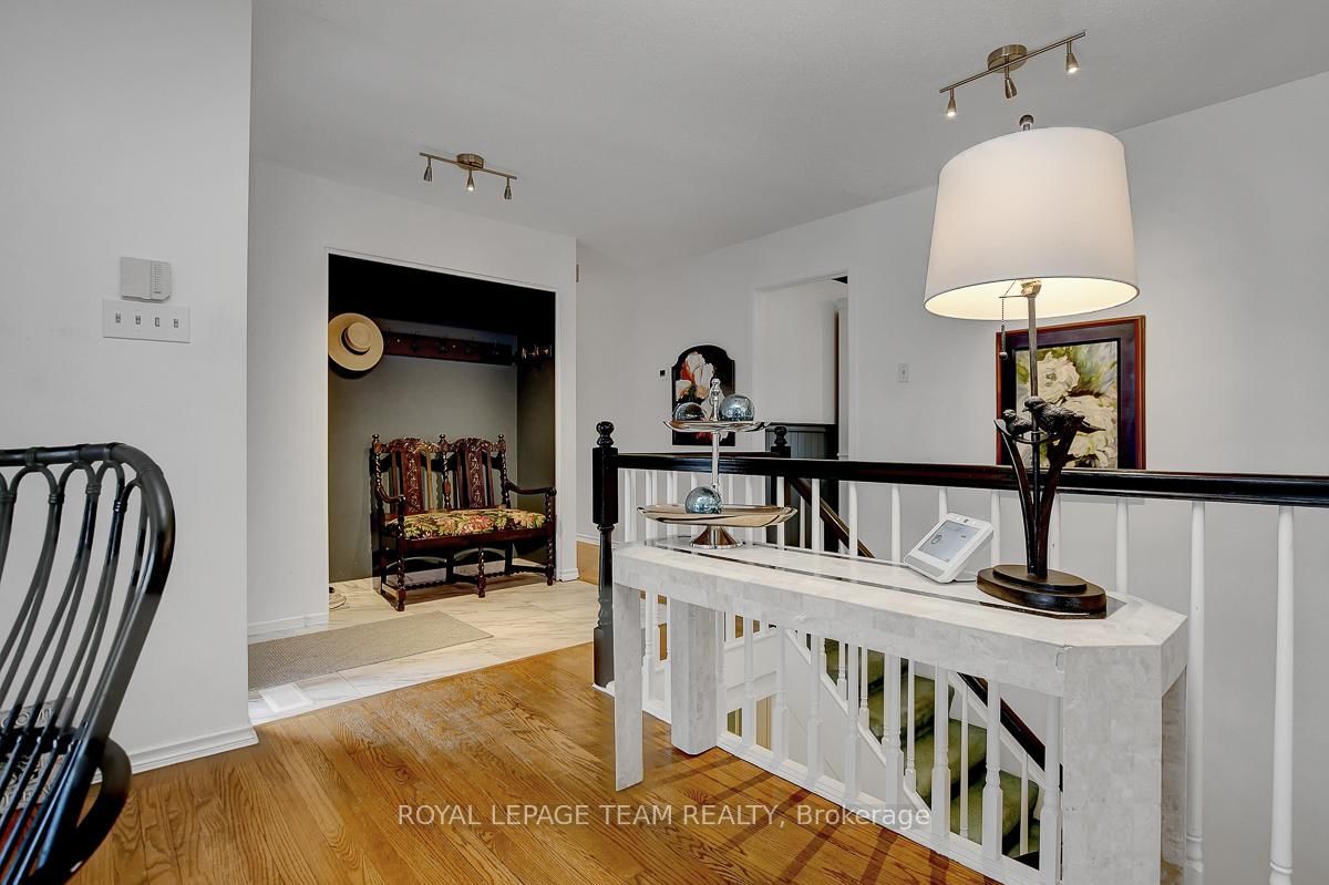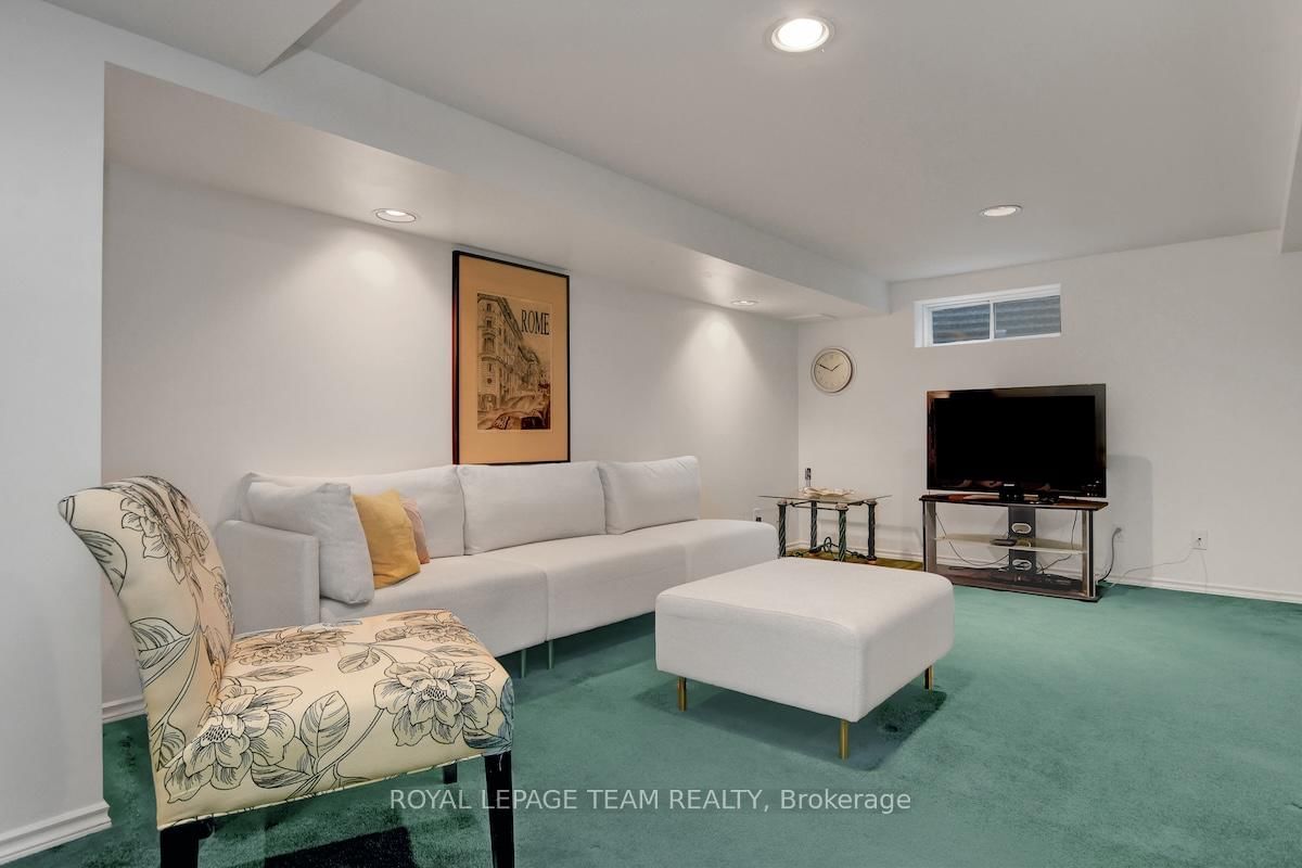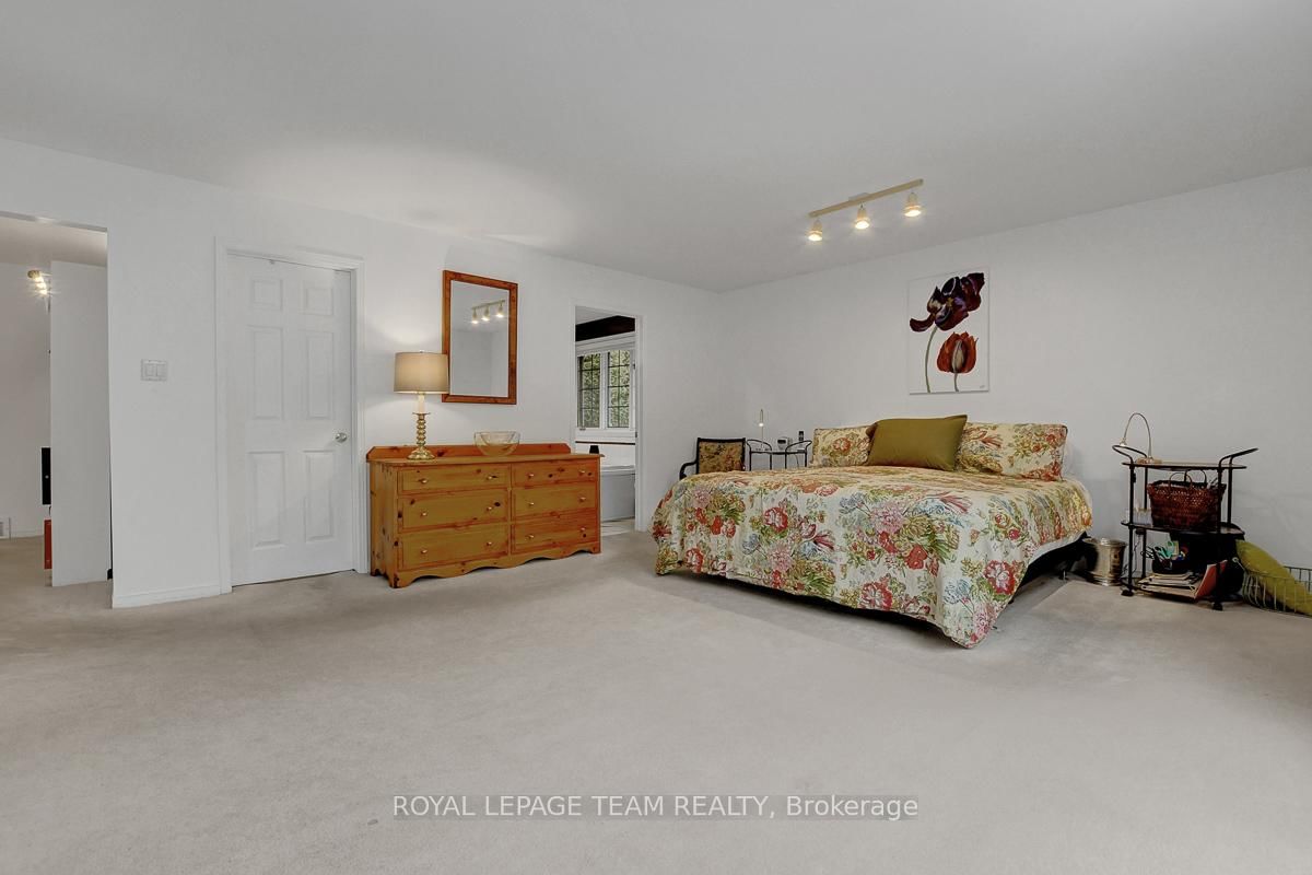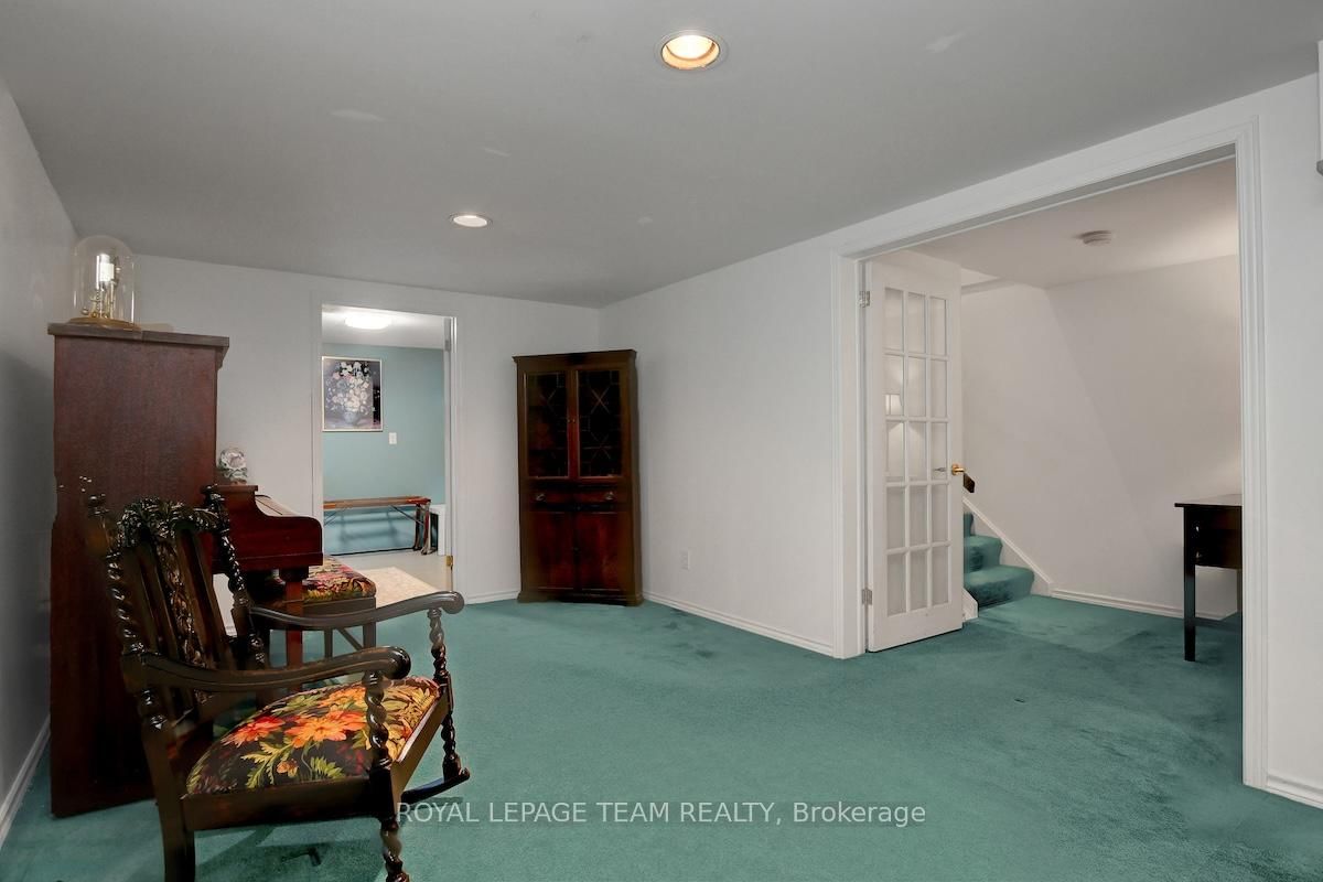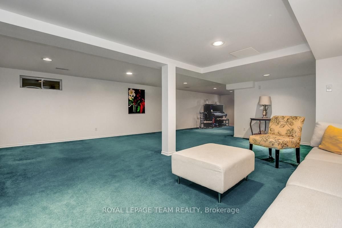 Rarely offered and quietly tucked within a canopy of mature trees, this Campeau-built bungalow sits on a private oversized pie shaped lot in a peaceful, nature-filled setting. The Bungalow on 26 Amundsen Crescent has 3 bedrooms, 2 bathrooms, and is located on a 110 x 52.98 ft lot in the community of Kanata - Katimavik . Classic red brick exterior framed by established gardens a tall foliage, creating strong curb appeal + double-car garage adds everyday convenience. Lovingly maintained inside and out, the home features a warm, organic feel that blends seamlessly with the surrounding landscape. Bright foyer with closet space opens into a sun-filled main living area. Large windows bring in abundant natural light, while a wood-burning fireplace creates a warm focal point. Formal dining area connects to the kitchen, allowing for easy flow when hosting. Kitchen offers great counter space & storage, with character-rich finishes - crown moulding millwork details, upgraded appliances and brand new flooring create a space that feels both functional and inviting. Generous eat-in area sits beside French patio doors leading to the backyard. Versatile den provides flexibility as a home office or secondary living space. Spacious primary suite, added as a custom expansion to the home, room is notably large, easily accommodating a California king bed a seating area, direct access to backyard plus an ensuite bath & large walk-in closet. Two additional bedrooms and a full bathroom complete the main level. Finished basement with flexible open layout suitable for recreation, hobbies or added living space. Backyard is a standout feature, offering exceptional privacy with mature trees, extensive plantings & patio area. A small creek runs behind the property, enhancing the peaceful atmosphere, while direct access beside the home leads to a network of walking paths & nearby park. Located in the established neighbourhood of Katimavik, home offers easy access to parks, schools and recreation. Mins from shopping, dining & services at Kanata Centrum, along with nearby trails, transit options, and convenient access to Hwy 417.
