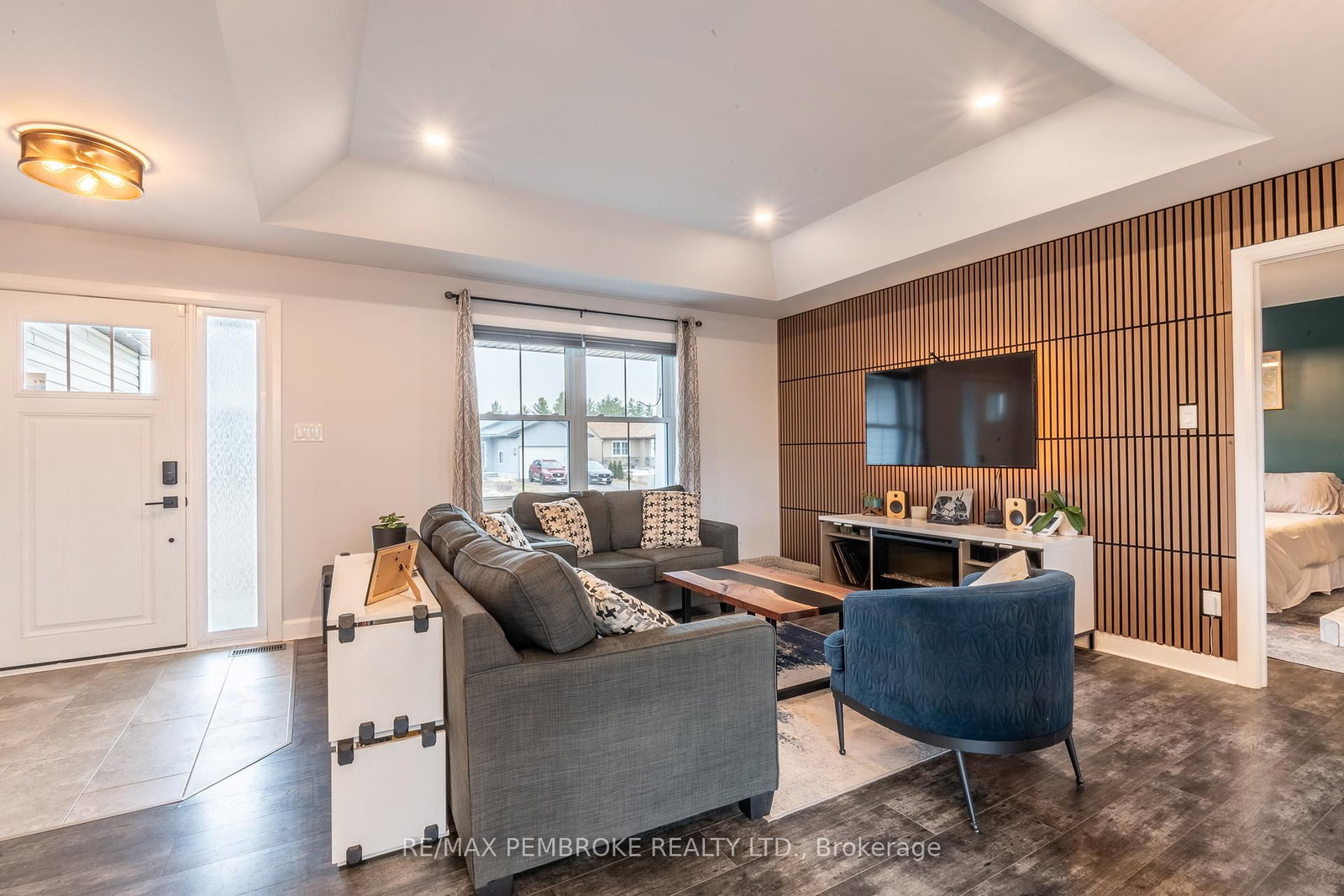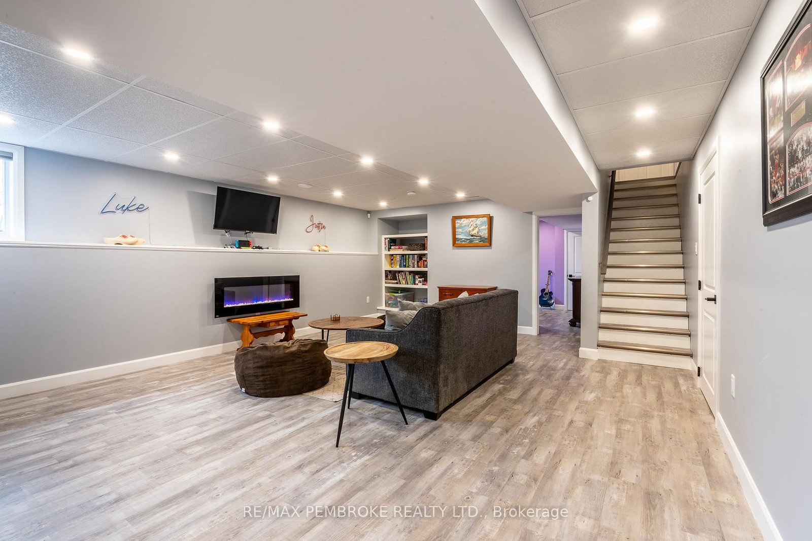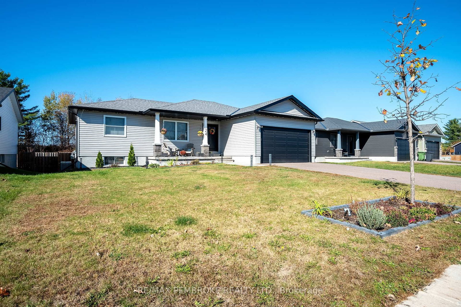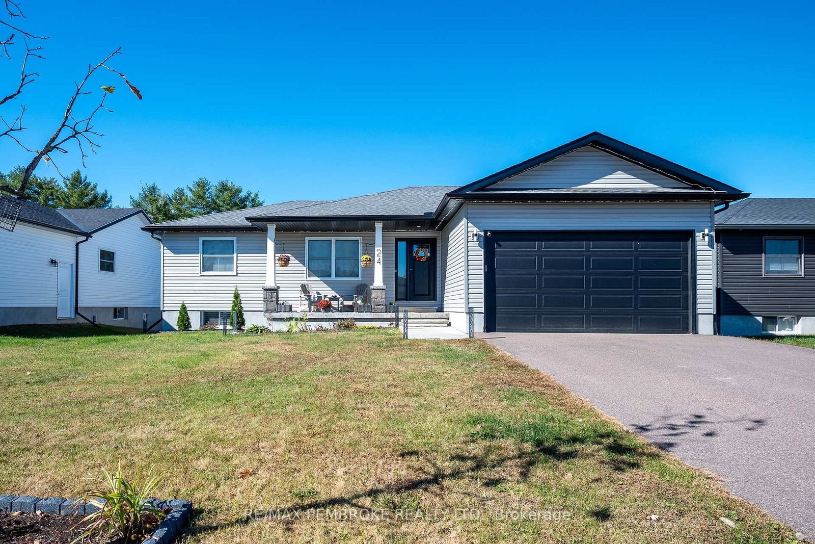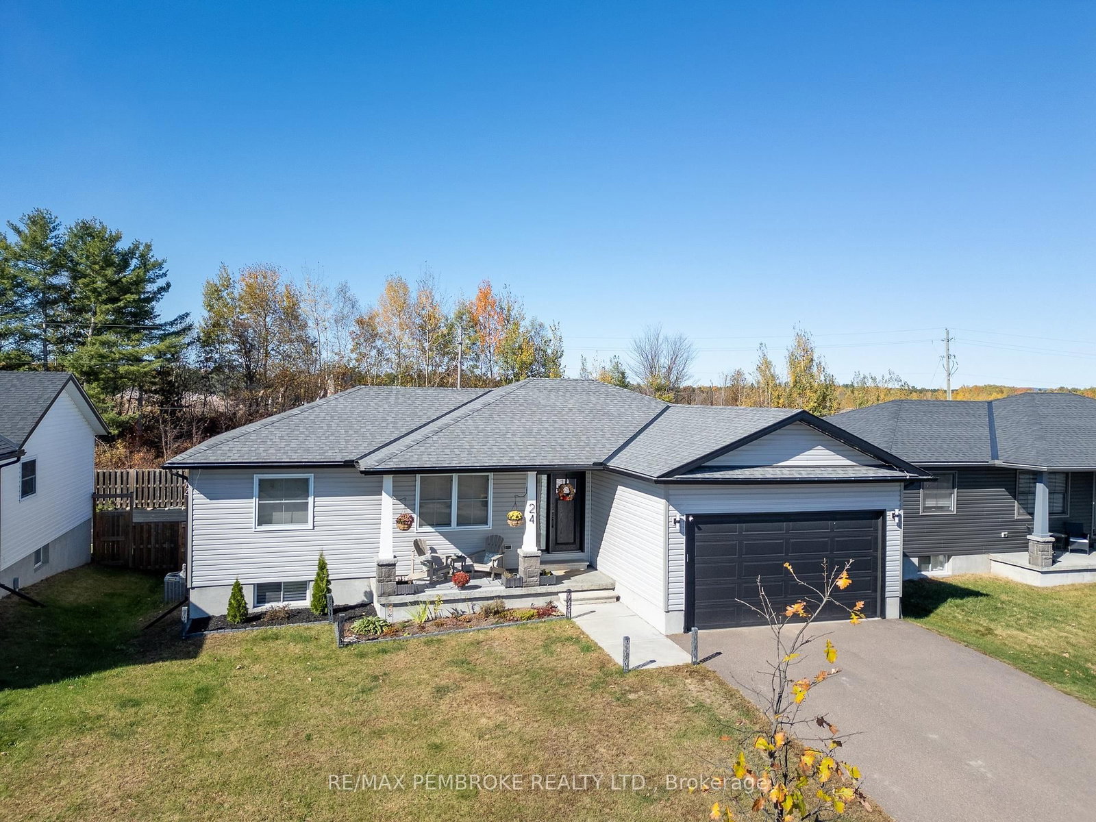 Located in Portage Landing, this beautifully maintained bungalow built in 2020 offers an exceptional combination of comfort, function, and convenience, all in a desirable location just a quick drive or jog to Garrison Petawawa and with easy access to Highway 17. The Bungalow on 24 Terrance Drive has 2 bedrooms, 3 bathrooms, and is located on a 35.88 x 18 ft lot in the community of Petawawa . Set on a lot with no rear neighbours within a family-friendly neighbourhood close to everyday essentials. Inside, the home features a carpet-free layout designed for easy living. The main floor includes two bedrooms, highlighted by a spacious primary retreat with a large walk-in closet and private 4-piece ensuite bath. Main floor laundry adds to the home's practical appeal, while the bright dining area creates a welcoming space for everyday meals or entertaining and opens directly onto the rear deck. From here, stairs lead down to the fully fenced backyard, offering a great setting for children, pets, gardening, or simply enjoying time outdoors. The attached garage provides added storage, shelter for vehicles, and everyday convenience. The fully finished lower level significantly expands the living space and versatility of the home. A generous family room with an electric fireplace is enhanced by a custom live-edge built-in desk and attractive built-in shelving for books, games, or décor, making it an ideal space for relaxing, working from home, or gathering with family and friends. This level also includes two additional bedrooms, a beautifully finished 3-piece bathroom with a stylish tiled shower, and plenty of storage space to keep everything organized. Additional highlights include central air conditioning and an on-demand hot water heater for efficient year-round comfort. Enjoy the convenience of being within walking distance to banks, restaurants, and other amenities, while also being just a short drive from Petawawa Point Beach. This is a move-in ready home offering a polished finish, excellent functionality, and an outstanding location. 24 hour irrevocable on any written offer.