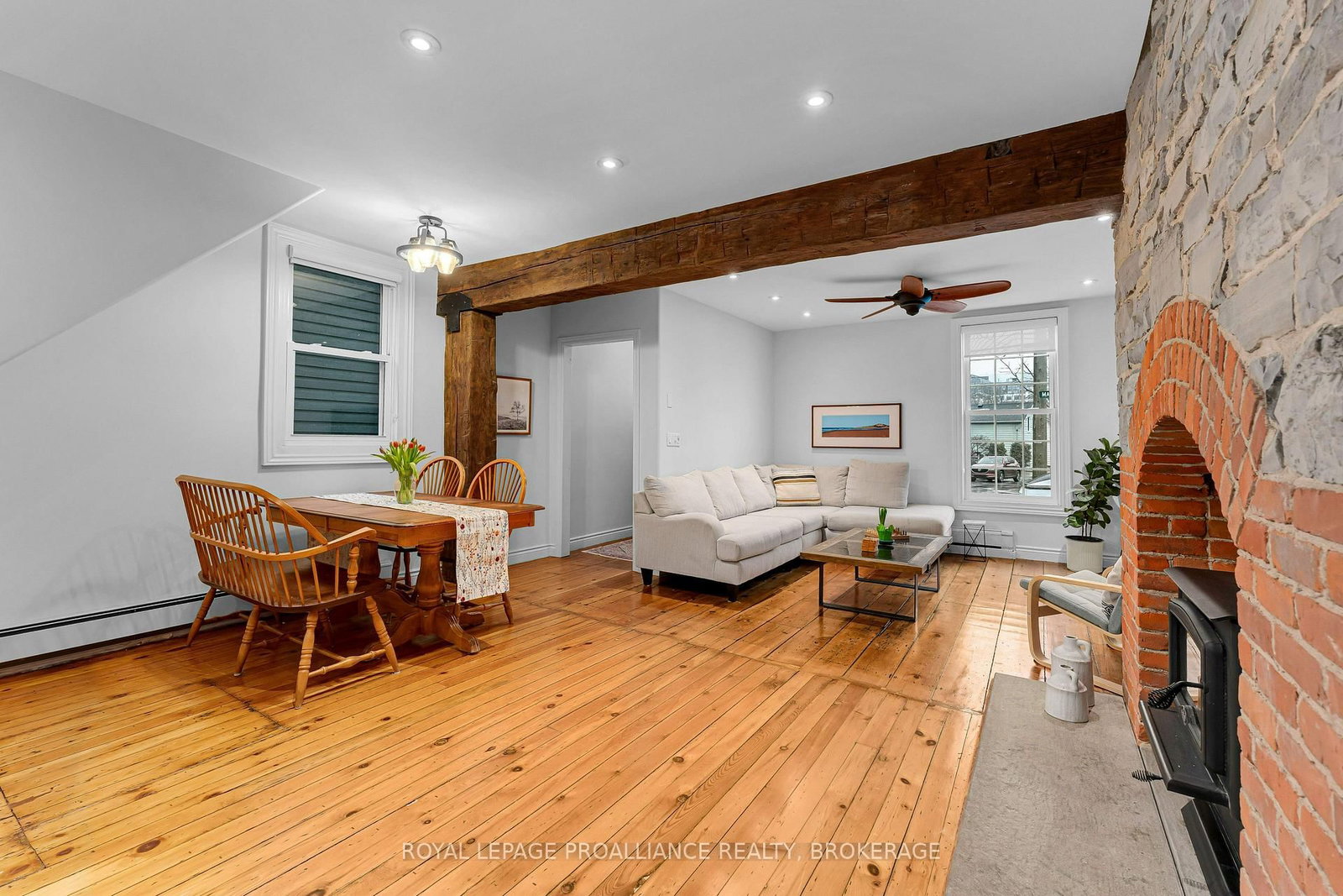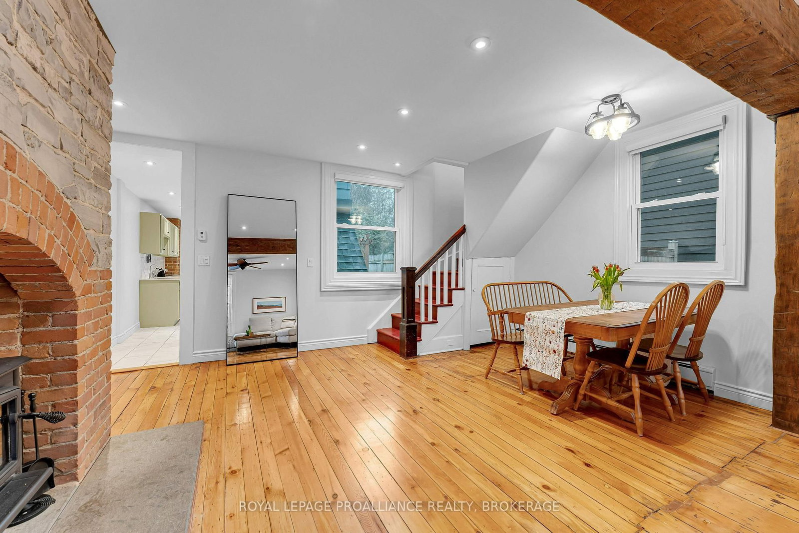 Set in a prime downtown Kingston location, this circa 1870 gem blends timeless character with modern updates. The 2-Storey on 21 Main Street has 3 bedrooms, 2 bathrooms, and is located on a 135 x 26.37 ft loton < .50 acres in the community of East of Sir John A. Blvd . Offering 3 bedrooms and 1.5 bathrooms, the home features a welcoming open concept living room and dining room, along with an updated kitchen designed for everyday living. Upstairs, a versatile flex space adds the perfect spot for a home office, reading nook, or additional lounge. Rich in character, you'll find exposed brick, wood beams and limestone, a woodstove, and beautiful original pine plank floors that speak to the home's history. Extensive renovations in recent years include the roof, boiler, windows, and inviting outdoor living space making this property truly move-in ready. Step outside to a private backyard retreat with pergola, patios, a play structure and cedar shed or small studio space. All just a short walk to McBurney Park, Queen's University, and Kingston's vibrant downtown.