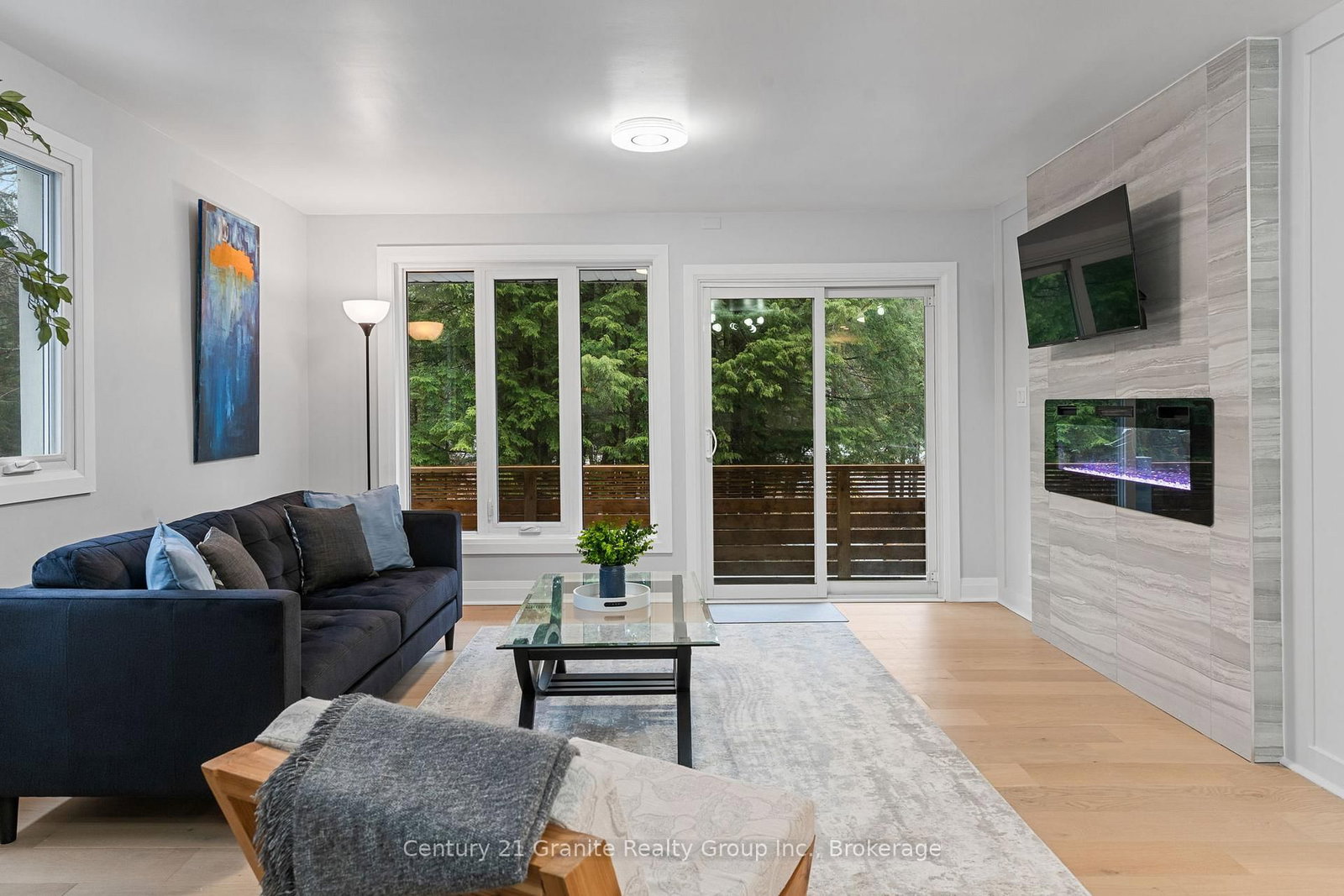 • Living Room: W/O To Deck, Sliding Doors, Electric Fireplace