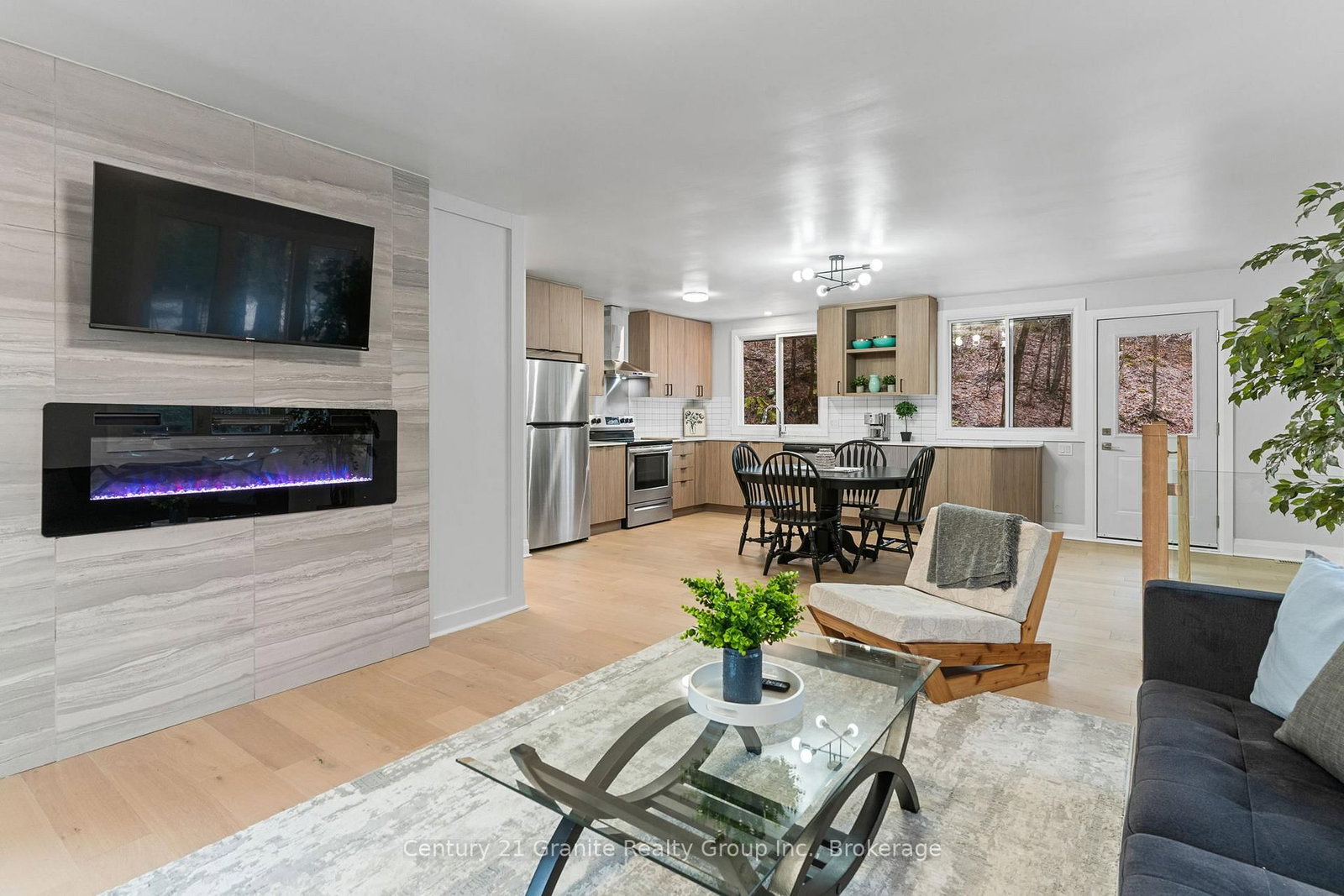 This beautifully renovated 4 bedroom plus den and 2 bathrooms raised bungalow offers over 2,200 sq. The Bungalow-Raised on 7032 County Road 121 null has 3 bedrooms, 2 bathrooms, and is located on a 302.8 x 540.43 ft lot in the community of Lutterworth . ft. of luxurious living space set on 1.5 acres of private, wooded land. With no visible neighbours, this home perfectly blends seclusion and tranquility, just minutes from the charming town of Minden, the Gull River, and several lakes, beaches, and restaurants. The upper level features an open-concept design with stunning oak-engineered hardwood flooring throughout. The spacious living area boasts large windows that flood the space with natural light, while the electric fireplace adds warmth and ambiance. Sliding doors lead to a covered porch, providing the ideal spot for relaxation as you overlook the serene stream and lush forest. This home offers three generous bedrooms on the main level, including a large primary suite with a 4-piece semi-ensuite bathroom and convenient main floor laundry. The lower level features an additional bedroom, a 3-piece bathroom, and a den-perfect for guests or a home office. The modern, sleek design includes waterproof vinyl flooring throughout the lower level, and the home is equipped with a UV & sediment water filter, ensuring clean and safe water throughout. Enjoy year-round comfort with a newly installed propane furnace and central air (2022). Outside, the backyard deck offers beautiful views of the surrounding forest, while the covered carport provides convenient protection for your vehicle. Modern vinyl siding and 2019 asphalt shingles complete the home's exterior, offering both curb appeal and durability. Located near ATV and snowmobile trails, this home is a nature lover's dream, yet still offers easy access to all the amenities of nearby towns. Whether you're looking for a peaceful year-round retreat or weekend getaway, this home has it all. Schedule your showing today and experience the perfect blend of comfort, privacy, and natural beauty.