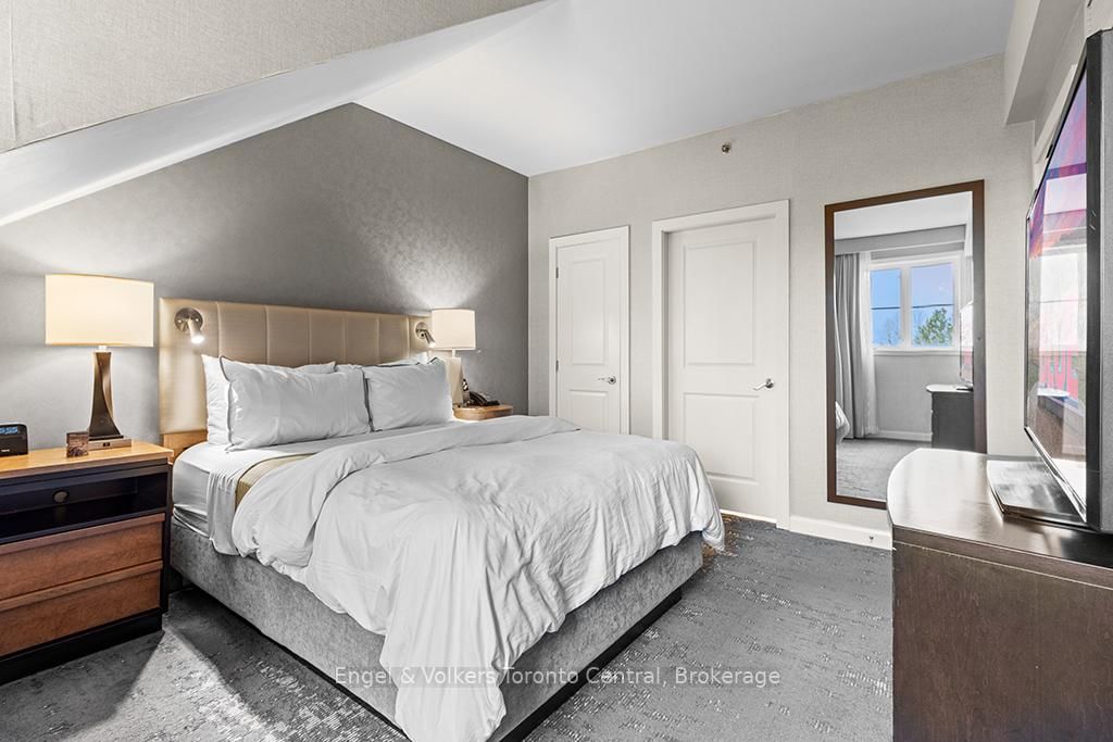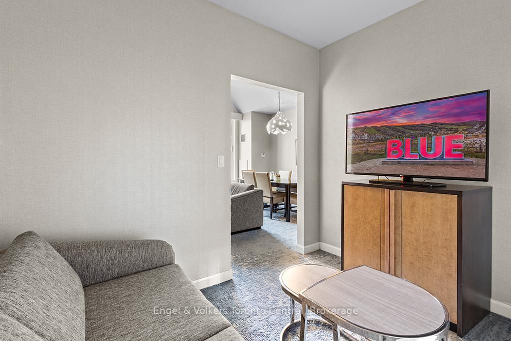 Need more room then just a one bedroom? This is your answer, a One Bedroom plus den resort home in Westin Trillium House located in the Village At Blue Mountain. The Apartment on 465-220 Gord Canning Drive has 1 bedrooms, 1 bathrooms, and is located in the community of Blue Mountains . Beautiful coffered ceiling. This Suite can Sleep 6 Comfortably and comes fully furnished and includes All The Amenities of the Westin Trillium House: Westin Signature Heavenly Beds and Bath, Valet Parking for Owners, outdoor year round heated pool and hot tubs, Sauna, Fitness room & Award winning Oliver & Bonachini's Restaurant. Recent upgrades make this condo clean and fresh. HST May be Applicable, Please ask Listing Agent. 2% One Time Entry fee to Blue Mountain Village Association on closing. On going fees of $1.08 per square foot a year.