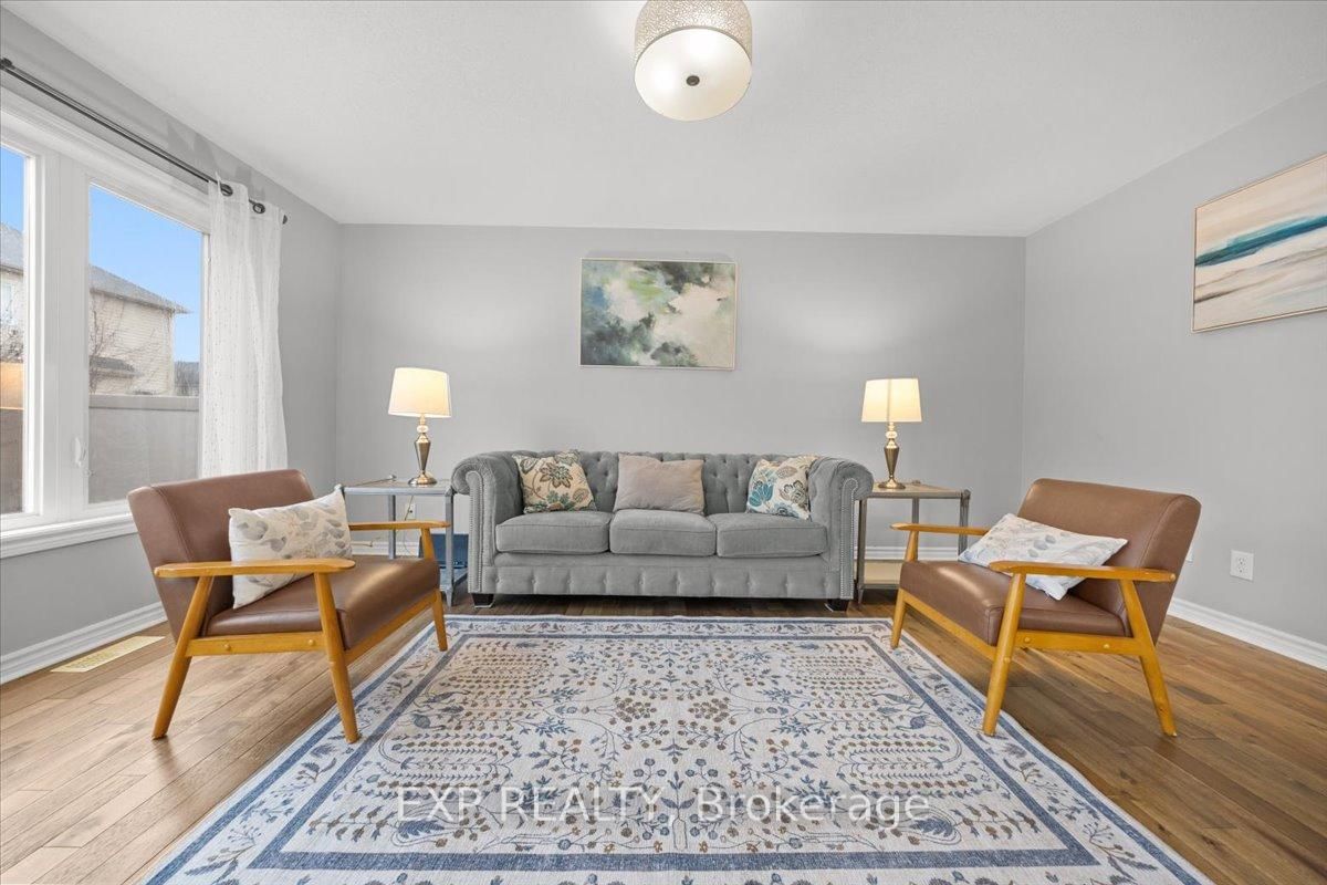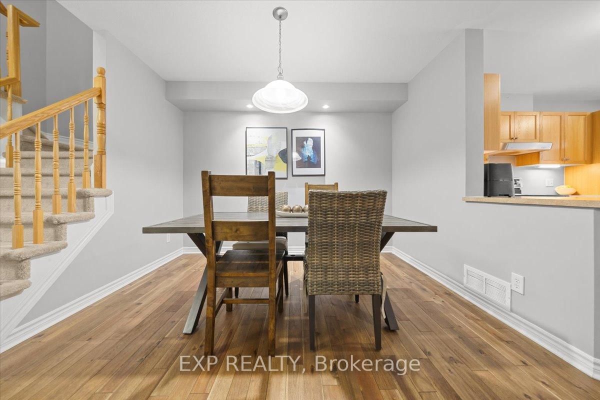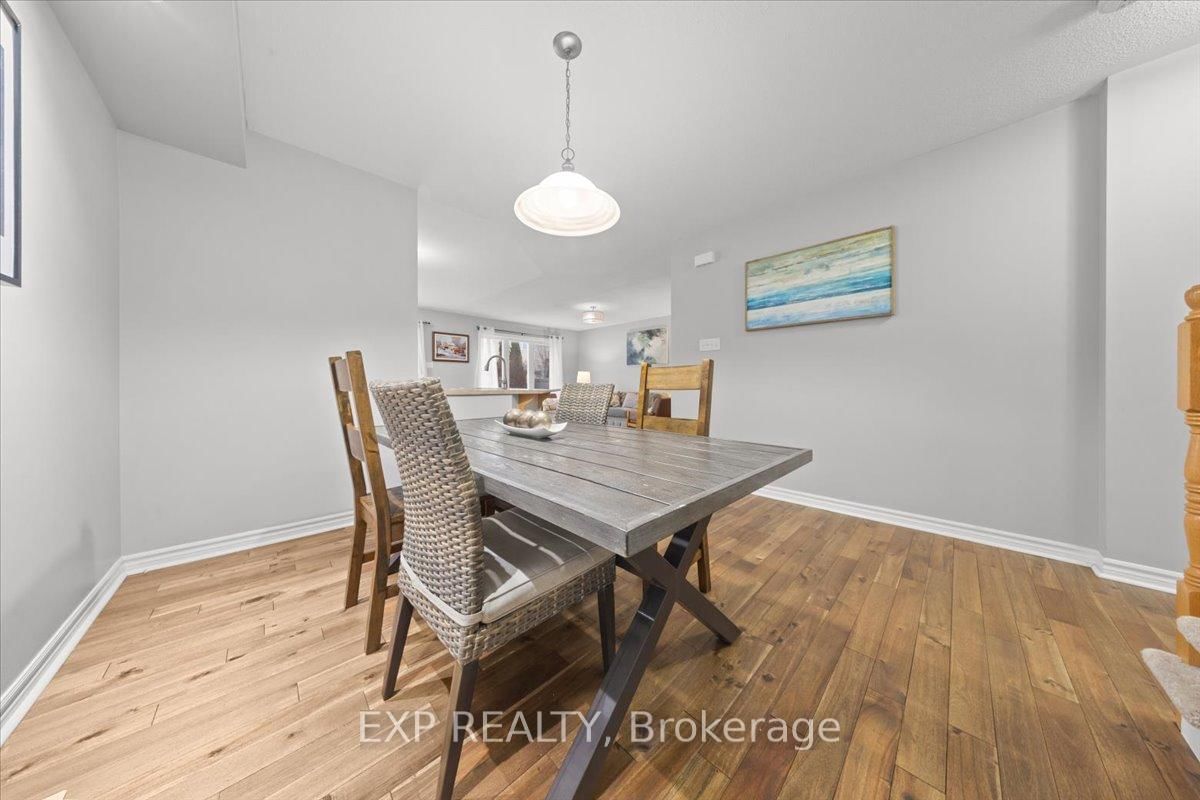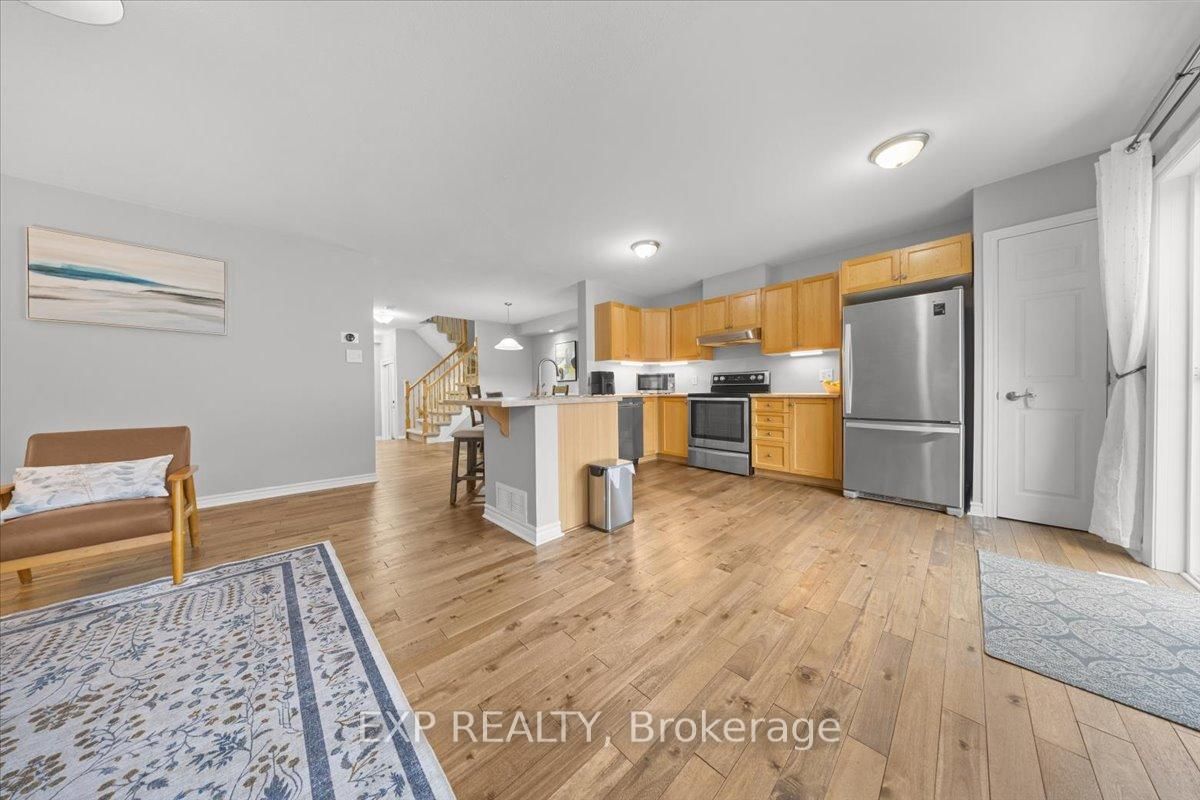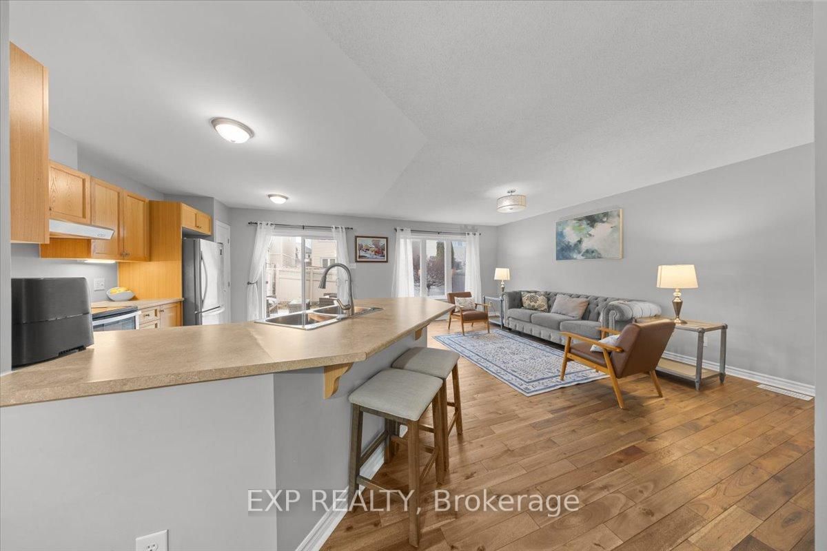Welcome to this beautifully maintained 3-bedroom, 3-bathroom townhome in the desirable Fairwinds community, perfectly situated on a quiet street yet close to all amenities, parks, and with easy access to the 417. The 2-Storey on 104 Harmattan Avenue has 3 bedrooms, 3 bathrooms, and is located on a 82.02 x 23 ft lot in the community of Stittsville (North) . The main level features warm hardwood flooring throughout and an open-concept design ideal for modern living and entertaining. Enjoy gatherings in the spacious living room, host dinners in the large dining area, and cook up a storm in the kitchen, complete with ample cabinetry and a convenient breakfast bar overlooking the backyard. A powder room and inside access to the garage complete this floor. Upstairs, you'll find a bright and airy primary bedroom with a walk-in closet and ensuite bath, complemented by two generous secondary bedrooms, all filled with natural light, as well as a full bathroom and a handy laundry room for added convenience. The lower level boasts a large recreation room perfect for a playroom, media area, or home gym, along with utility, storage, and laundry spaces that add to the homes functionality and comfort. Outside, the private fenced backyard features a spacious composite deck overlooking a well-maintained lawn, ideal for summer BBQ's and outdoor entertaining. This home truly combines comfort, style, and practicality, making it the perfect place to settle in and enjoy all that Fairwinds has to offer. Roof (2025) AC/Furnace (2024).