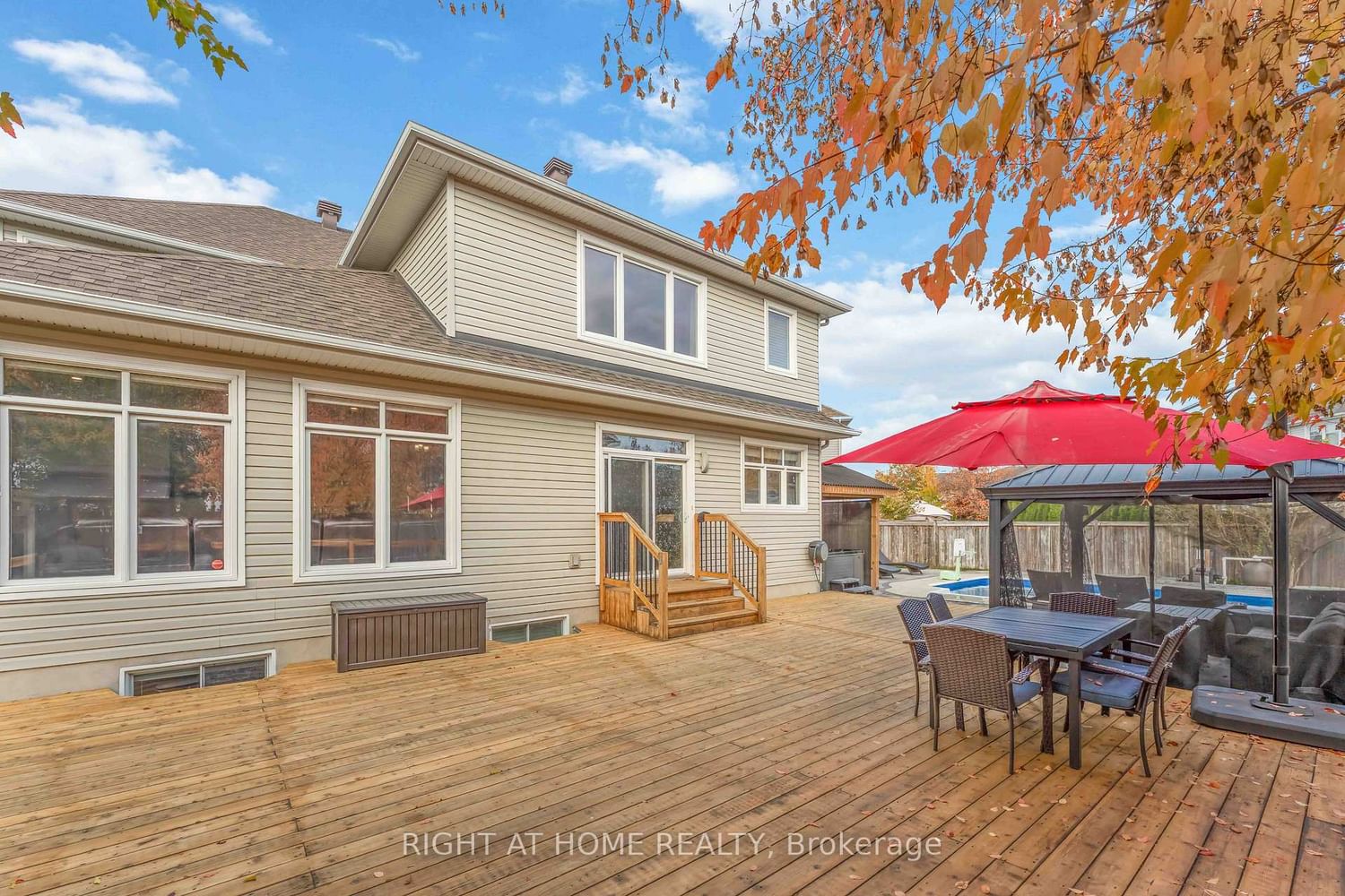 Stunning 4+1 bedroom, 5-bathroom luxury home with den and loft offers over 4,500 sq. The 2-Storey on 211 Denali Way has 4 bedrooms, 5 bathrooms, and is located on a 110.2 x 46 ft lot in the community of Stittsville (North) . ft. of exquisite living space on an oversized, pie-shaped lot. From the moment you arrive, you'll be captivated by its elegant curb appeal - featuring a grand driveway, an inviting front porch, and a picturesque street of mature trees. The main level welcomes you with rich hardwood floors, 9' ceilings, and an effortless flow between rooms. The spacious living with a cozy fireplace and formal dining areas creates an ideal setting for entertaining, while the private office offers a peaceful retreat for work or study. The gourmet kitchen showcases granite countertops, SS appliances, a functional island, and a sunlit breakfast area. The bright family room with oversized windows and custom shelving. A hardwood staircase leads to the upper level, where you'll find hardwood floors throughout, four large bedrooms, a versatile loft, and three beautifully renovated bathrooms. The expansive primary suite impresses with a large walk-in closet and a luxurious 5-piece en-suite. The fully finished lower level extends the living space with 9' ceilings, a stylish wet bar, a home cinema, a rejuvenating sauna, a fifth bedroom, and a fifth bathroom - perfect for guests or extended family. Step outside to your own private oasis: a fully fenced backyard with a 30' deck, interlock patio, in-ground saltwater pool, hot tub, and charming gazebo. This extraordinary home combines elegance, comfort, and entertainment in perfect harmony - a rare opportunity to experience resort-style living every day.