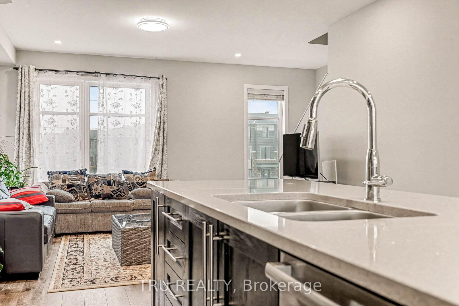 Double Garage End Unit Townhouse next to Tanger. The 2 1/2 Storey on 1119 Speedvale Court has 3 bedrooms, 3 bathrooms, and is located on a 74.38 x 24.44 ft lot in the community of Kanata Lakes/Heritage Hills . Modern comfort living in most sought out neighbourhood of Kanata. This 1,846 sq ft Grey model spreads across three thoughtfully designed levels with open-concept spaces that work beautifully for both entertaining and daily routines. Stone-and-brick exteriors deliver strong curb appeal, while oversized windows bathe the home in natural light. The southeast-facing front porch and easy-care grass area add charm with minimal effort.The main level features a welcoming tiled foyer that opens into a bright family room with direct visibility and access to Campeau Road-ideal for running a home business or meeting clients without disturbing the household. It also includes two storage rooms and a double garage.Upstairs, 9-foot ceilings and recessed lighting create an airy feel. The open layout connects the living and dining areas, anchored by a stylish kitchen with stainless steel appliances, a generous central island with breakfast bar, and plenty of cabinet space. A private balcony off the dining room provides extra outdoor space for morning coffee or evening unwinding.The upper level holds the primary bedroom with two southeast-facing windows, a walk-in closet, and a private ensuite. Two more bedrooms share a full bathroom, with laundry conveniently placed on the same floor.Located in the vibrant Arcadia community of Kanata Lakes, this home sits within walking distance of highly rated schools including Earl of March, Kanata Highlands, and All Saints. Parks, bus stops, and nearby amenities like Tanger Outlets, Canadian Tire Centre, Kanata Centrum, grocery stores, gyms, and cafés are all minutes away.A rare blend of style, space, and unbeatable convenience-perfect for your first home or your next move in one of Kanata's most desirable neighbourhoods.